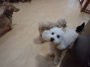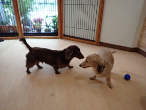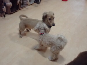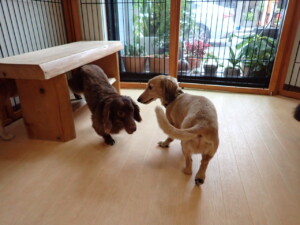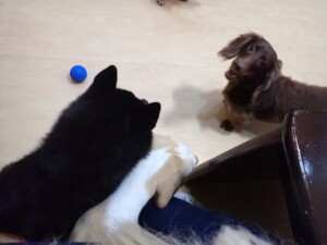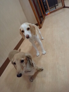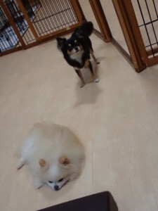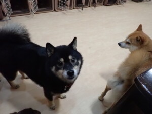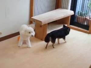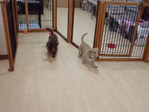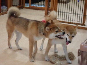 フレアちゃんとレイ君、昨夜もお泊まりでした。機嫌よく過ごしていました。