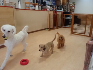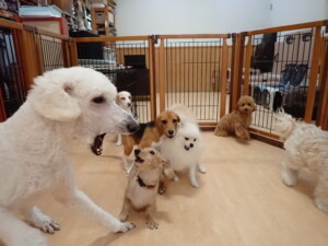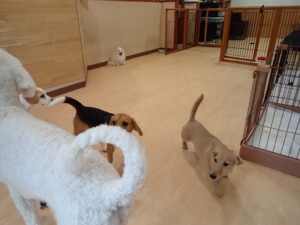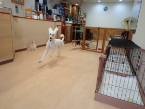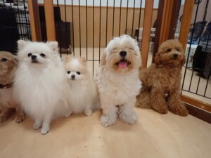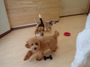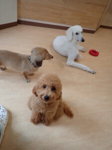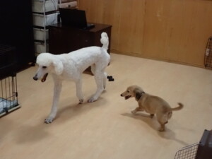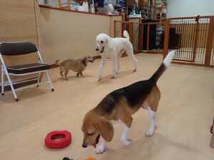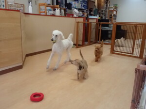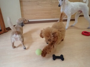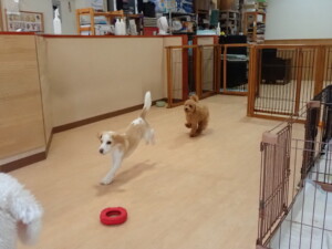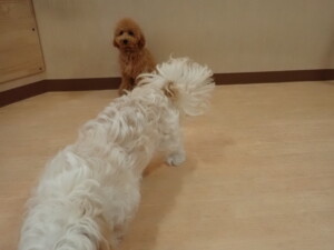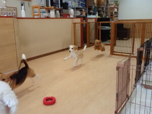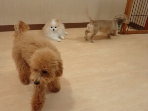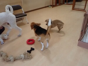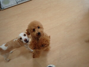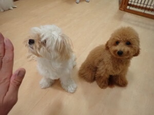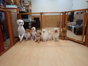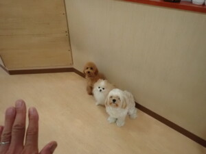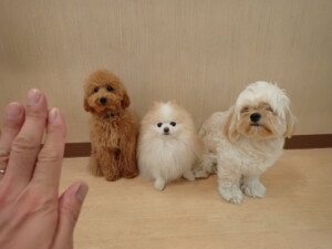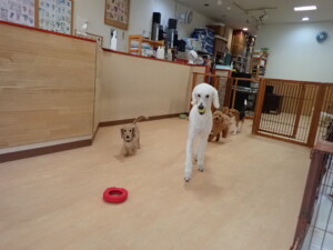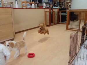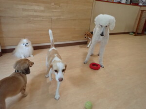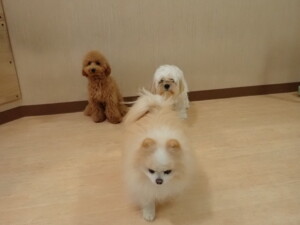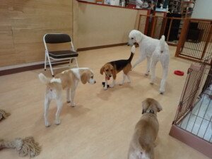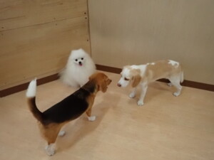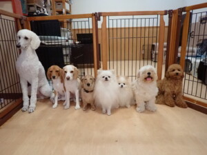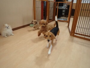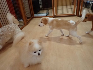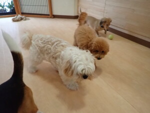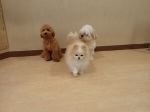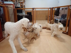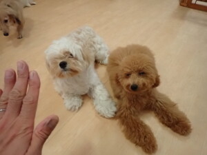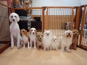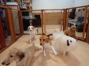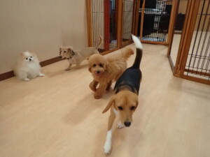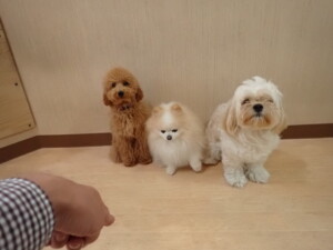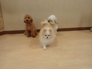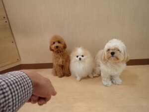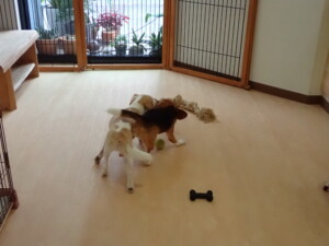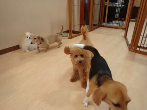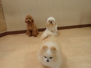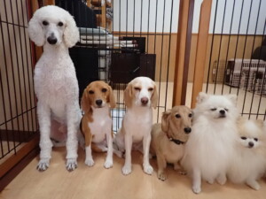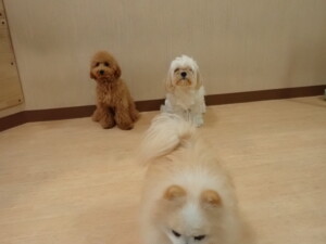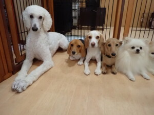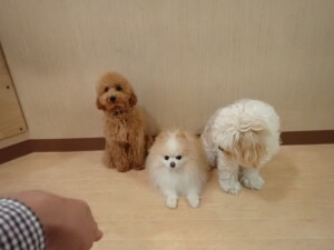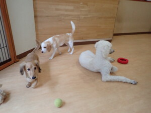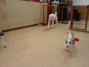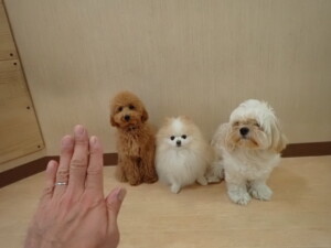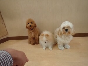 テンダー君、グーちゃん、ふじまる君、はな子ちゃん、りん君、メリイちゃん、元気に遊んでいました。なっつちゃん、落ち着いて過ごしていました。なっつちゃんとメリイちゃん、「お座り」・「フセ」・「マテ」・「オイデ」の練習をしました。