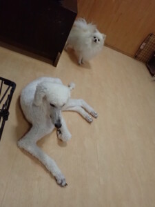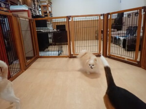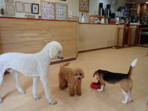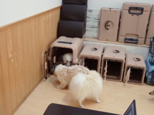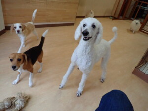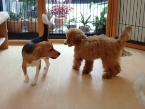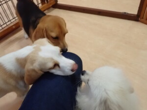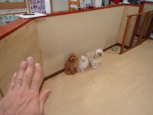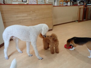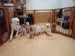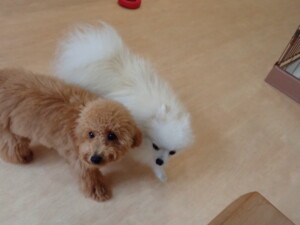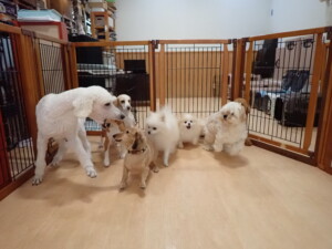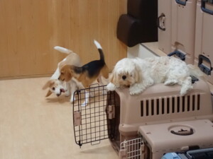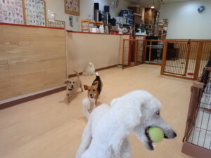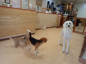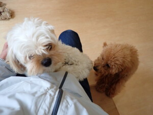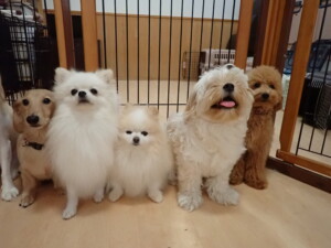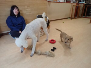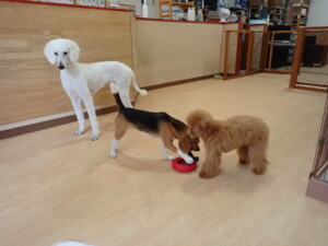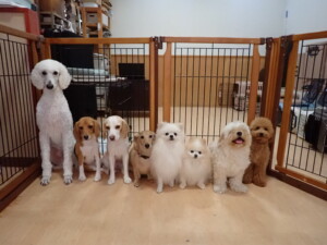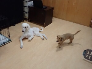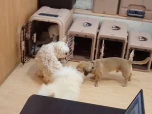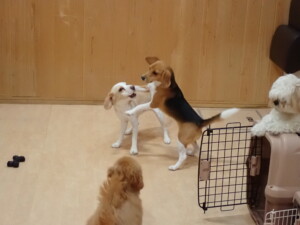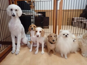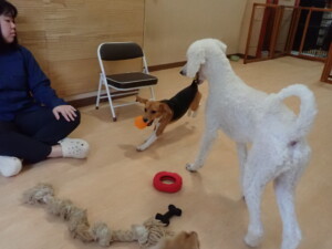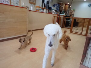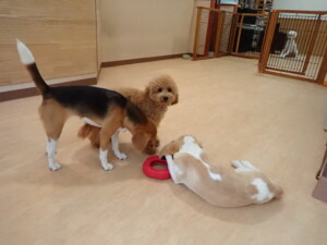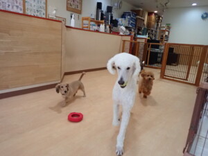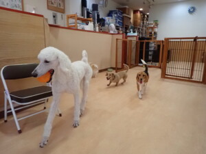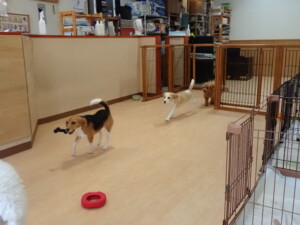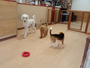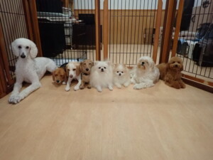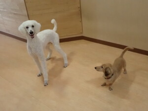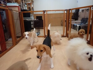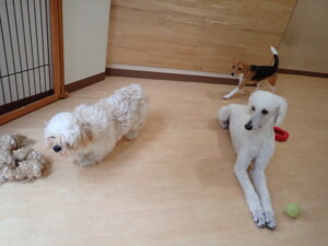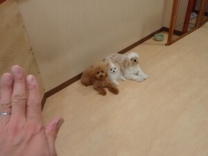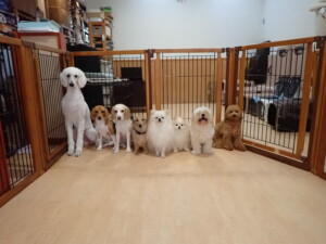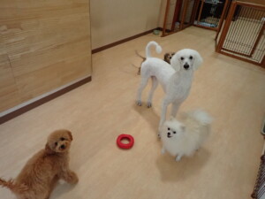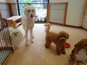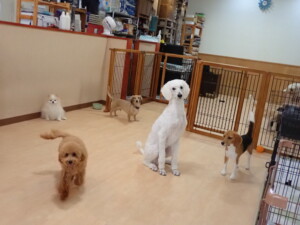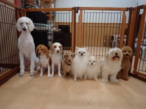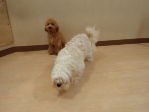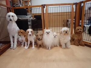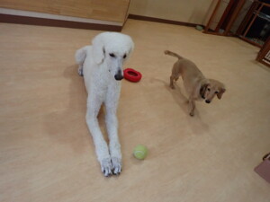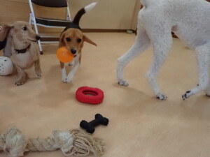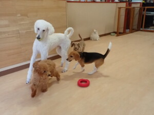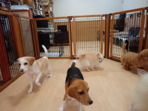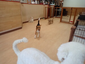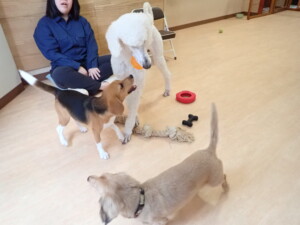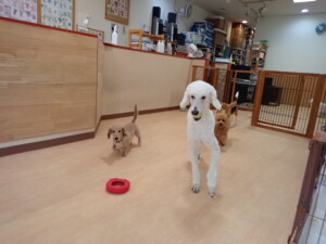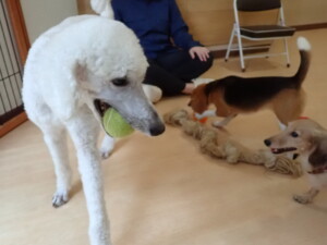 テンダー君、グーちゃん、ふじまる君、はな子ちゃん、りん君、メリイちゃん、元気に遊んでいました。なっつちゃん、落ち着いて過ごしていました。なっつちゃんとメリイちゃん、「お座り」・「フセ」・「マテ」・「オイデ」の練習をしました。
