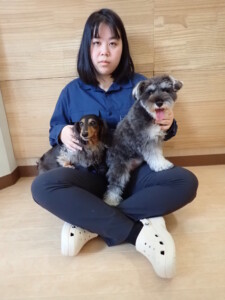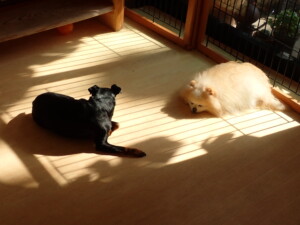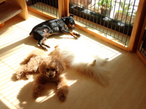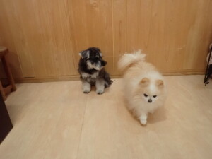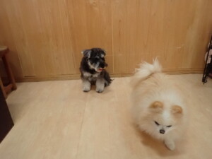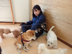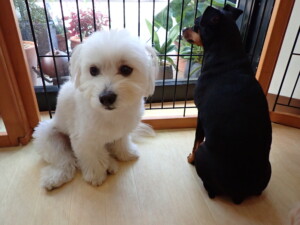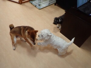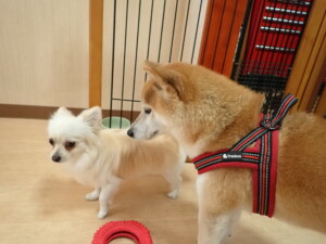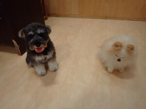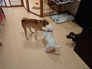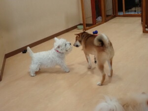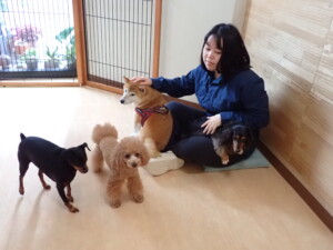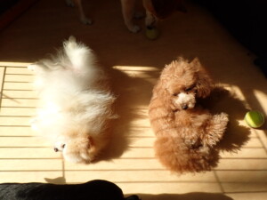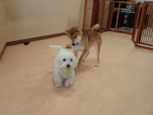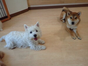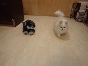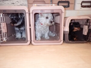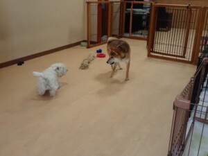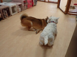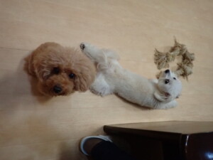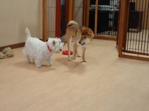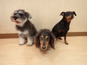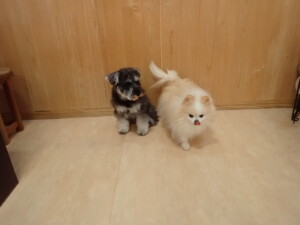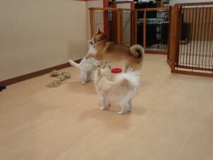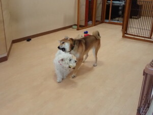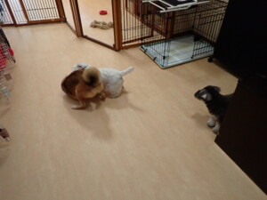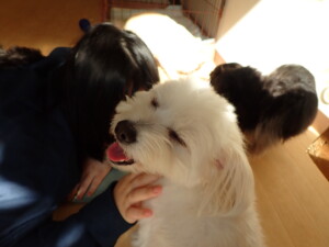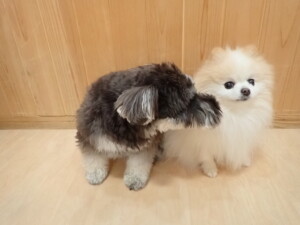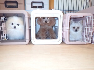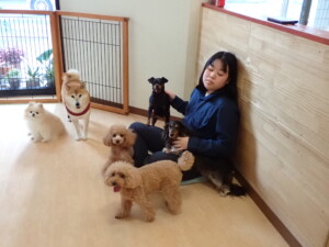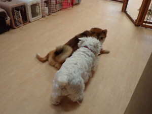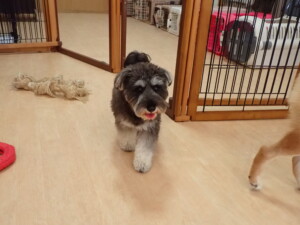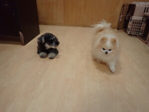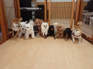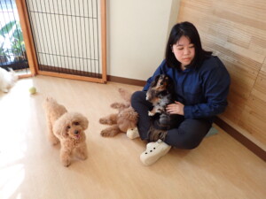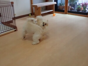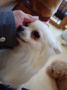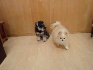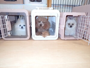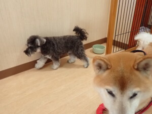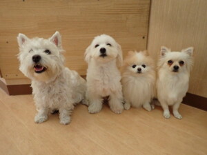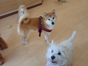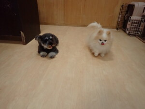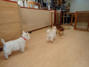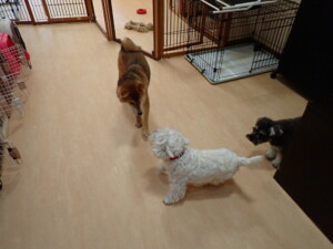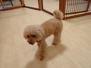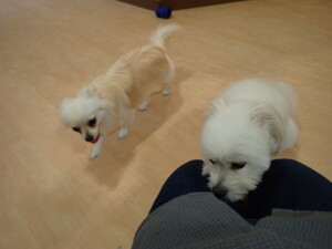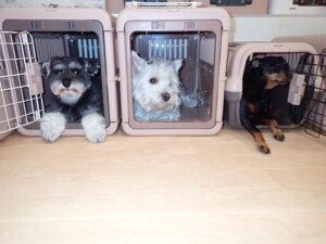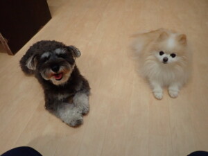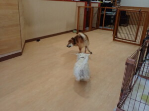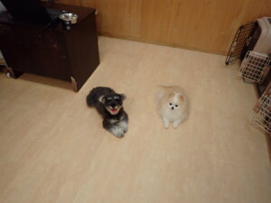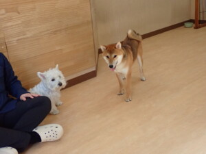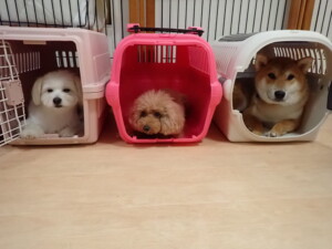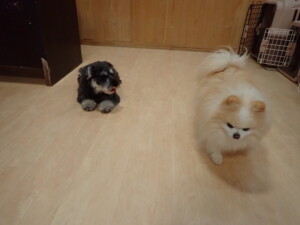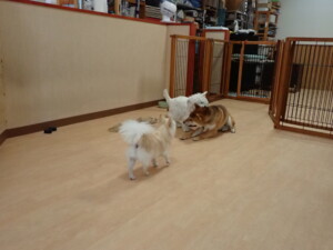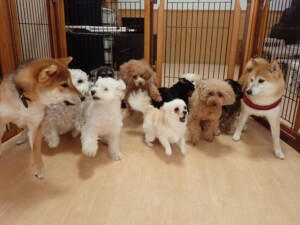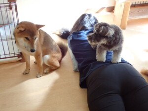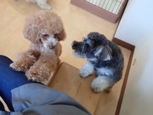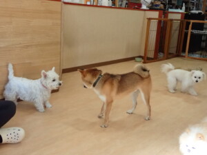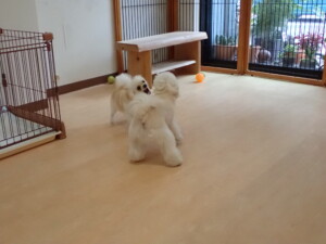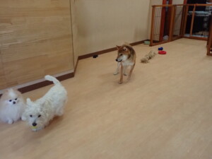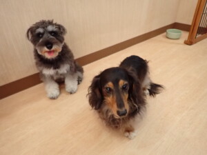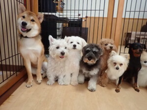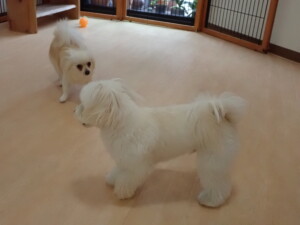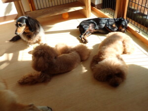 ミルちゃん、モコ君、ソナちゃん、むぎ君、元気に遊んでいました。まりもちゃん、ピピリーニちゃん、ダックスフントのモモちゃん、ミニチュアシュナウザーのももちゃん、こころちゃん、落ち着いて過ごしていました。ミニチュアシュナウザーのももちゃん、「お座り」・「フセ」・「マテ」・「オイデ」の練習をしました。