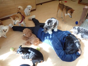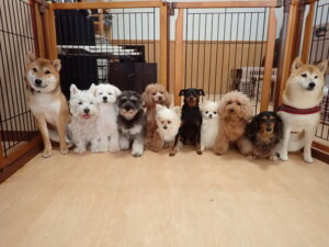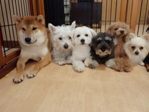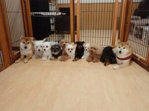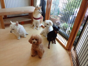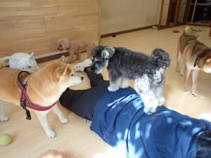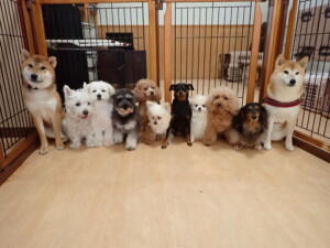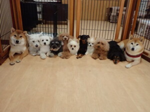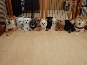 今日はまりもちゃん、モコ君、ピピリーニちゃん、ダックスフントのモモちゃんシェリーちゃん、こころちゃん、ソナちゃん、むぎ君、が遊びに来てくれました。そして、ミニチュアシュナウザーのももちゃんがトレーニングに来てくれました。