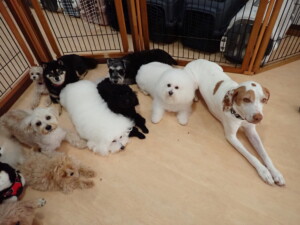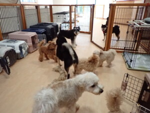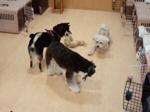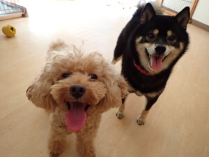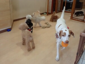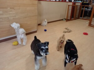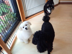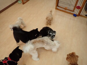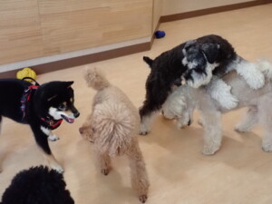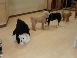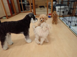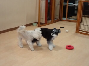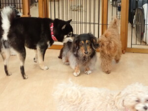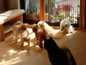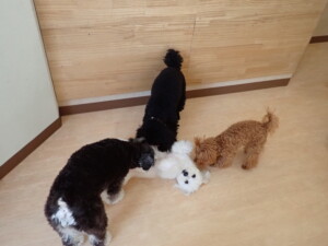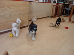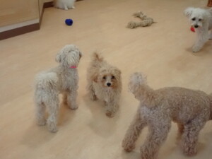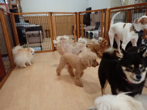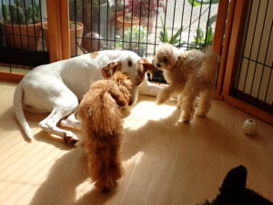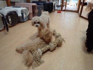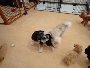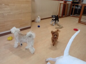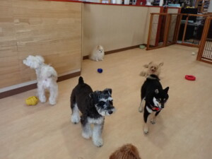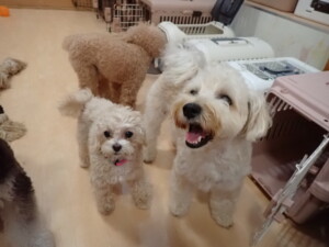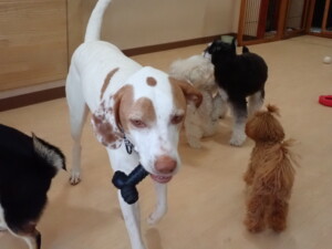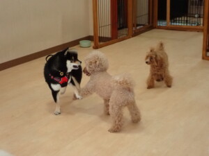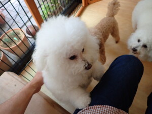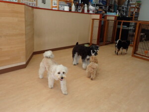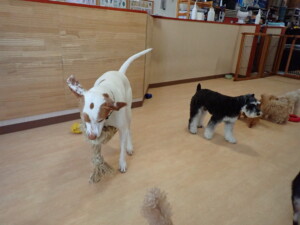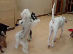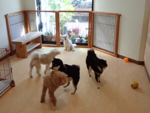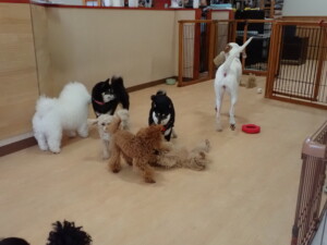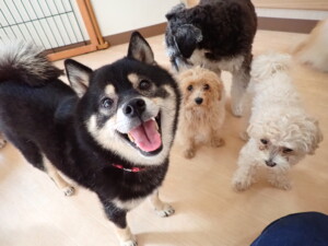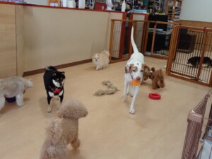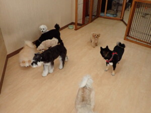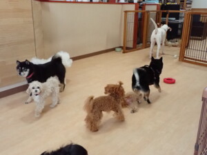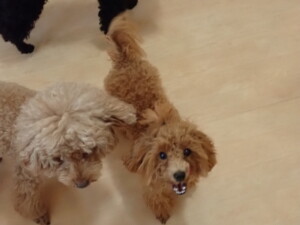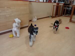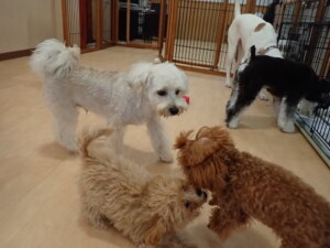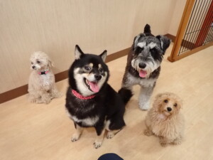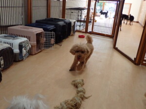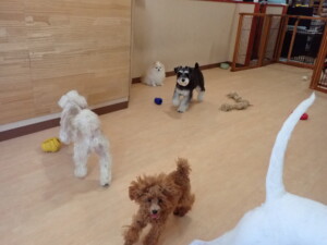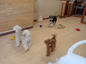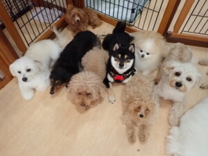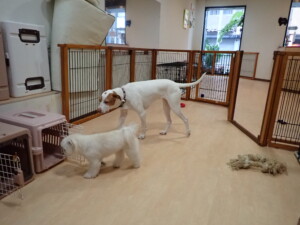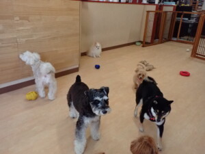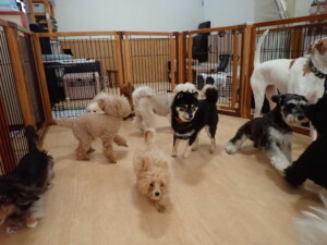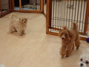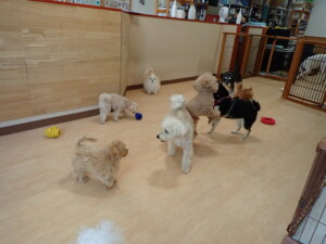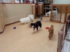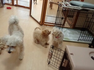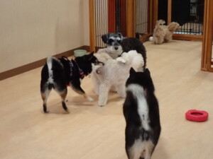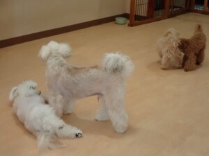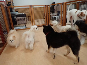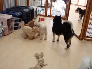 モモちゃんとポーちゃん、落ち着いて過ごしていました。アビーちゃん、モコ君、アメリちゃん、ブブ君、こげ茶君、スズちゃん、アレックス君、ジャズ君、ちいこちゃん、こまちゃんポコ君、ルイ君、元気に遊んでいました。ポコ君とルイ君、「お座り」・「フセ」・「マテ」の練習をしました。