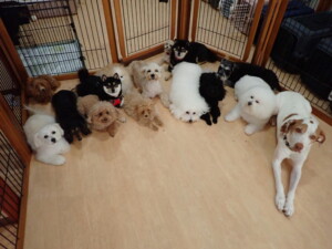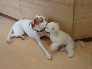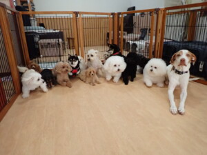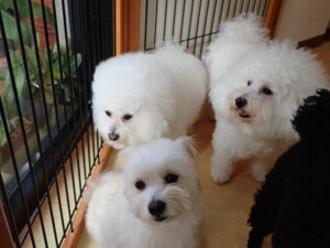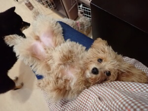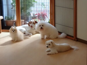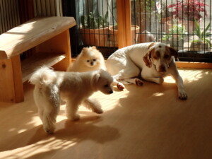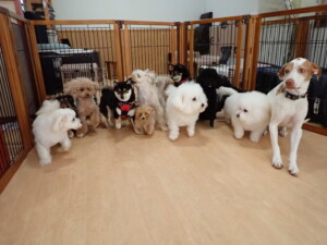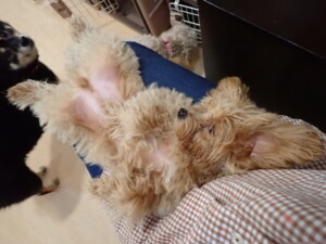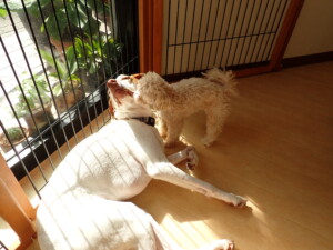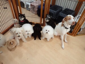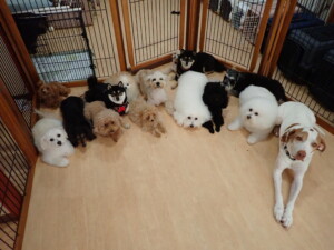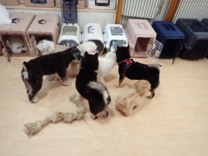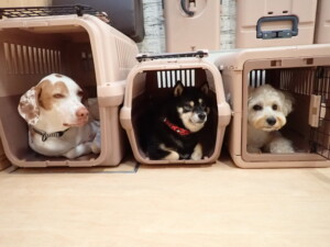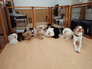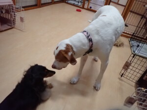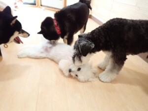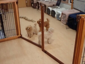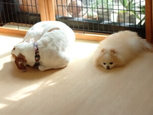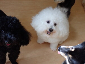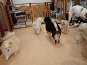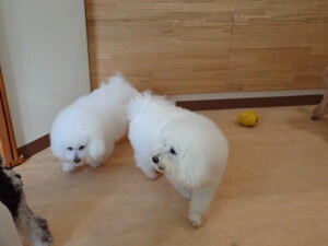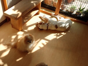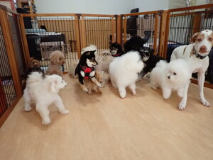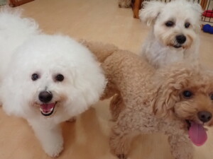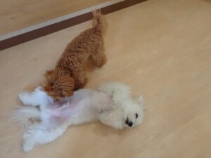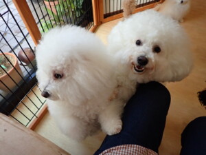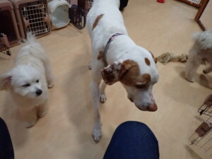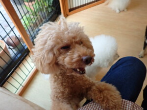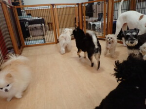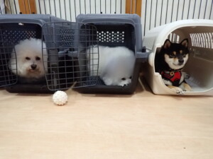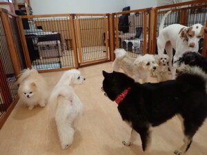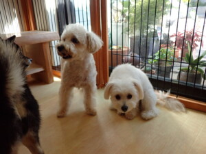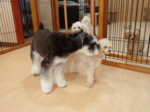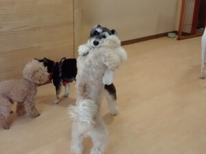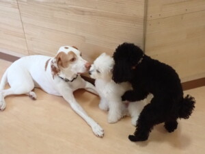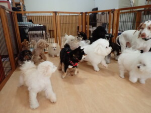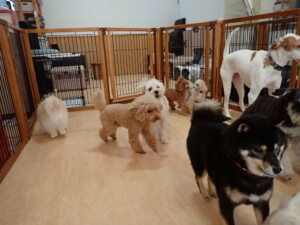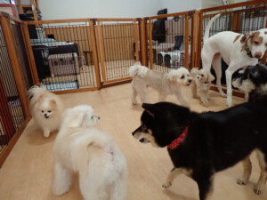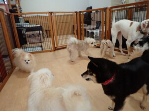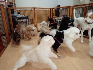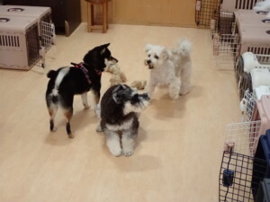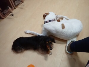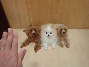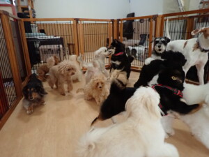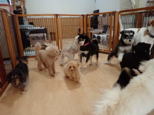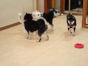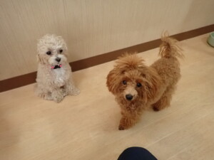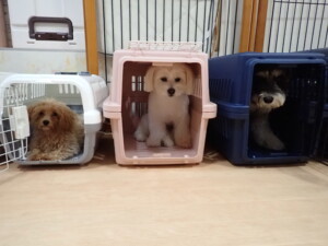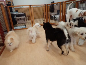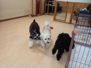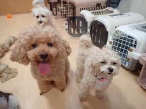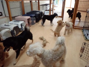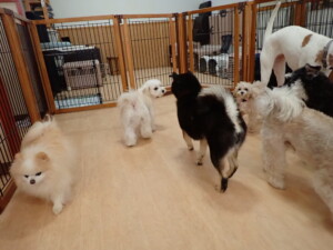 モモちゃんとポーちゃん、落ち着いて過ごしていました。アビーちゃん、モコ君、アメリちゃん、ブブ君、こげ茶君、スズちゃん、アレックス君、ジャズ君、ちいこちゃん、こまちゃんポコ君、ルイ君、元気に遊んでいました。ポコ君とルイ君、「お座り」・「フセ」・「マテ」の練習をしました。