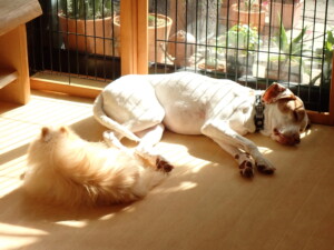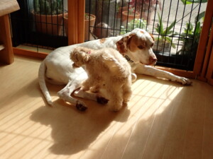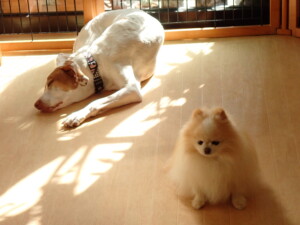 モモちゃんとアビーちゃん、昨夜はお泊まりでした。どちらも機嫌よく過ごしていました。