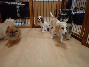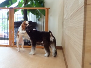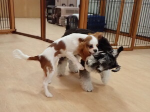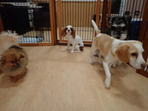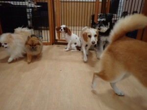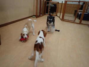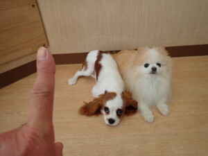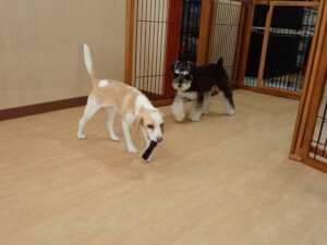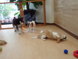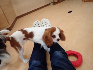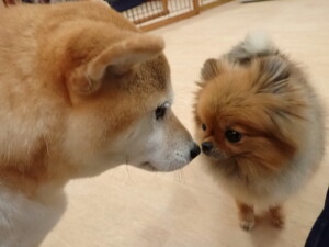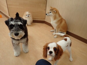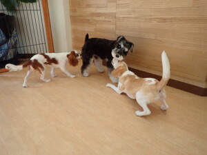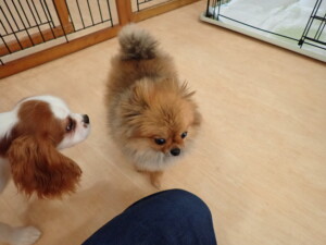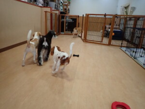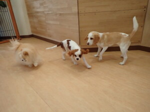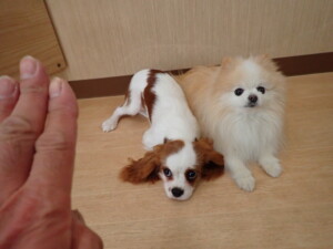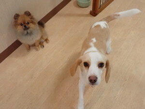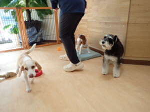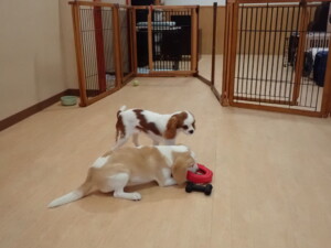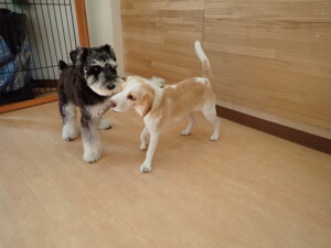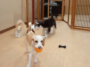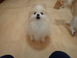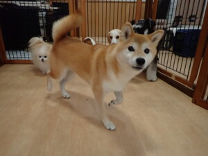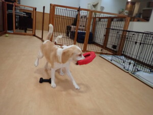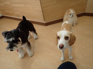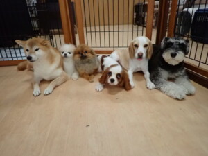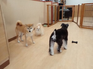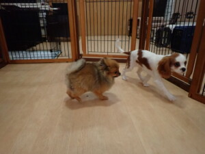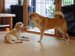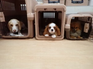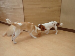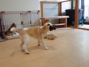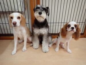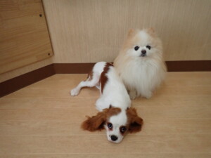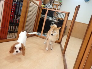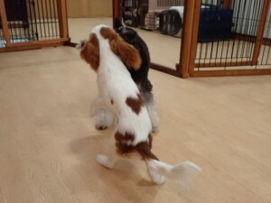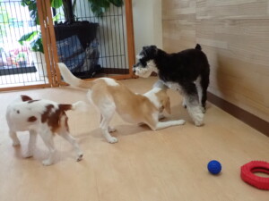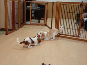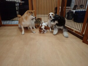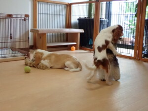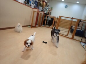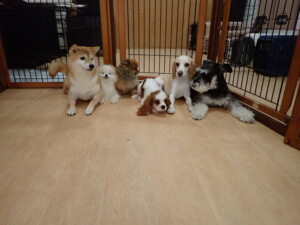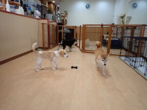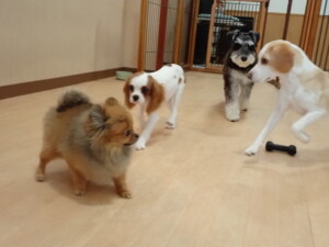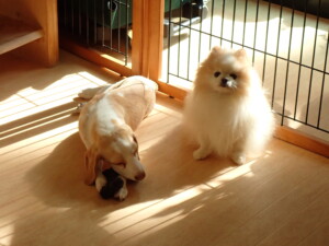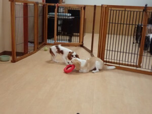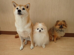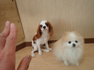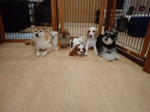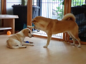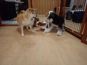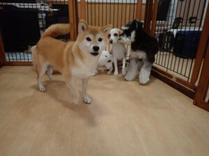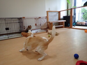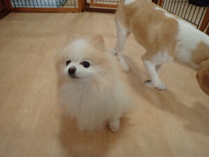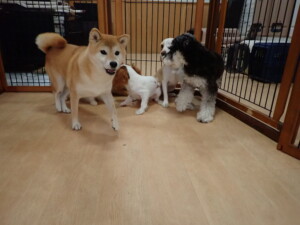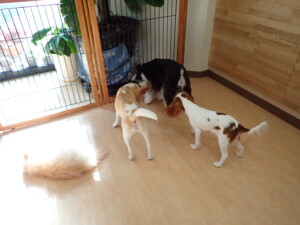 紅葉ちゃんと卯月ちゃん、落ち着いて過ごしていました。グーちゃん、ジャズ君、ミアちゃん、元気に遊んでいました。ミアちゃん、「お座り」・「フセ」・「マテ」の練習をしました。