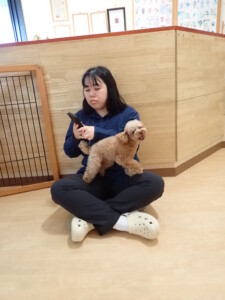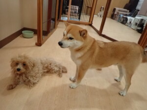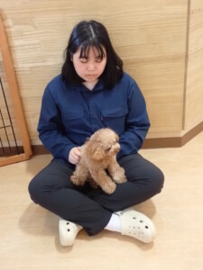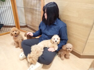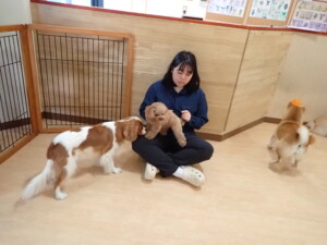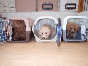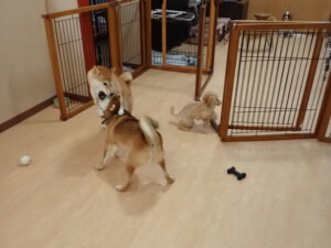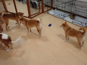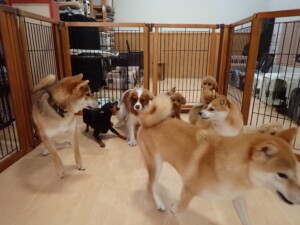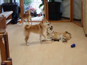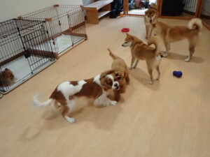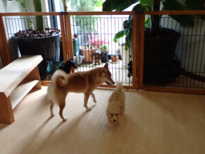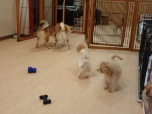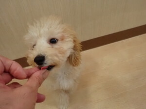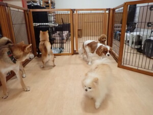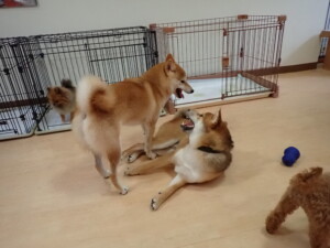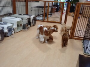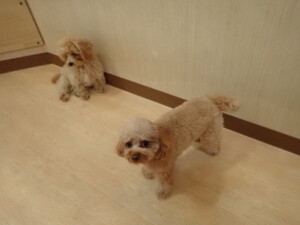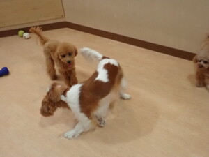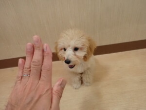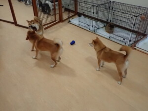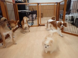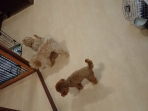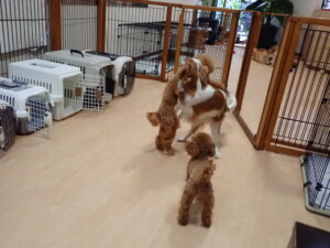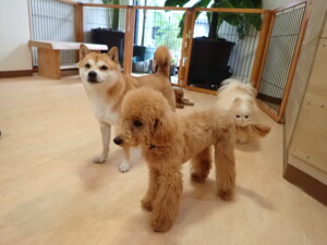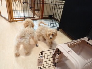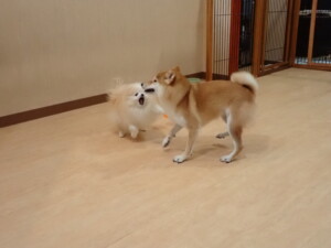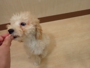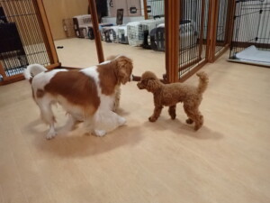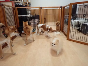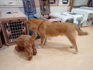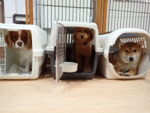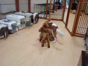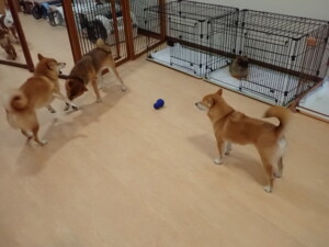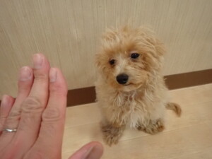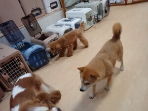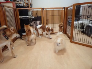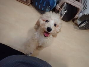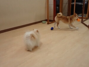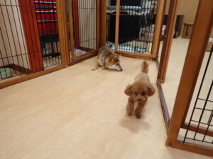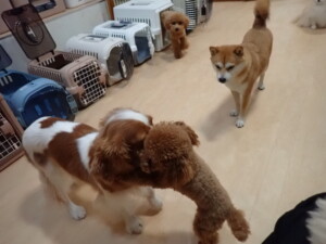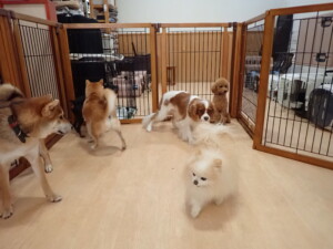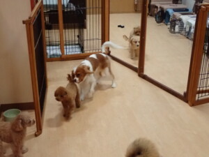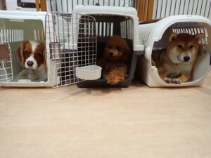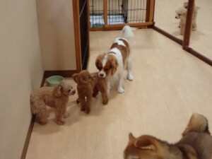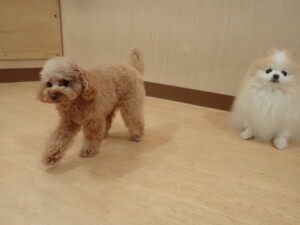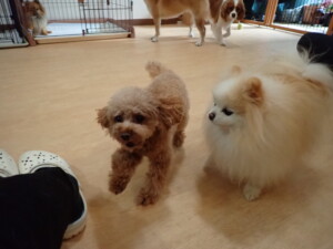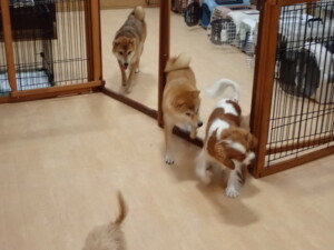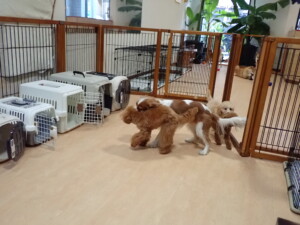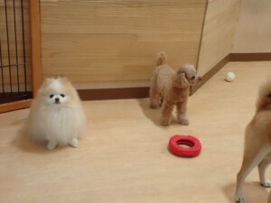 卯月ちゃん、チャロちゃん、ピピリーニちゃん、落ち着いて過ごしていました。ジュン君、あずきちゃん、だんご君、むぎ君、たっくす君、ポコ君、メリイちゃん、ひまわり君、元気に遊んでいました。ポコ君とメリイちゃん、「お座り」・「フセ」・「マテ」・「オイデ」の練習をしました。ひまわり君、「お座り」・「マテ」の練習をしました。
