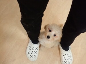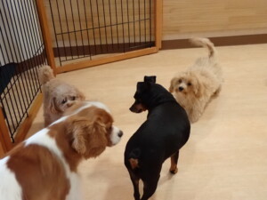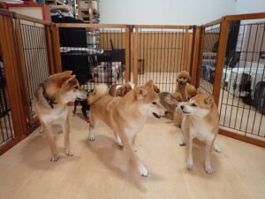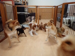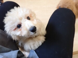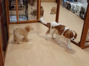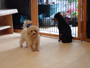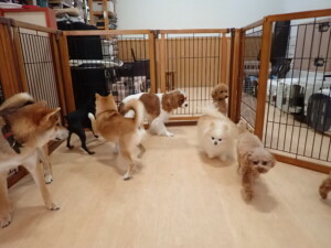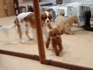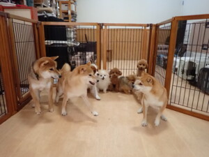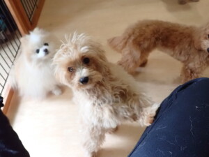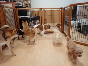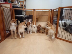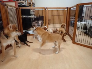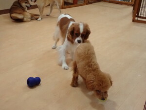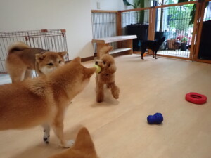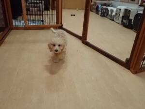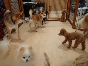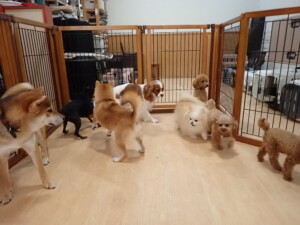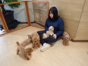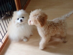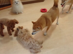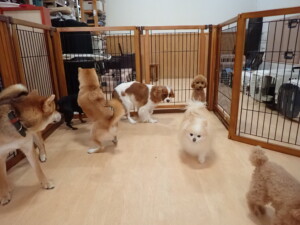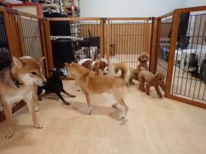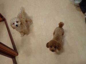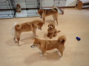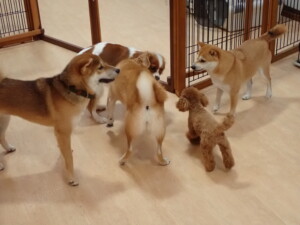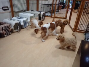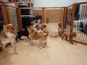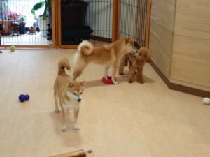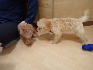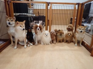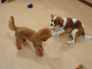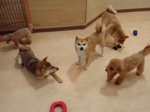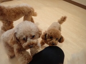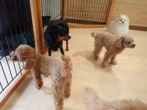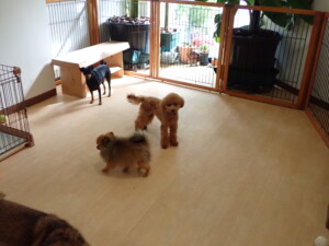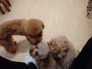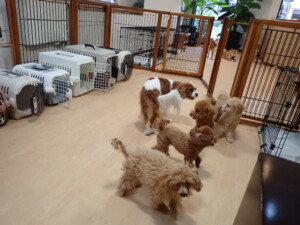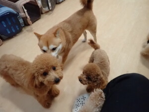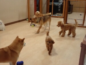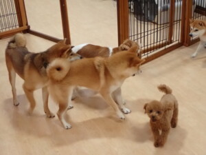 今日はチャロちゃん、ジュン君、あずきちゃん、だんご君、ピピリーニちゃん、むぎ君、たっくす君、が遊びに来てくれました。そして、ポコ君とメリイちゃんがトレーニングに来てくれました。今日からトレーニングを始めるひまわり君も来てくれました。もうすぐ4ヶ月になるトイプードルの男の子です。