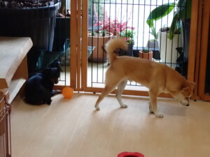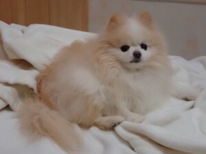 卯月ちゃん、昨夜はお泊まりでした。機嫌よく過ごしていました。