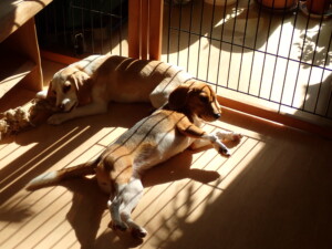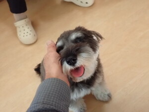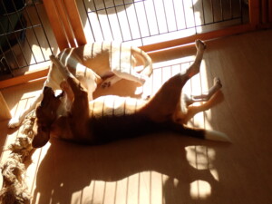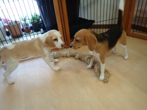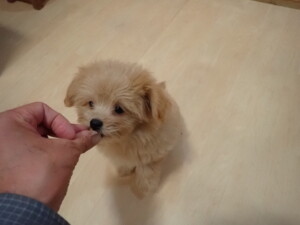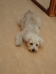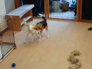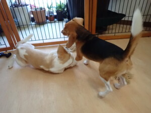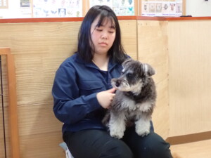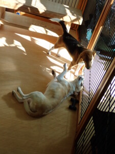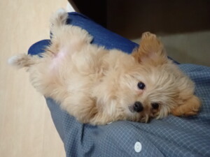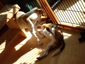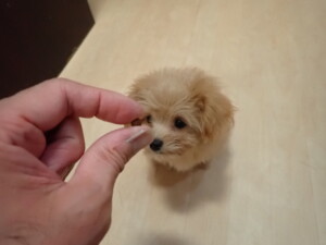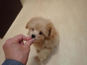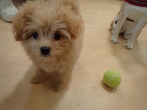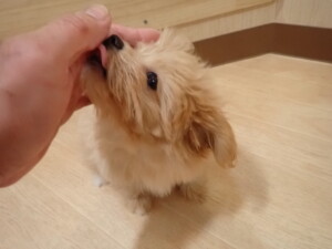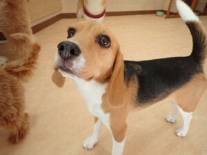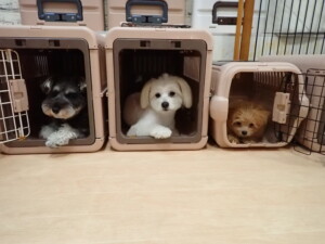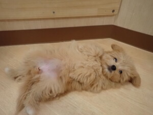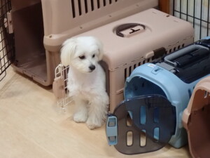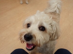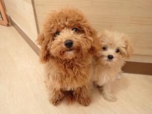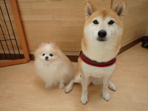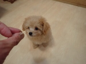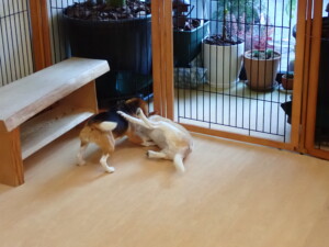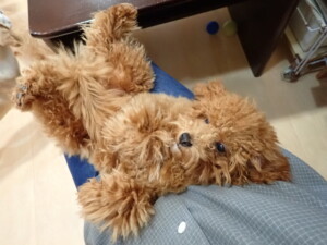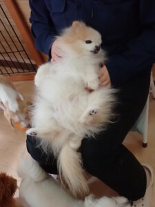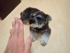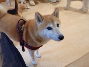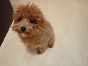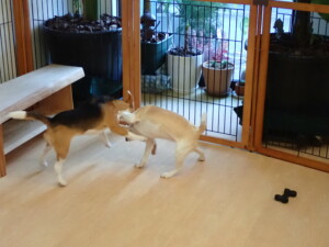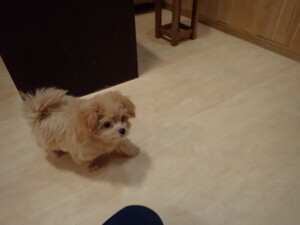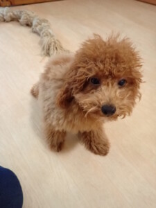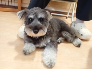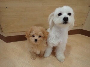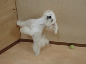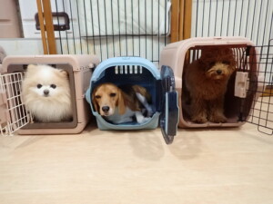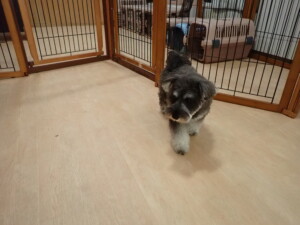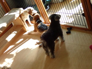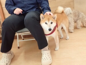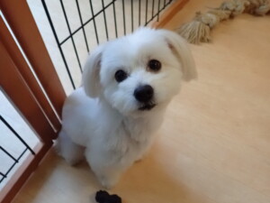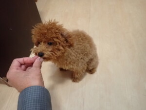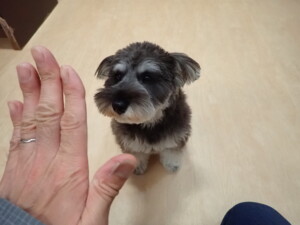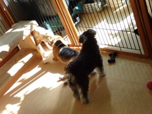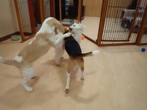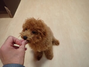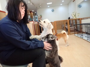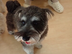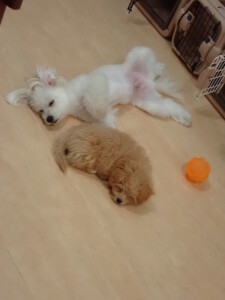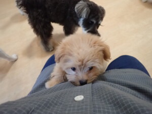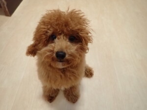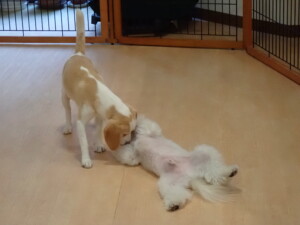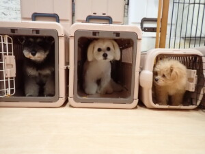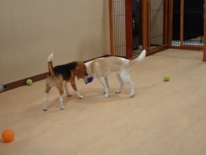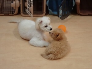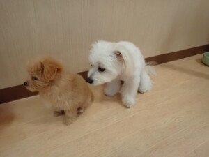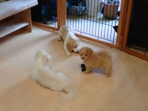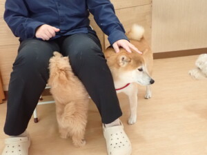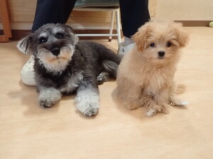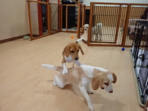 MIX犬のモコ君、グーちゃん、はな子ちゃん、こげ茶君、ぴのちゃん、こげ茶君、トイプードルのモコ君、モモちゃん、元気に遊んでいました。こころちゃん、落ち着いて過ごしていました。ぴのちゃんとトイプードルのモコ君、「お座り」・「マテ」の練習をしました。モモちゃん、「お座り」・「フセ」・「マテ」・「オイデ」の練習をしました。