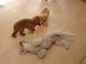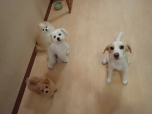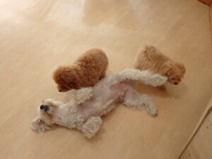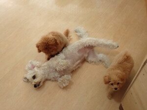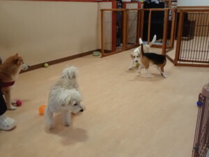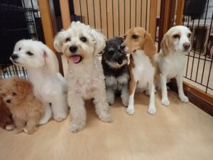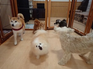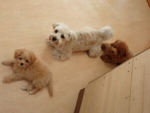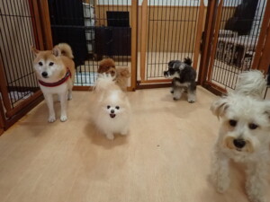 今日はMIX犬のモコ君、グーちゃん、はな子ちゃん、こげ茶君、こころちゃんが遊びに来てくれました。そして、ぴのちゃん、トイプードルのモコ君、モモちゃん、がトレーニングに来てくれました。