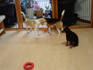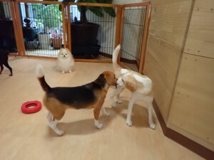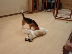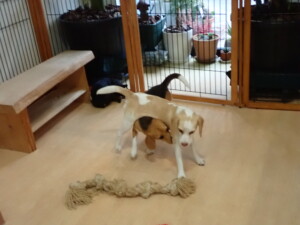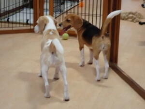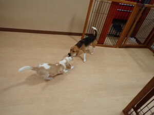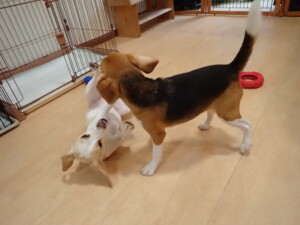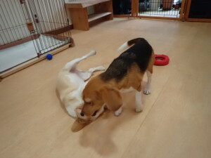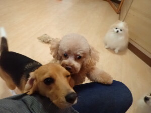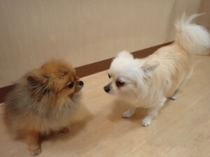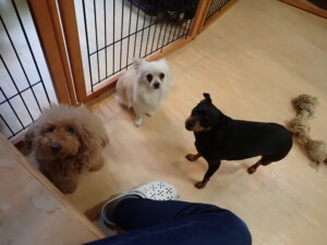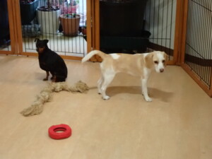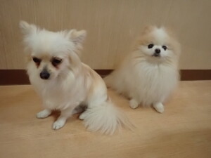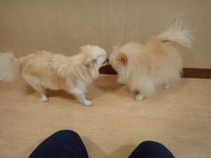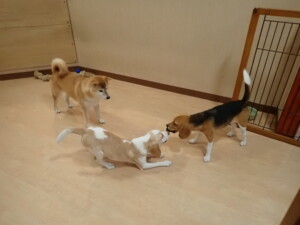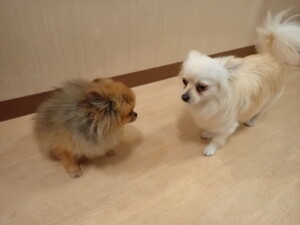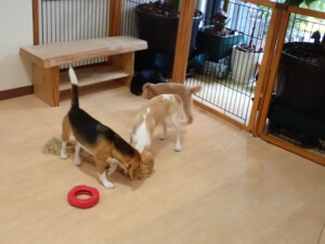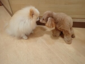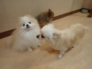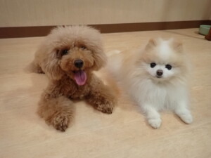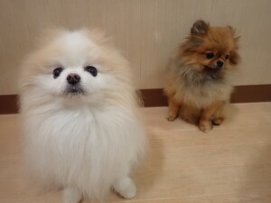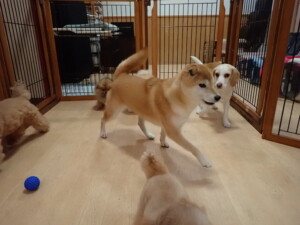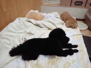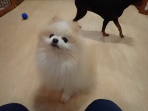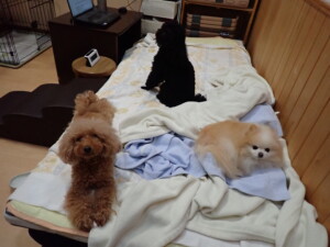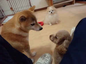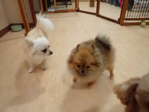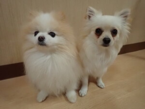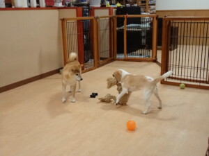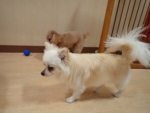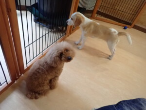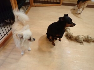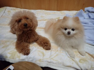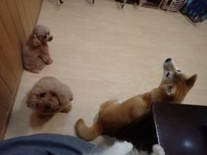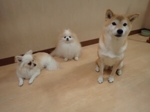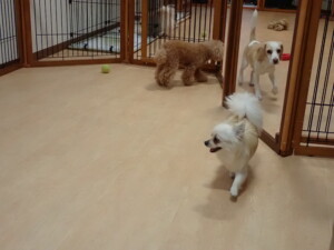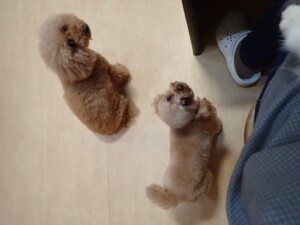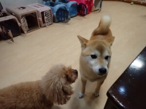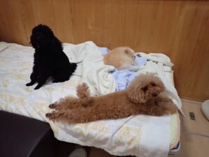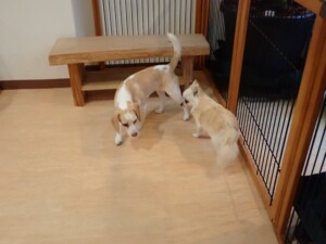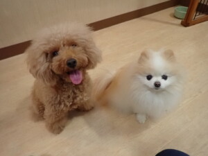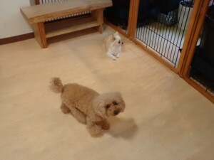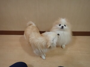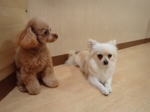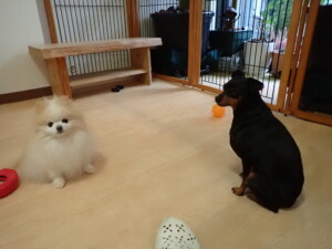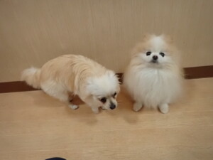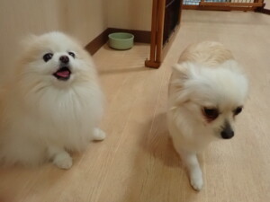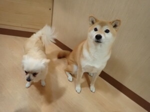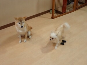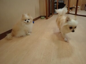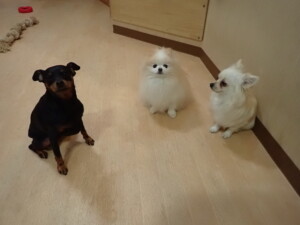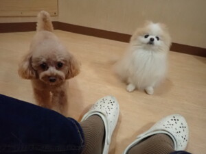 まりもちゃんは昨夜と一昨日、アメリちゃんは一昨日お泊まりでした。どちらも機嫌よく過ごしていました。