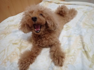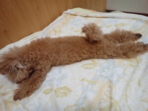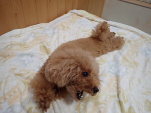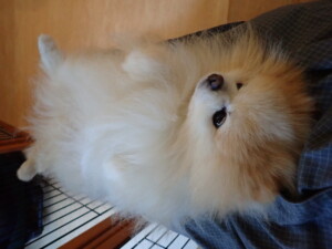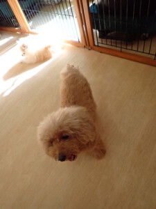 まりもちゃん、昨夜もお泊まりでした。機嫌よく過ごしていました。