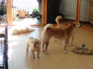 まりもちゃんとさくらこちゃん、落ち着いて過ごしていました。だんご君、むぎ君、あずきちゃん、メリイちゃん、元気に遊んでいました。