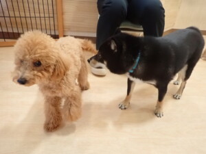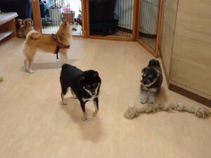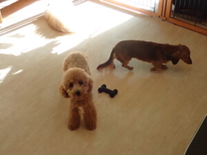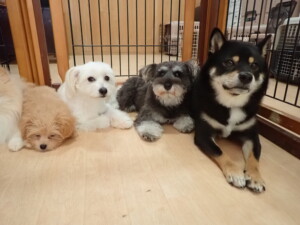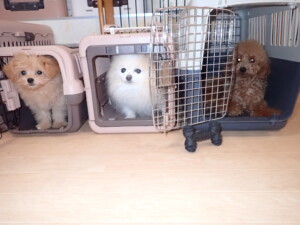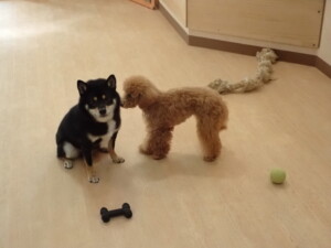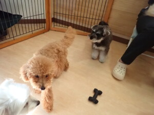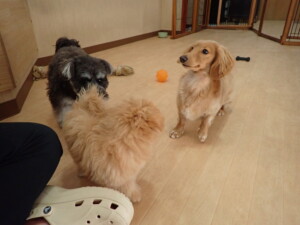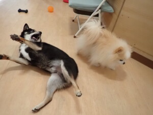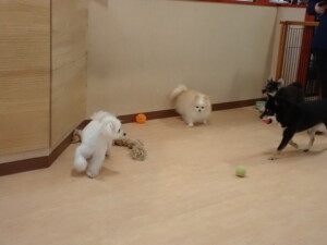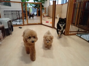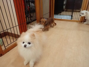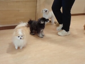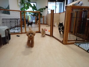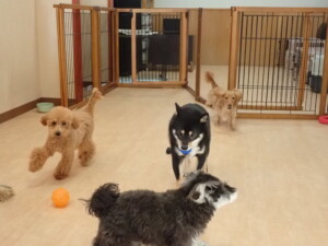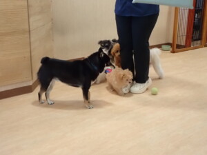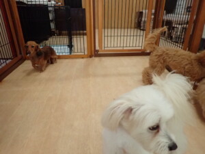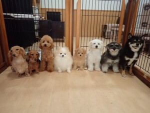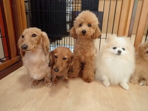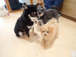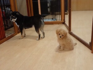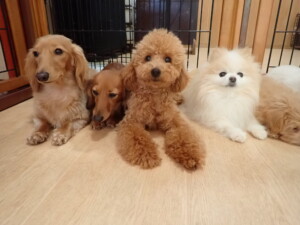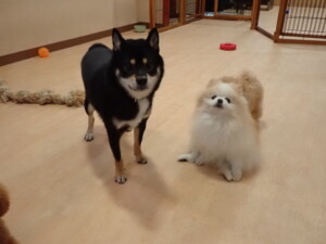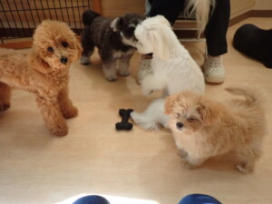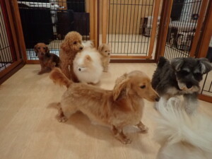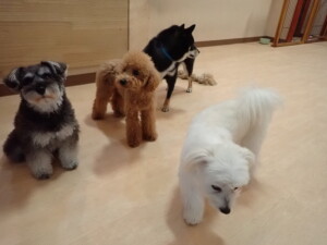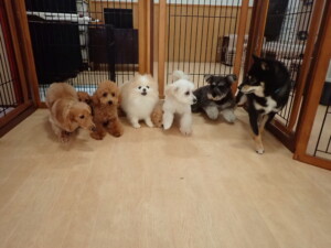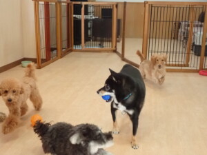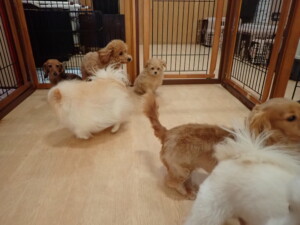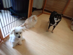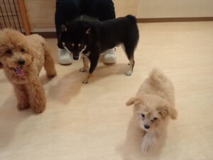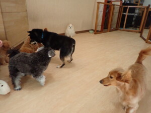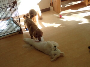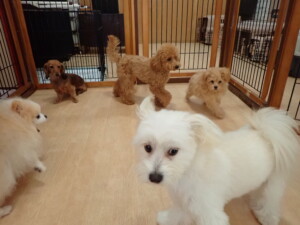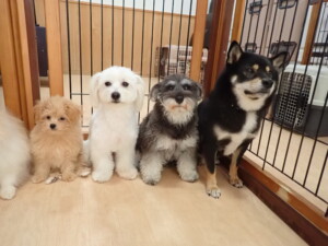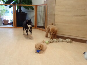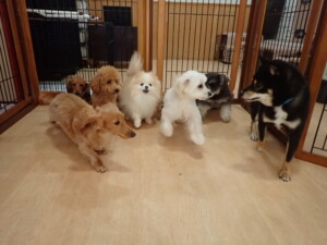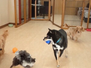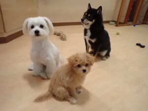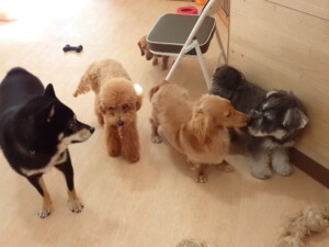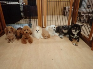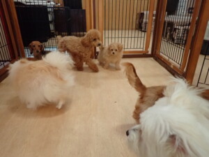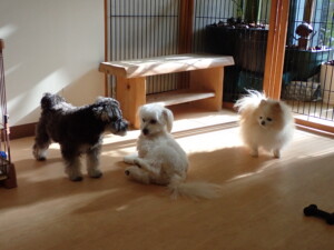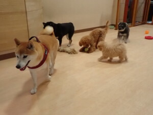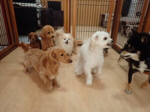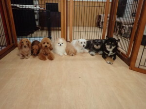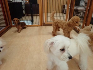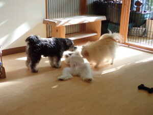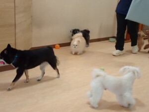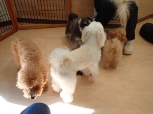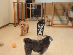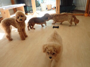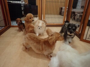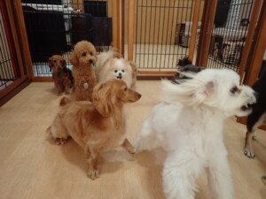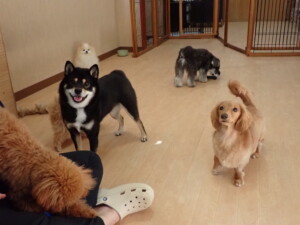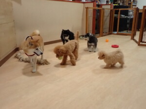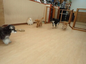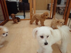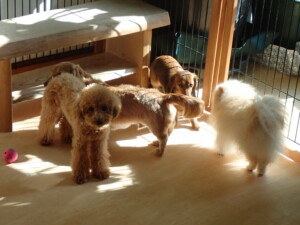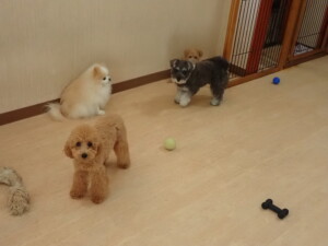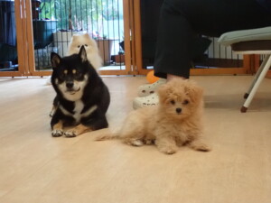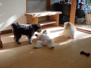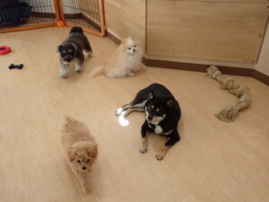モコ君、三瑚君、ぴのちゃん、ももちゃん、元気に遊んでいました。二瑚ちゃんとこころちゃん、落ち着いて過ごしていました。ぴのちゃん、「お座り・「フセ」・「マテ」の練習をしました。ももちゃん、「お座り・「フセ」・「マテ」・「オイデ」・「ハウス」の練習をしました。ももちゃん、今日でトレーニング卒業です。