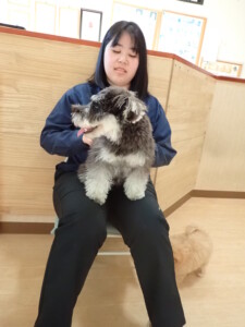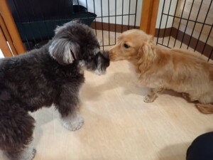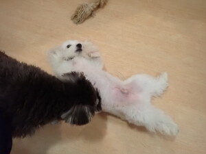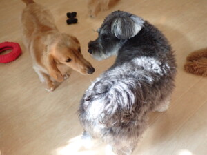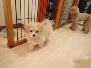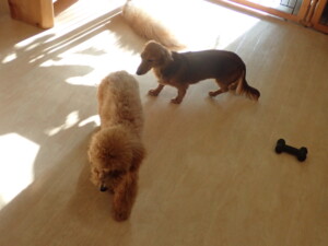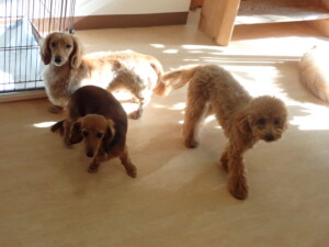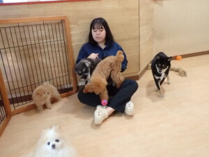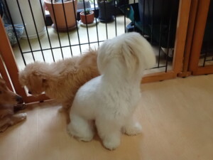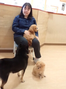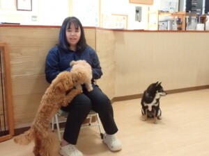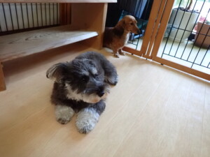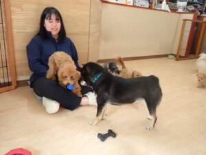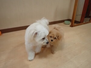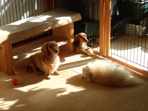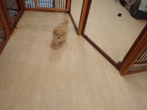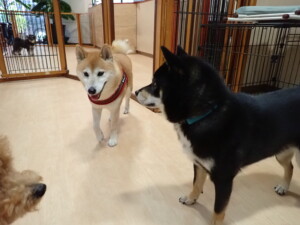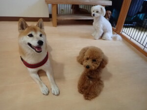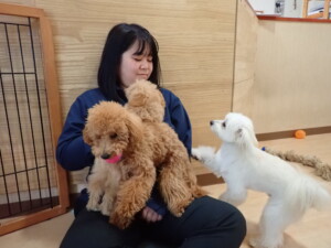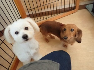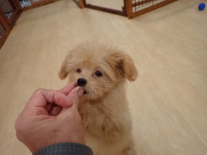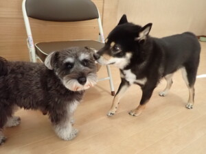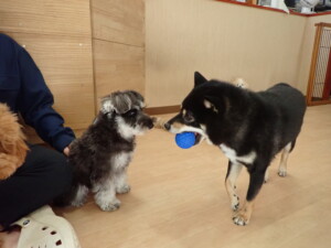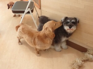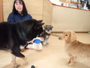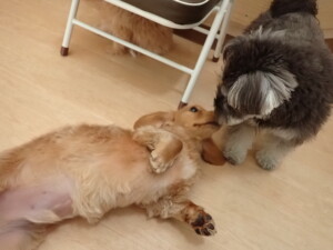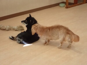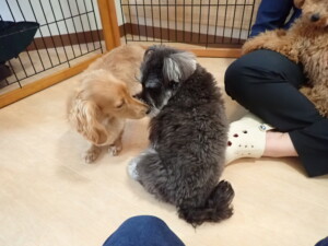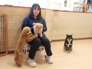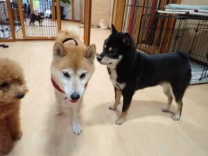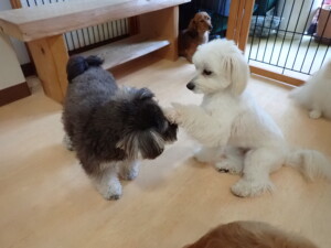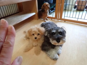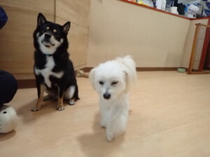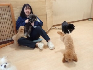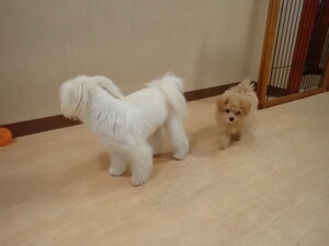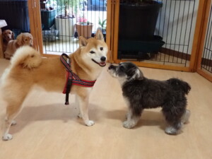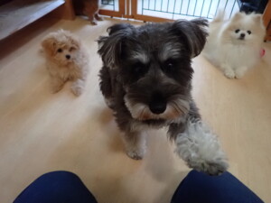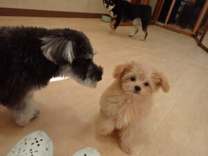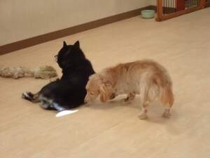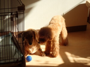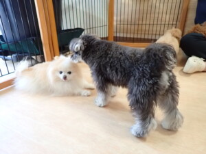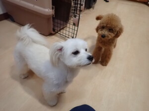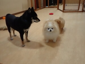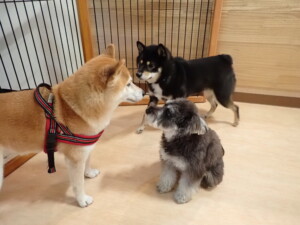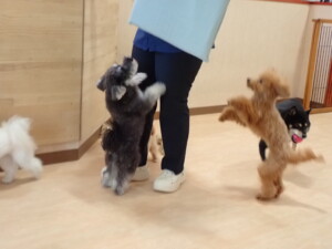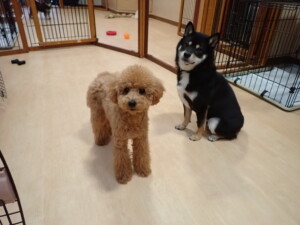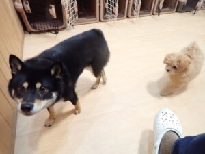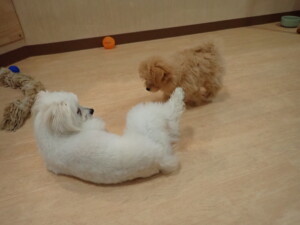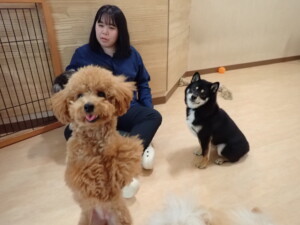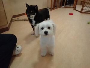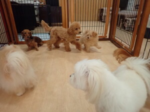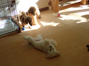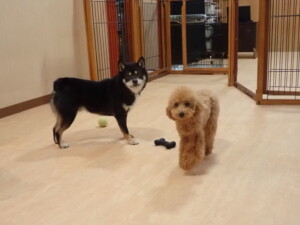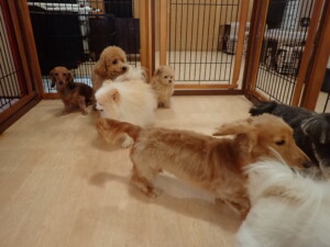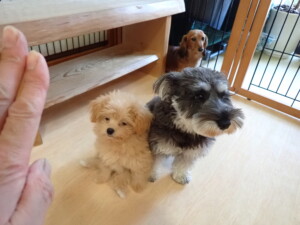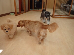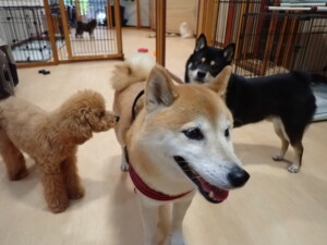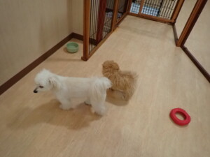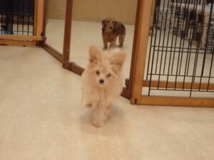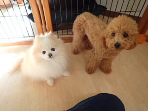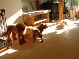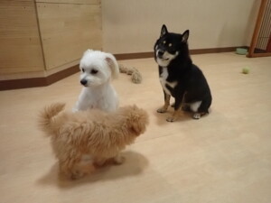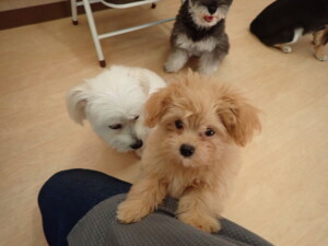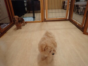 モコ君、三瑚君、ぴのちゃん、ももちゃん、元気に遊んでいました。二瑚ちゃんとこころちゃん、落ち着いて過ごしていました。ぴのちゃん、「お座り・「フセ」・「マテ」の練習をしました。ももちゃん、「お座り・「フセ」・「マテ」・「オイデ」・「ハウス」の練習をしました。ももちゃん、今日でトレーニング卒業です。