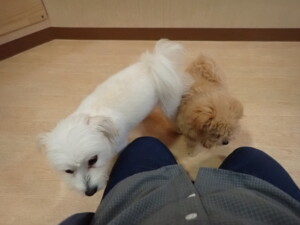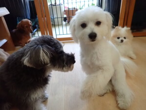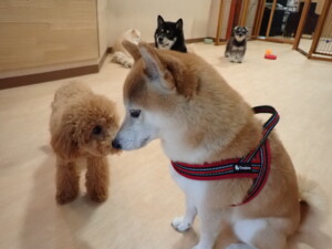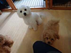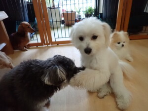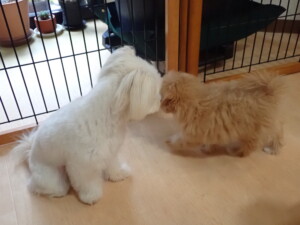 今日はモコ君、もっち君、メリイちゃん、二瑚ちゃん、三瑚君、こころちゃんが遊びに来てくれました。そして、ぴのちゃんとももちゃんがトレーニングに来てくれました