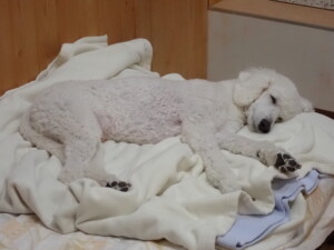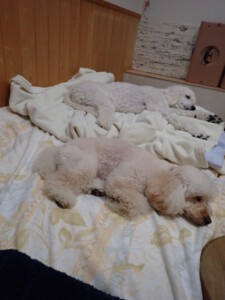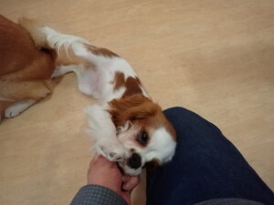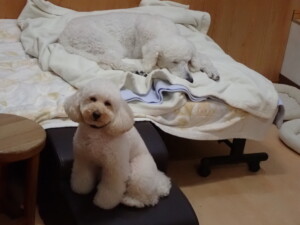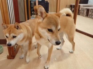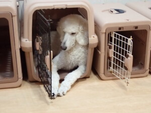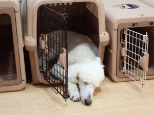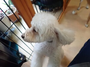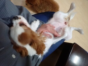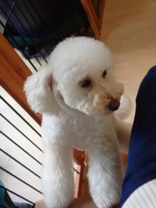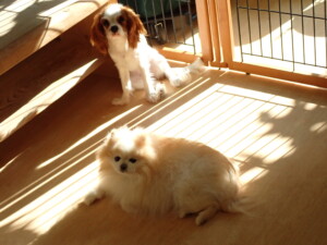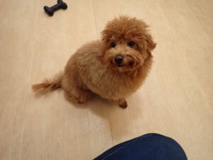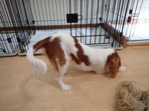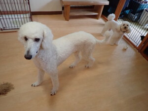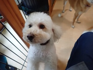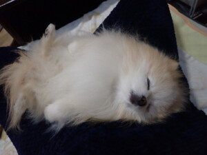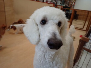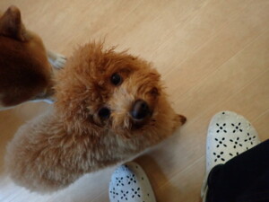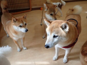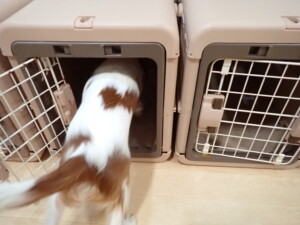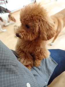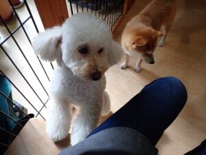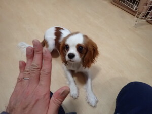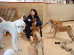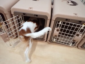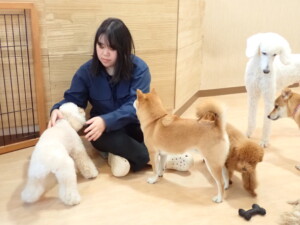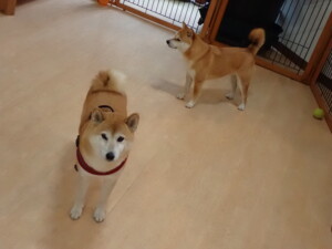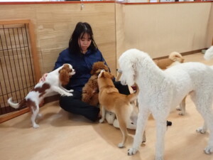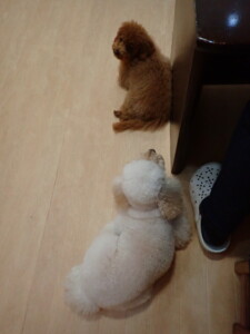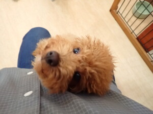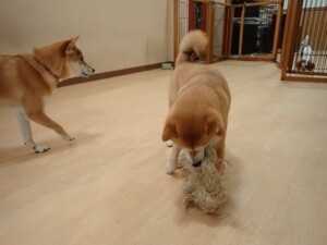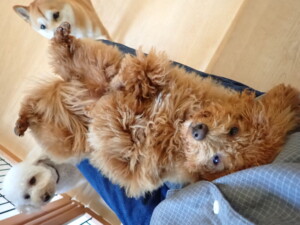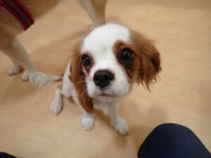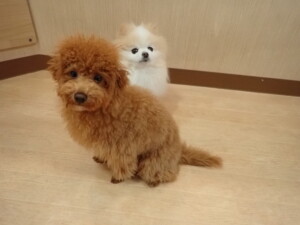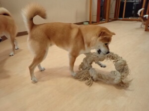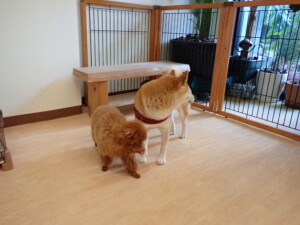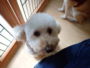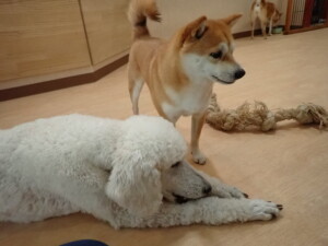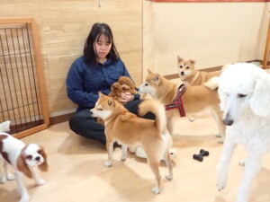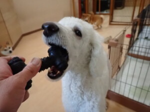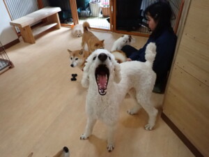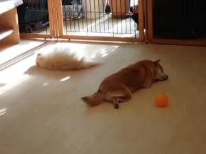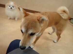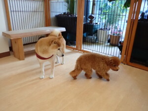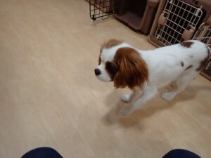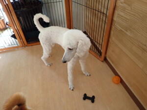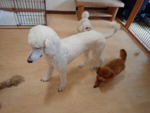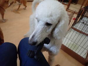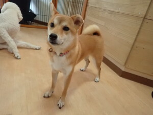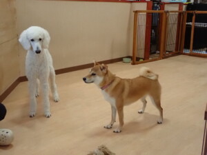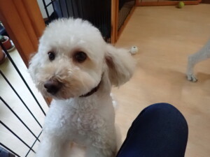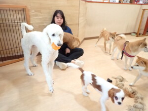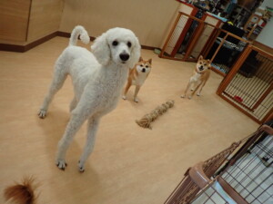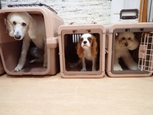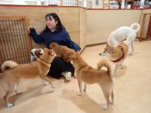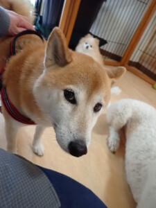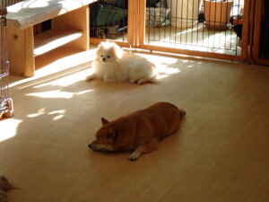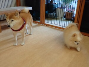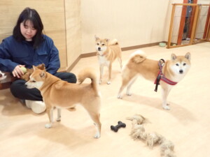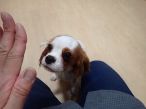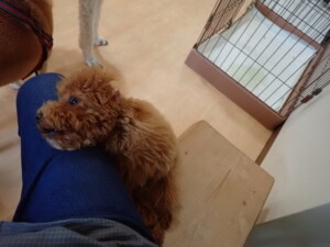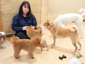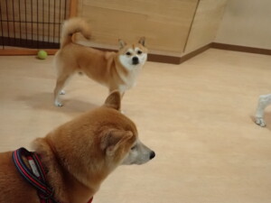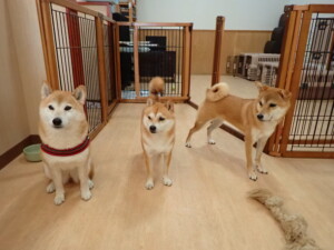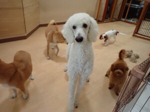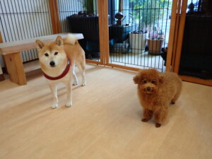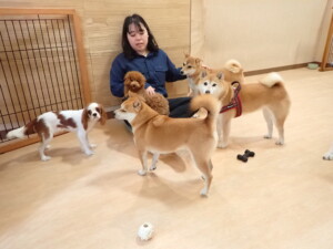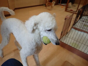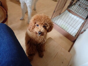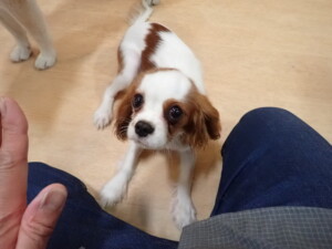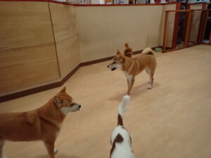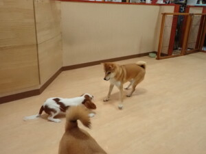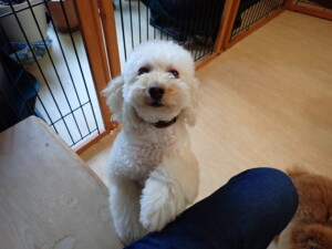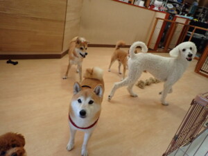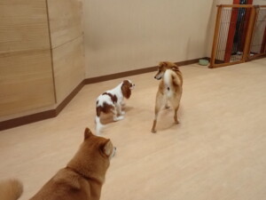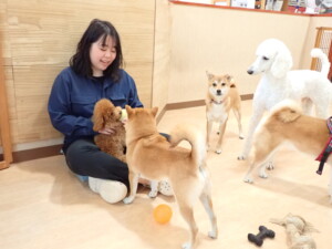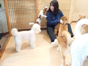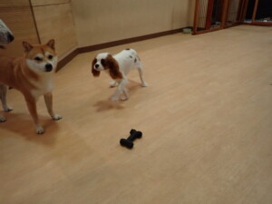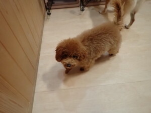 モモちゃんとこころちゃん、落ち着いて過ごしていました。ふじまる君、だんご君、ハルちゃん、モコ君、ミアちゃん、元気に遊んでいました。モコ君、「お座り」・「マテ」の練習をしました。ミアちゃん、「お座り・「フセ」・「マテ」・「オイデ」・「ハウス」の練習をしました。