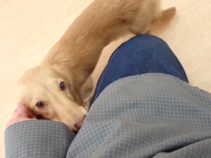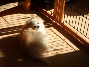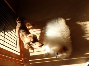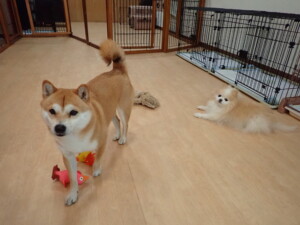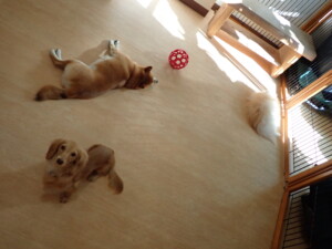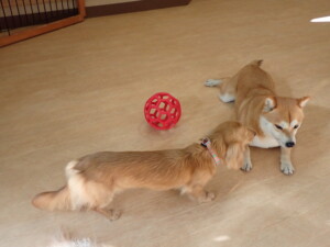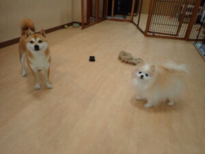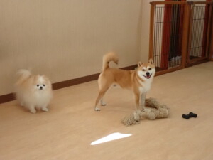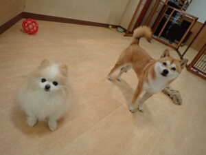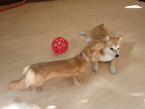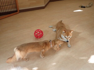 ミコルちゃん、落ち着いて過ごしていました。だんご君、元気に遊んでいました。ミコルちゃん、「お座り」・「マテ」の練習をしました。