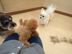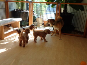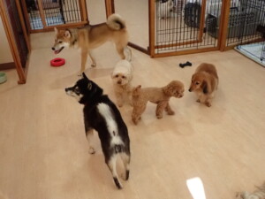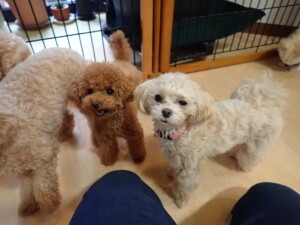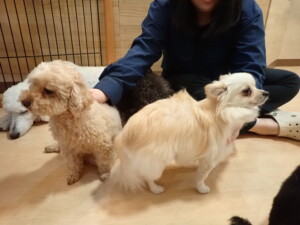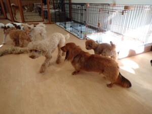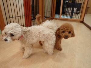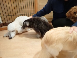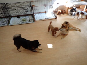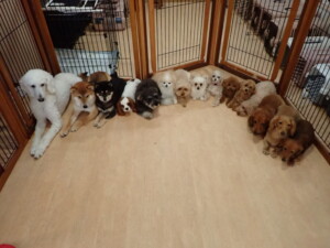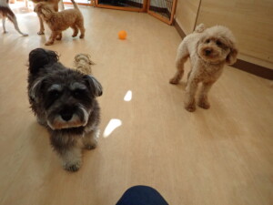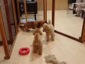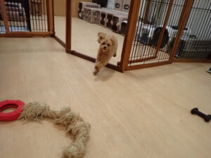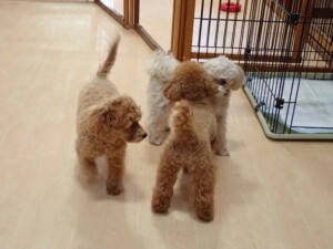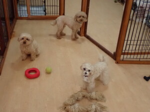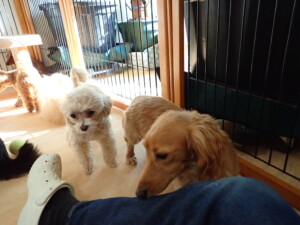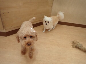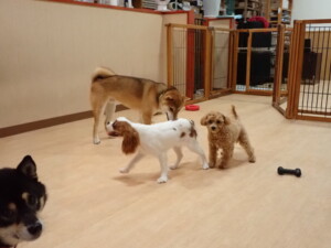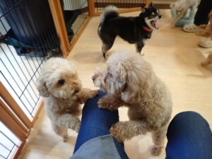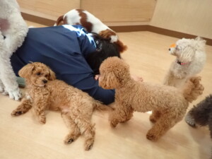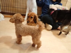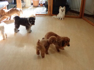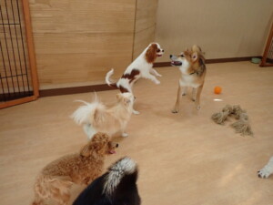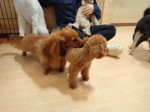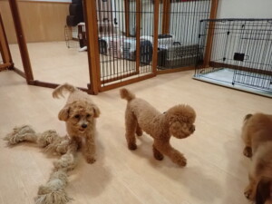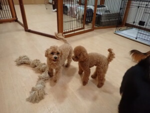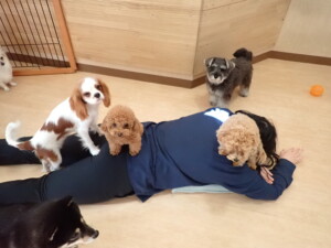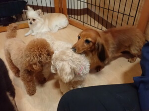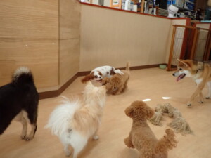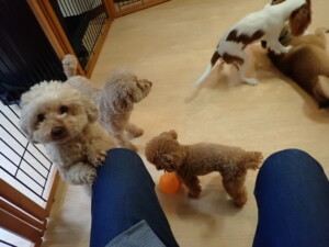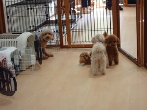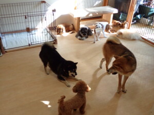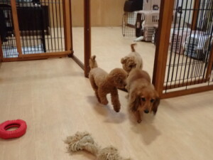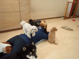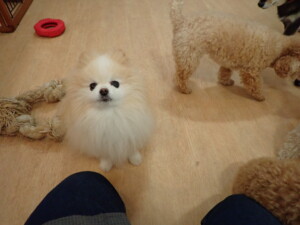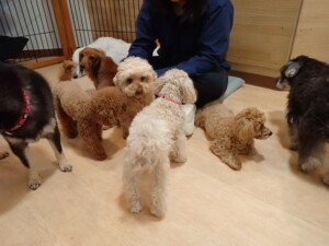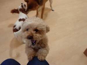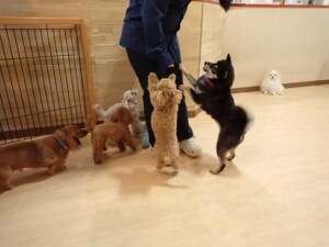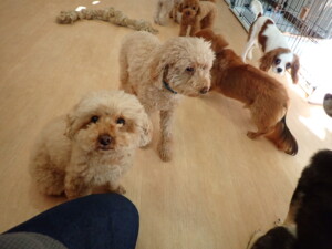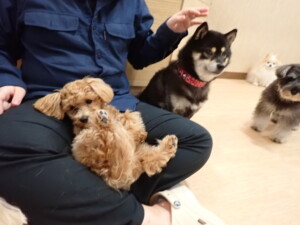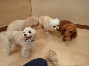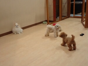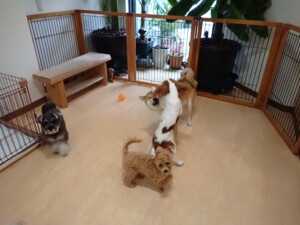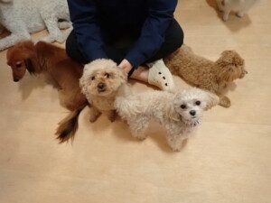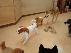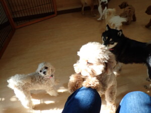 ふじまる君、ミルちゃん、モモちゃん、たっくす君、むぎ君、三瑚君、ちいこちゃん、こまちゃん、ポコ君、ミアちゃん元気に遊んでいました。れお君、二瑚ちゃん、ソラ君、さくらこちゃん、落ち着いて過ごしていました。ポコ君、「お座り・「フセ」・「マテ」・「オイデ」の練習をしました。ミアちゃん、「お座り・「フセ」・「マテ」・「オイデ」・「ハウス」の練習をしました。