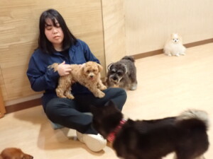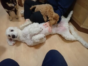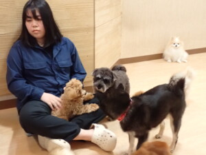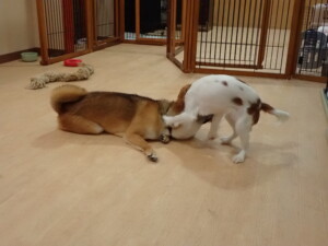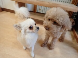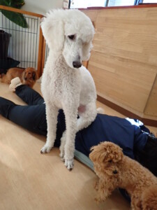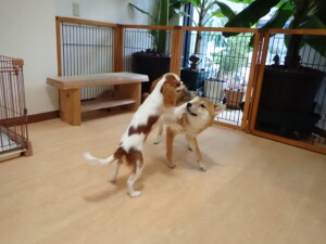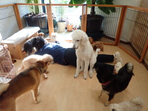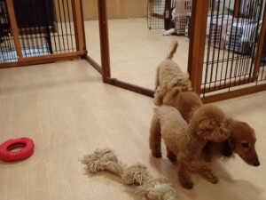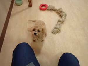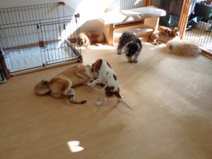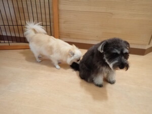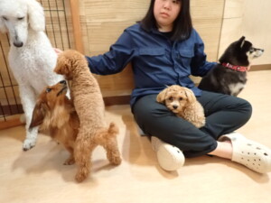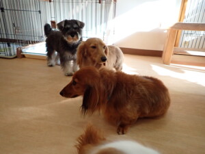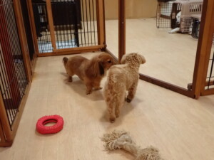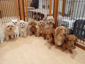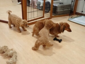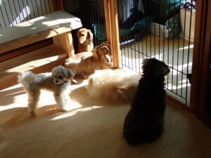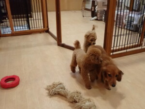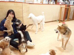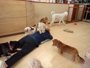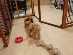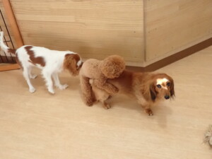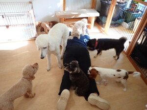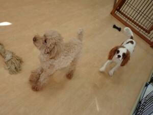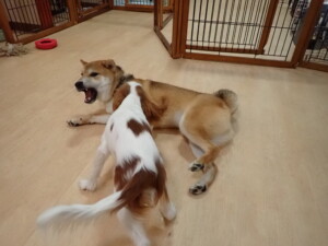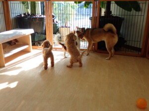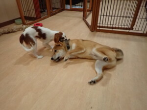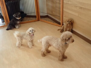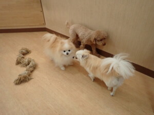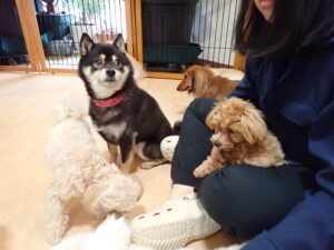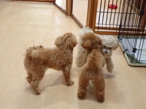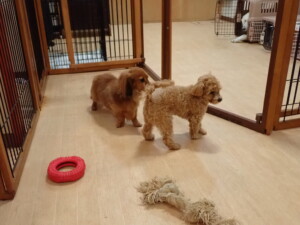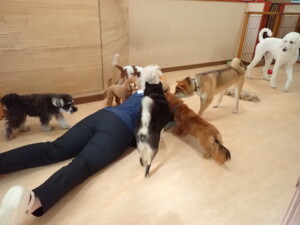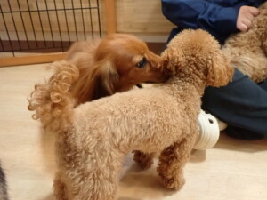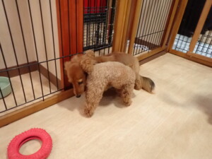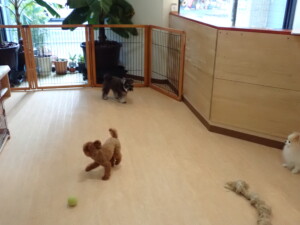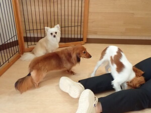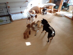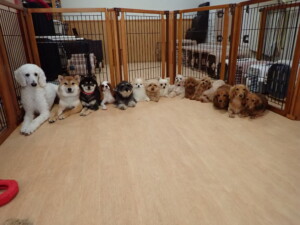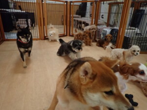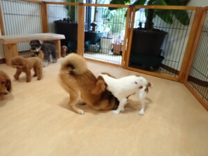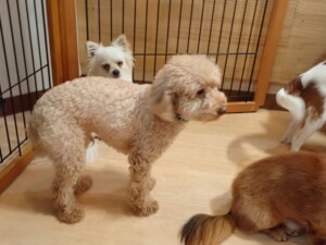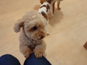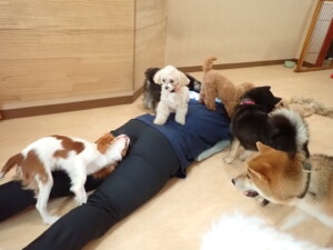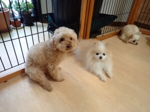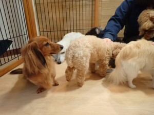 ふじまる君、ミルちゃん、モモちゃん、たっくす君、むぎ君、三瑚君、ちいこちゃん、こまちゃん、ポコ君、ミアちゃん元気に遊んでいました。れお君、二瑚ちゃん、ソラ君、さくらこちゃん、落ち着いて過ごしていました。ポコ君、「お座り・「フセ」・「マテ」・「オイデ」の練習をしました。ミアちゃん、「お座り・「フセ」・「マテ」・「オイデ」・「ハウス」の練習をしました。