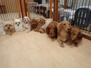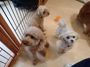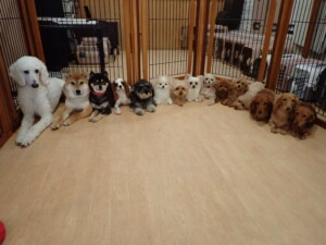 今日はふじまる君、ミルちゃん、モモちゃん、たっくす君、むぎ君、れお君、二瑚ちゃん、三瑚君、ちいこちゃん、ソラ君、こまちゃん、さくらこちゃんが遊びに来てくれました。そして、ポコ君とミアちゃんがトレーニングに来てくれました。