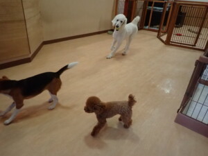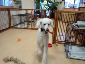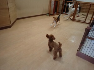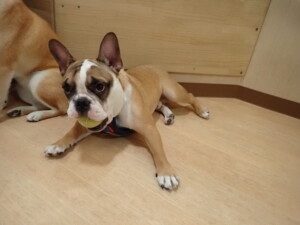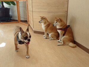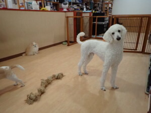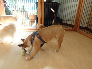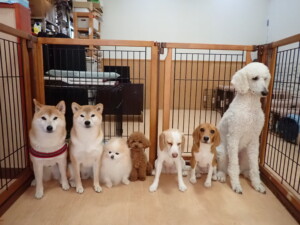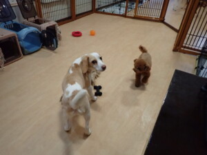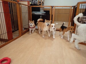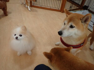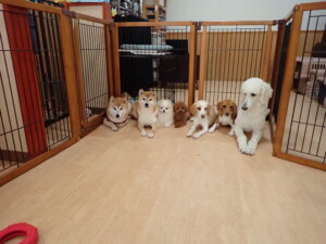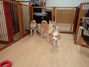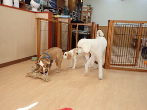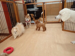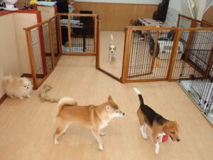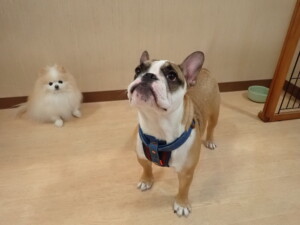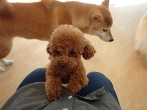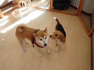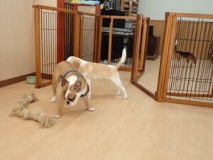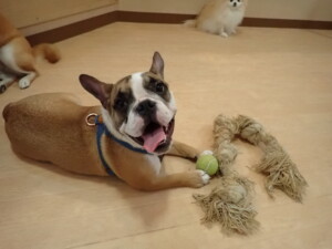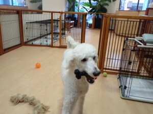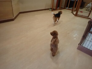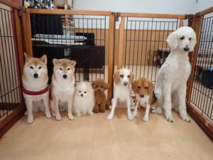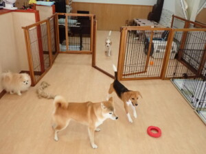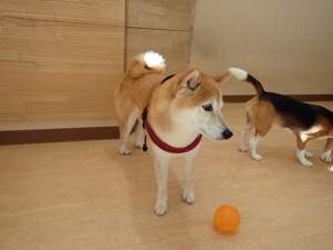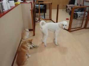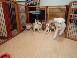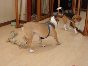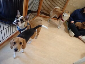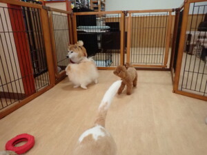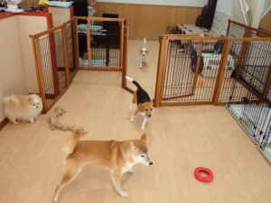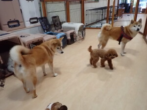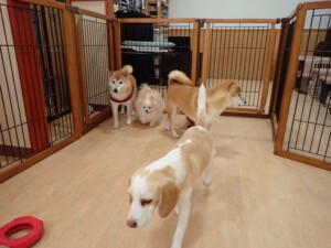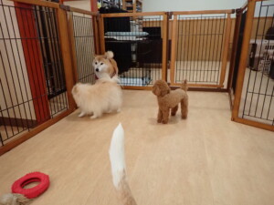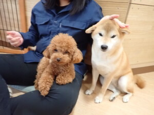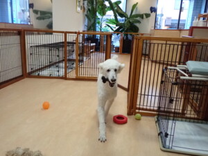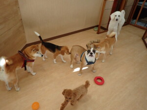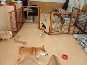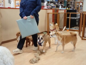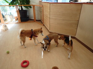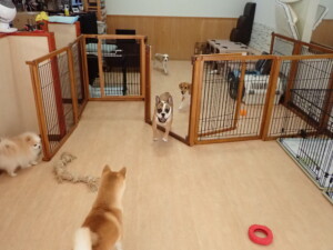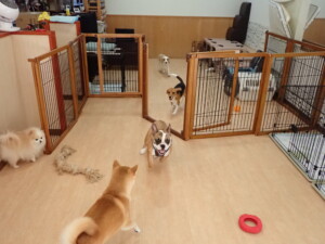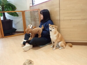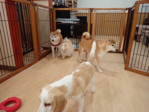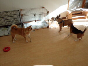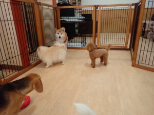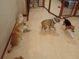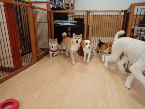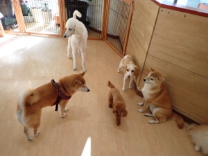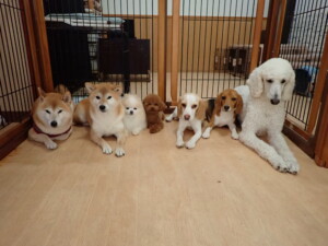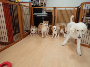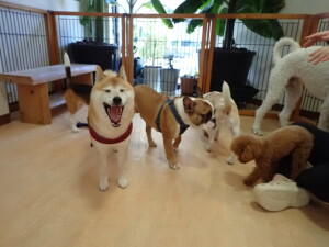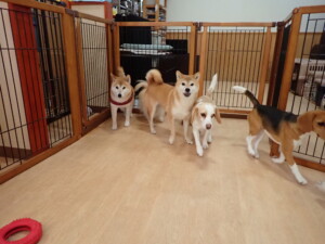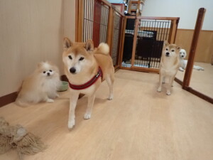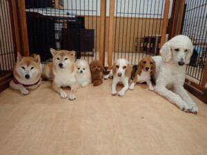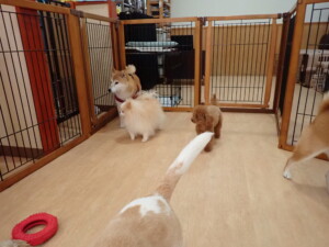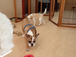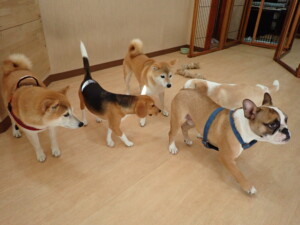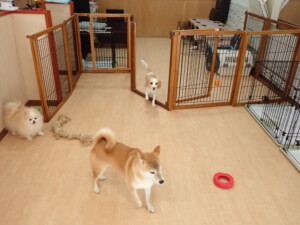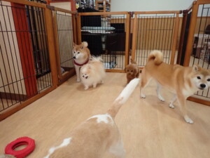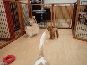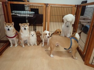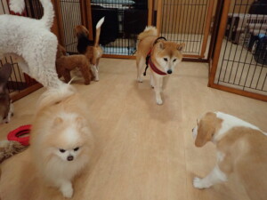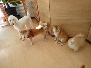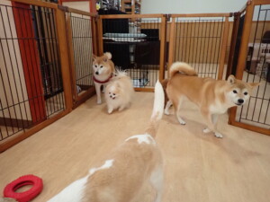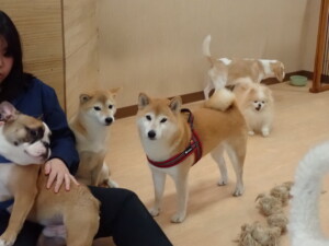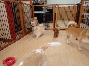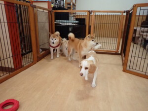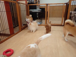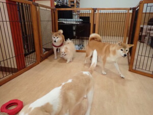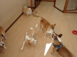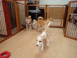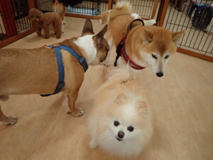 ふじまる君、はな子ちゃん、グーちゃん、たっくす君、アントニー君、元気に遊んでいました。紅葉ちゃんとこころちゃん、落ち着いて過ごしていました。アントニー君、「お座り」の練習をしました。