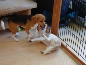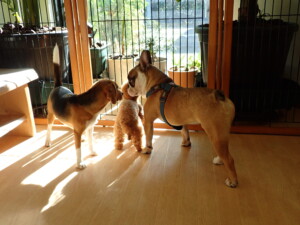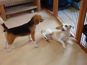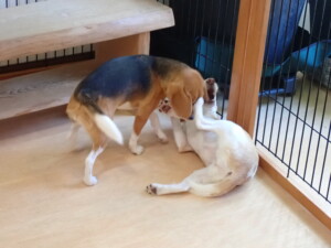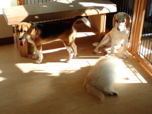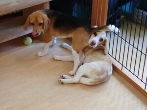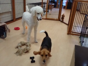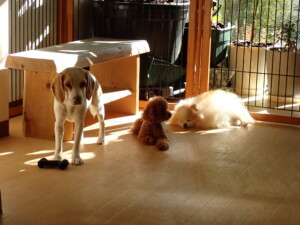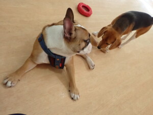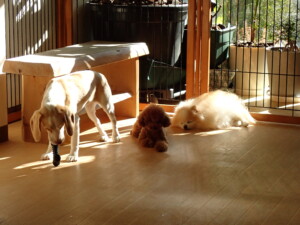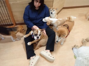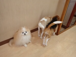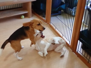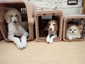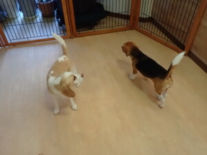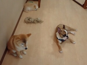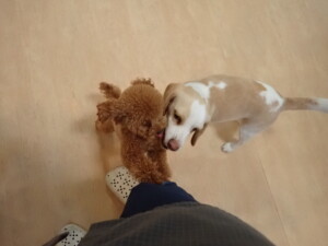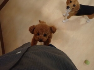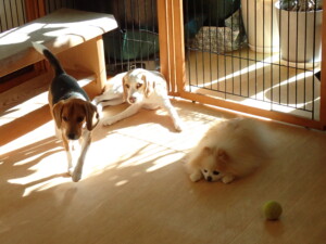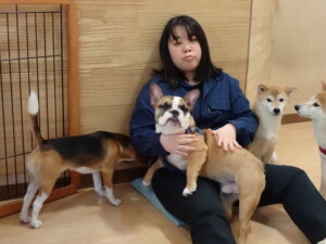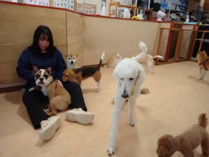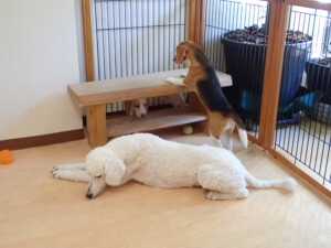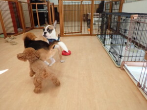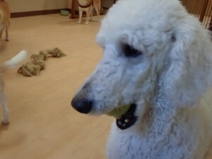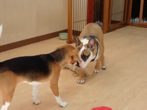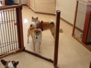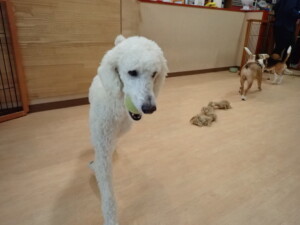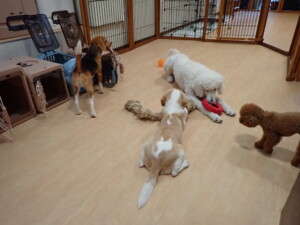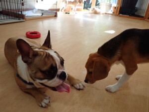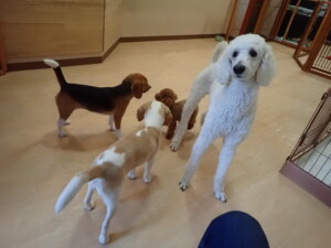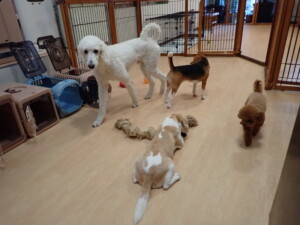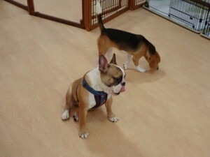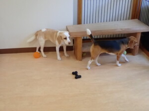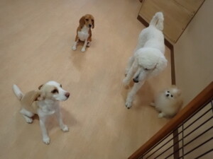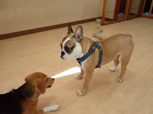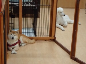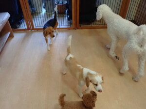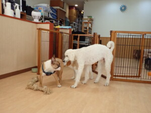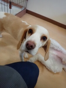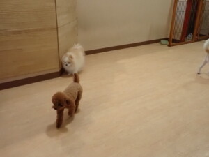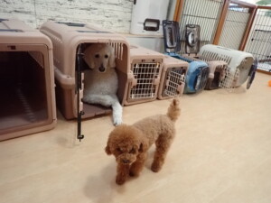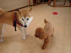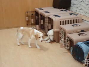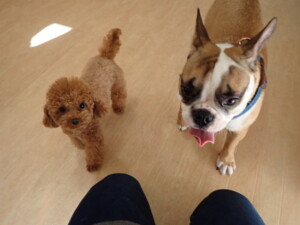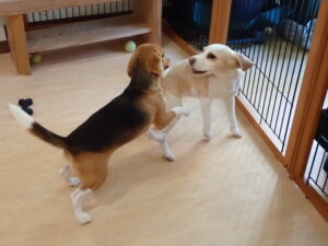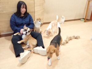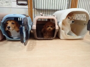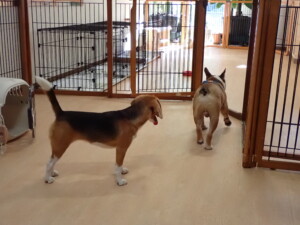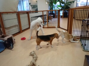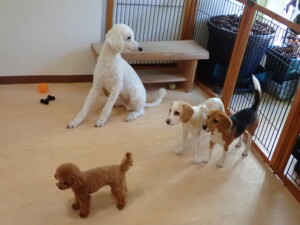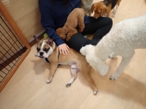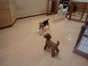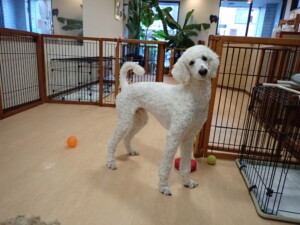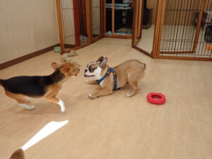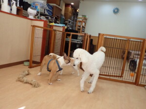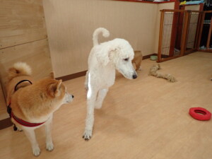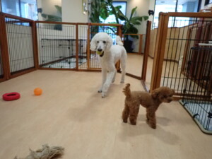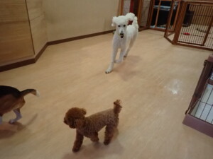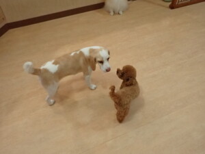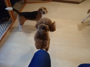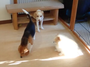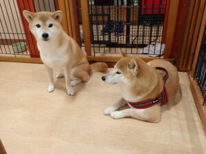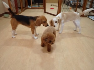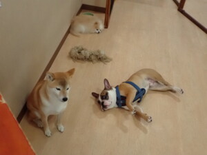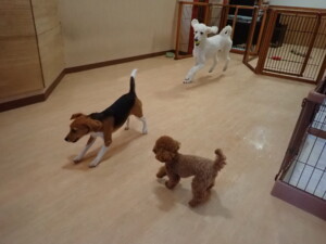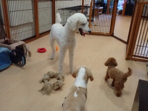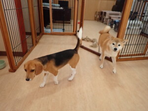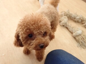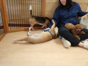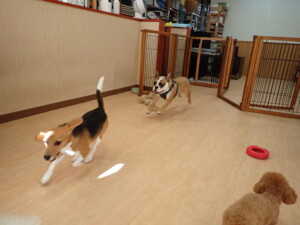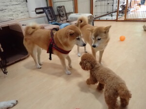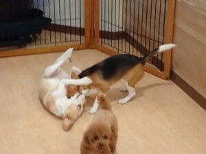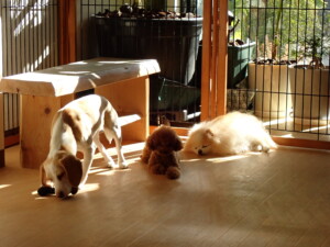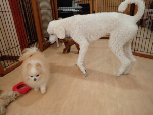 ふじまる君、はな子ちゃん、グーちゃん、たっくす君、アントニー君、元気に遊んでいました。紅葉ちゃんとこころちゃん、落ち着いて過ごしていました。アントニー君、「お座り」の練習をしました。