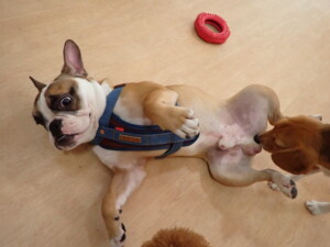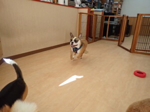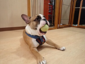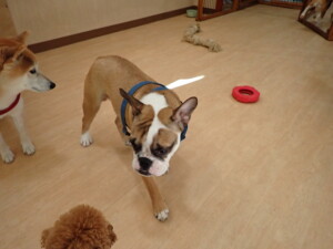 今日ははな子ちゃん、グーちゃん、たっくす君、紅葉ちゃん、こころちゃんが遊びに来てくれました。今日からトレーニングを始めるアントニー君も来てくれました。8ヶ月になるフレンチブルドッグ×ブルドッグのMIXの男の子です。