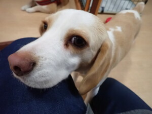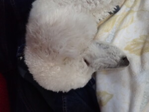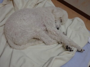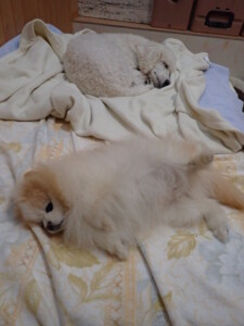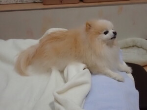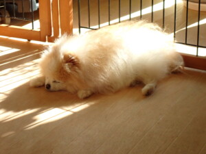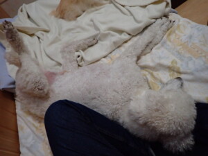 ふじまる君、昨夜はお泊まりでした。のんびりと過ごしていました。