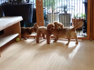 ポーちゃん、チャロちゃん、二瑚ちゃん、落ち着いて過ごしていました。ブブ君、こげ茶君、三瑚君、たっくす君、元気に遊んでいました。