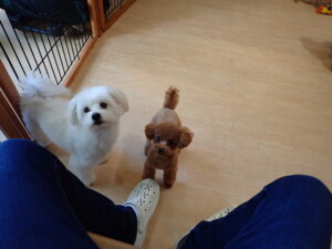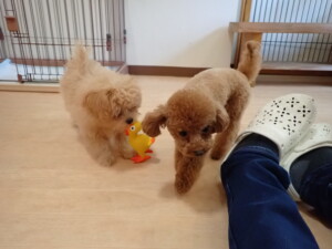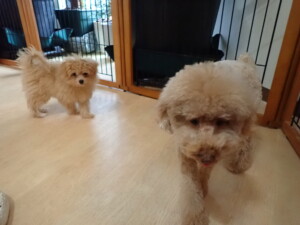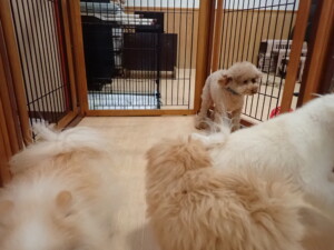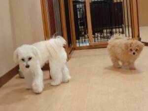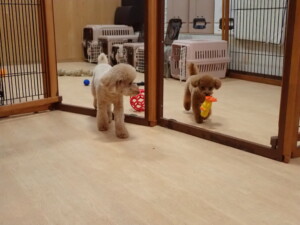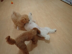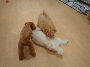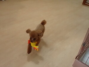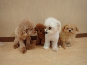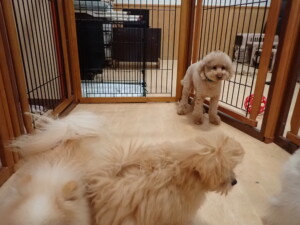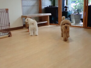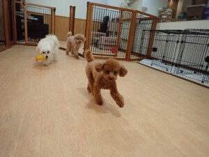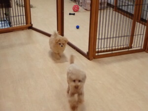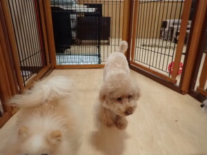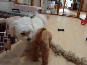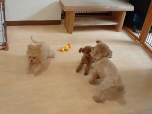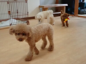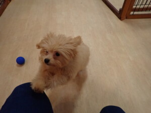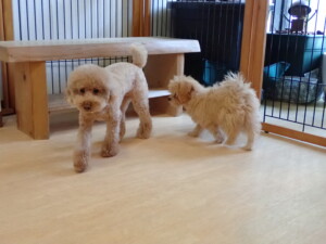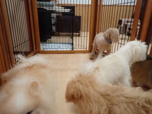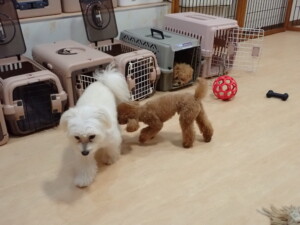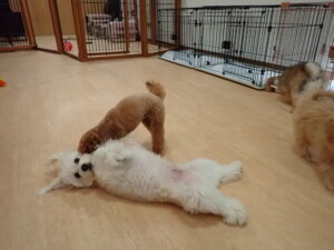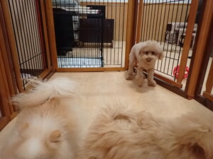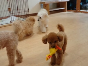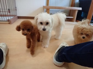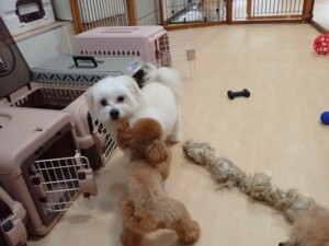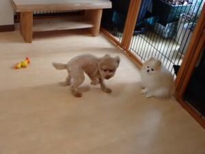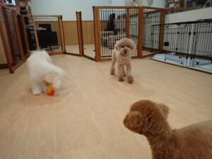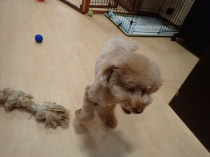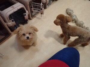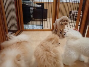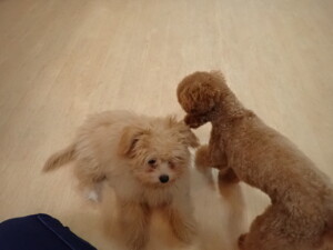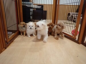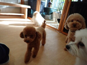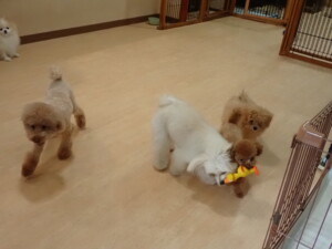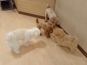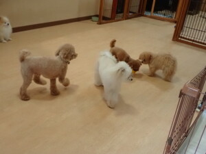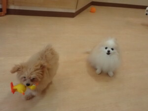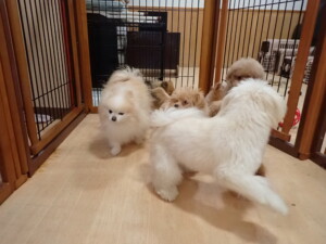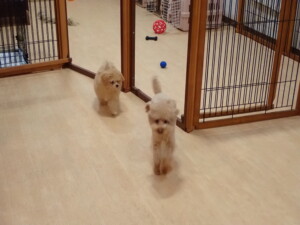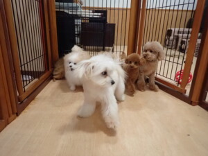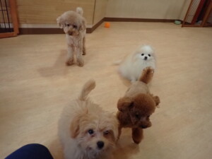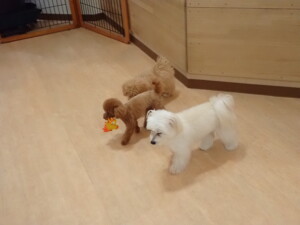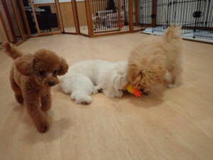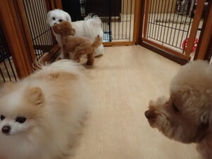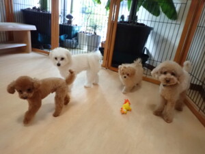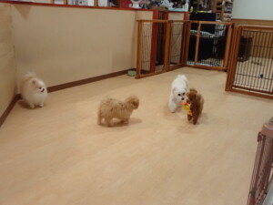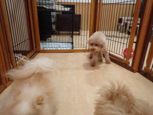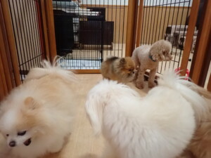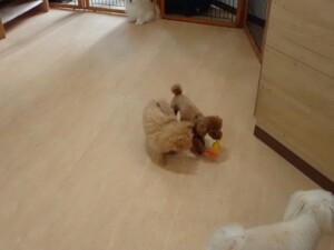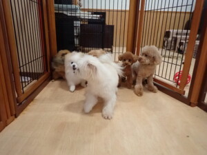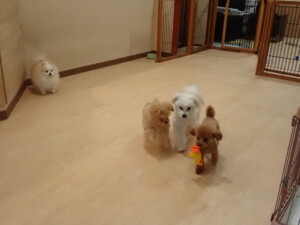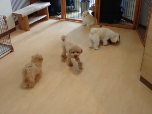 モコ君、たっくす君、ソラ君、ぴのちゃん、元気に遊んでいました。卯月ちゃん、落ち着いて過ごしていました。ぴのちゃん、「お座り・「フセ」・「マテ」・「オイデ」の練習をしました。