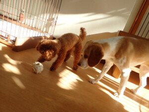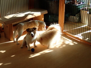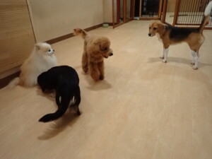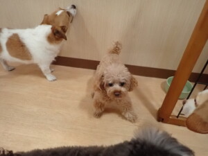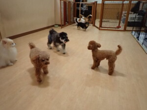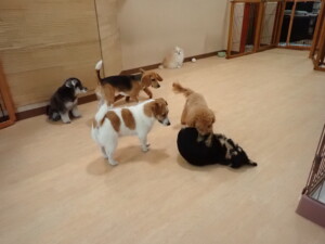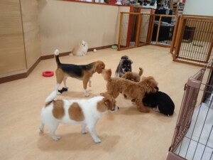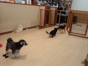 グーちゃん、はな子ちゃん、まる君、たっくす君、メリィちゃん、寛大君、ももちゃん、元気に遊んでいました。チャロちゃん、落ち着いて過ごしていました。