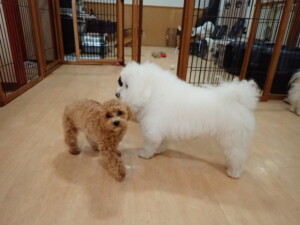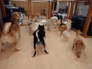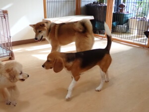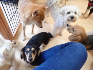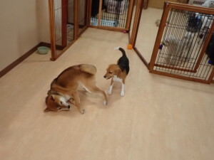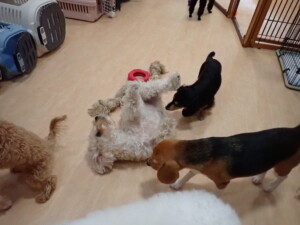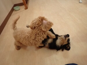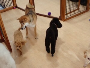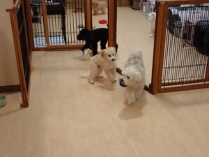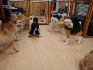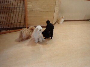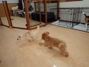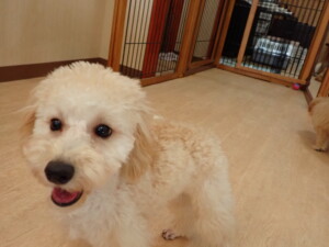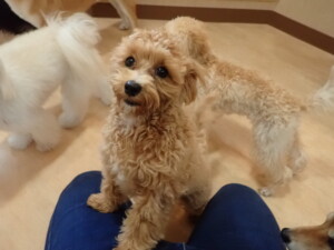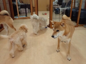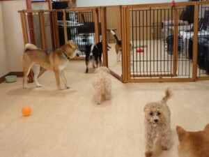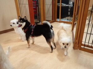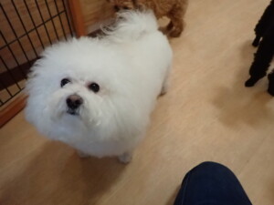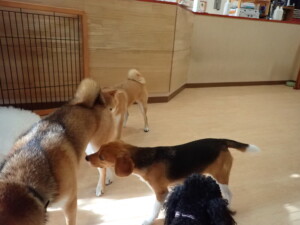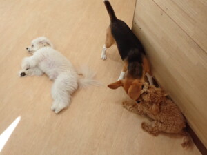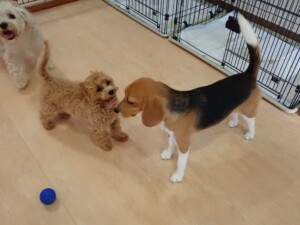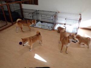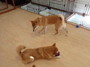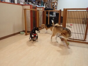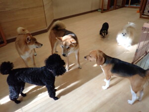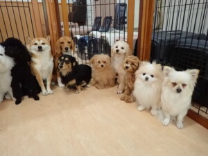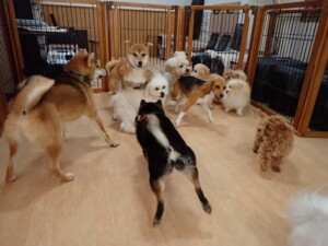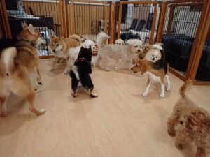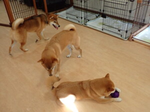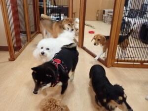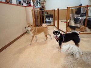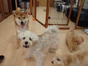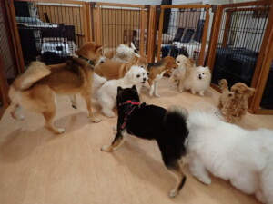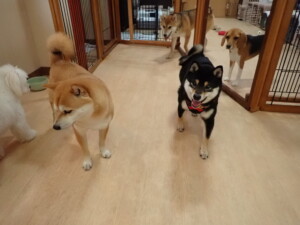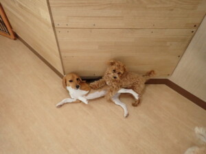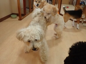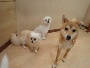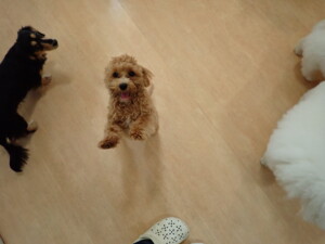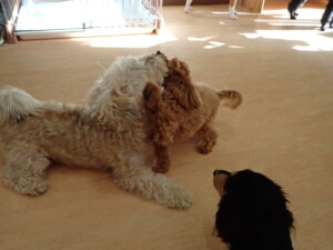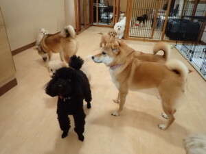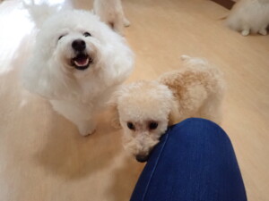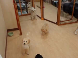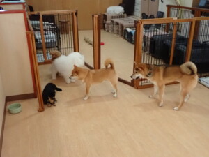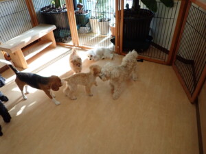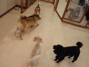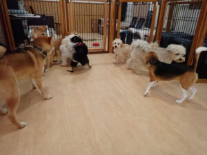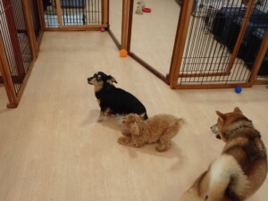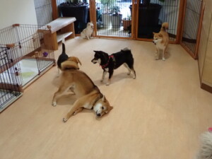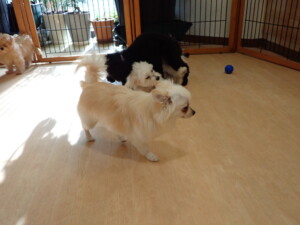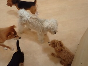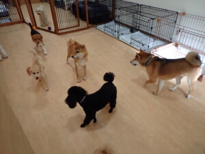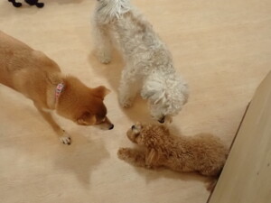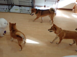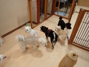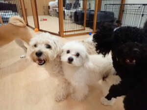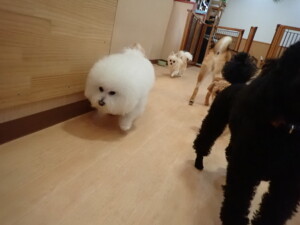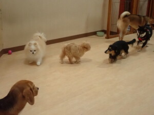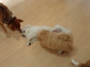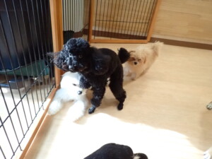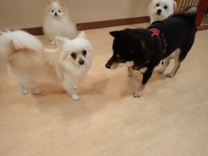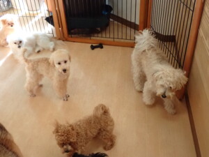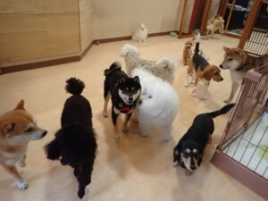 まる君、ブブ君、モコ君、アメリちゃん、ハルちゃん、こげ茶君、ミルちゃん、むぎ君、はな子ちゃん、ポコ君、スズちゃん、ぴのちゃん、ひまわり君、元気に遊んでいました。ポーちゃん、落ち着いて過ごしていました。ぴのちゃん、「お座り・「フセ」・「マテ」・「オイデ」の練習をしました。ひまわり君、「お座り・「フセ」・「マテ」の練習をしました。