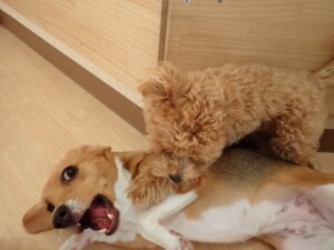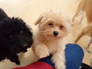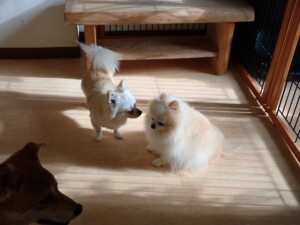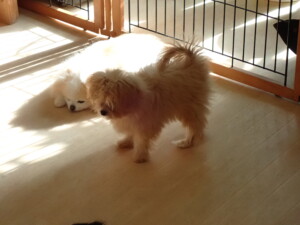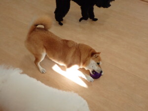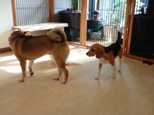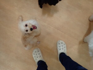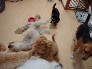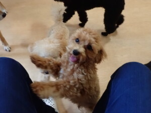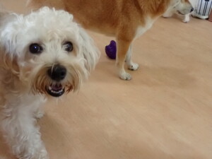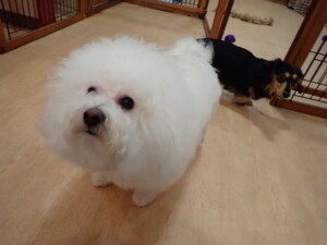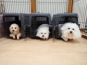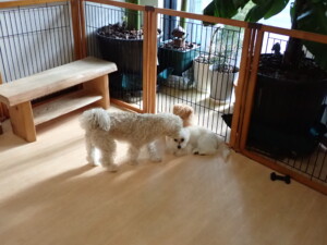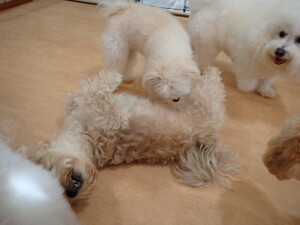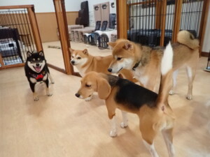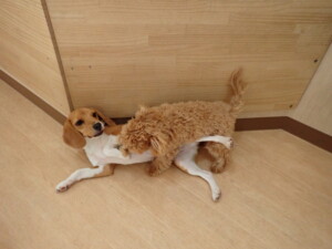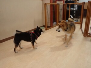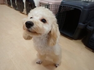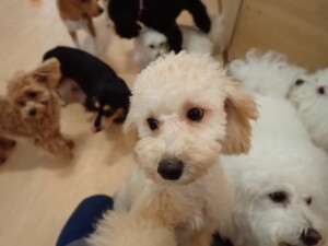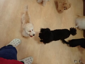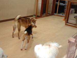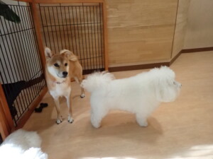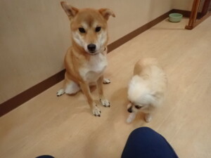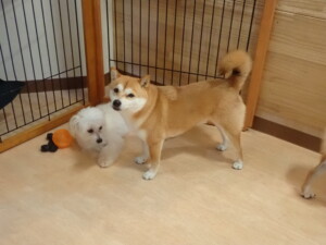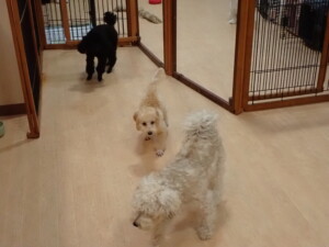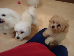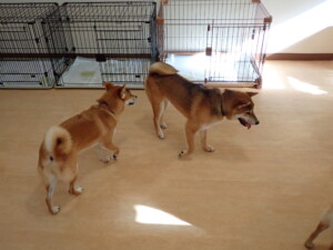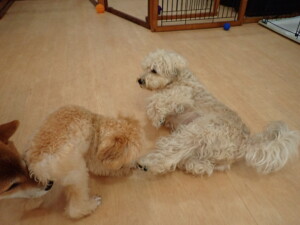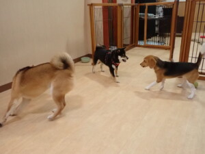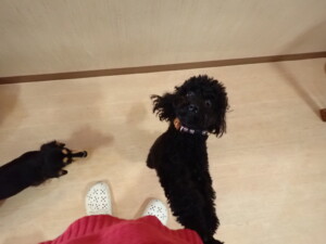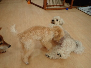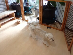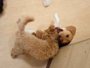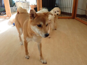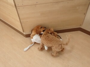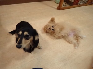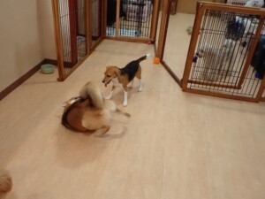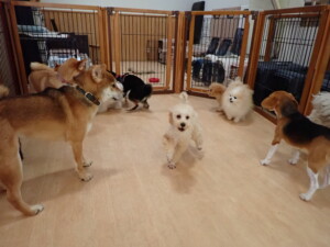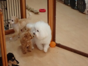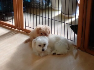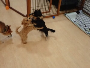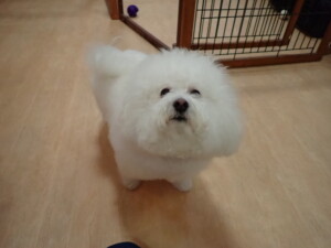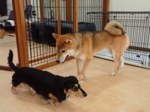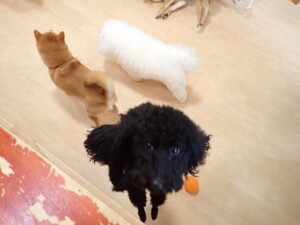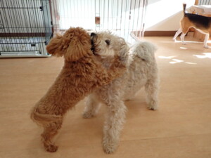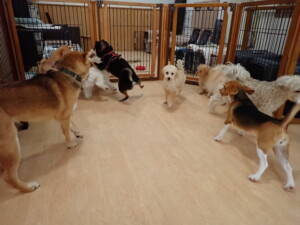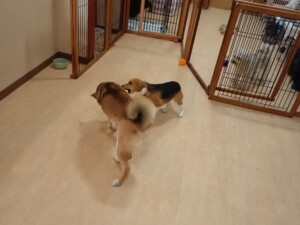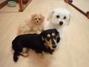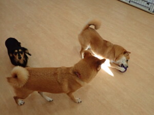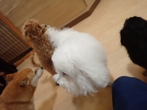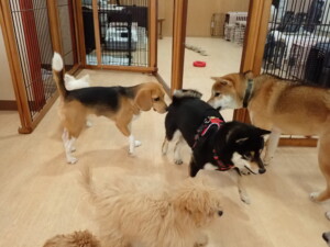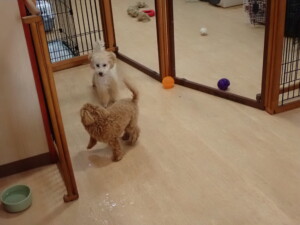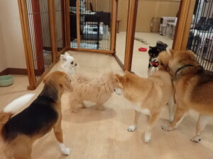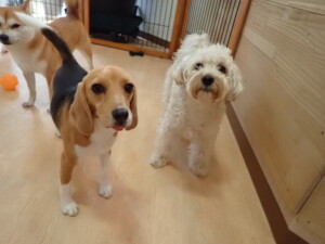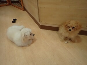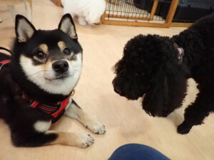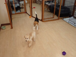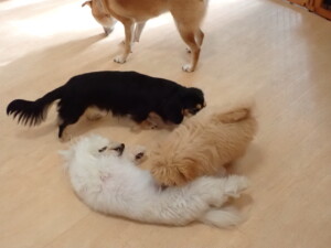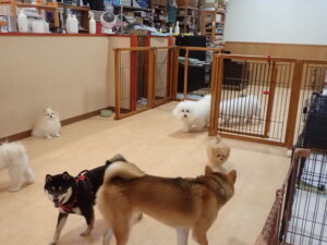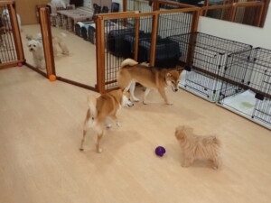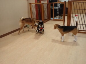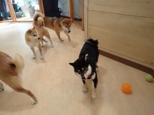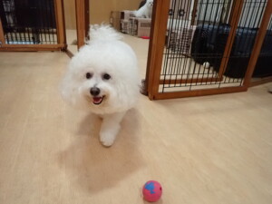 まる君、ブブ君、モコ君、アメリちゃん、ハルちゃん、こげ茶君、ミルちゃん、むぎ君、はな子ちゃん、ポコ君、スズちゃん、ぴのちゃん、ひまわり君、元気に遊んでいました。ポーちゃん、落ち着いて過ごしていました。ぴのちゃん、「お座り・「フセ」・「マテ」・「オイデ」の練習をしました。ひまわり君、「お座り・「フセ」・「マテ」の練習をしました。