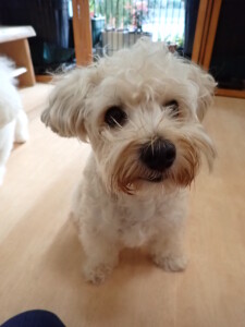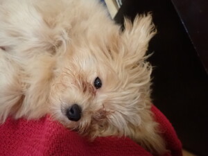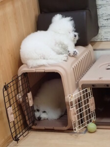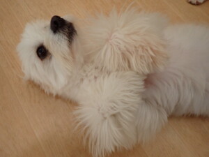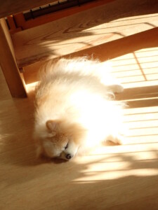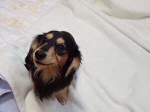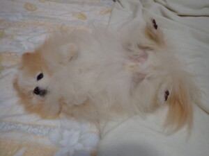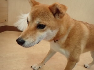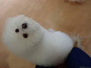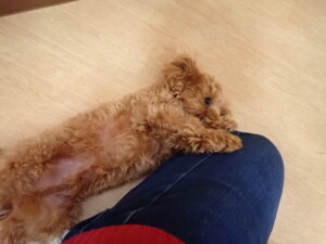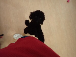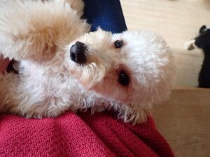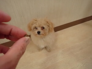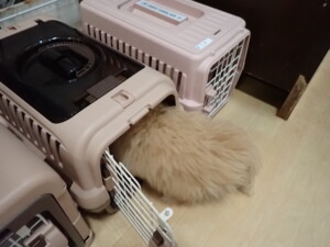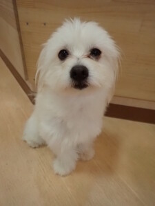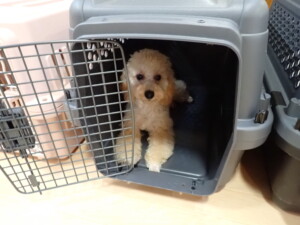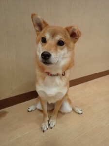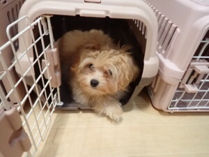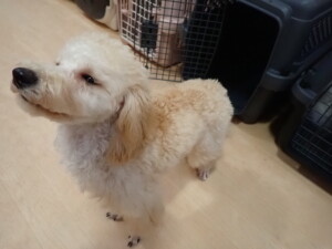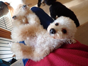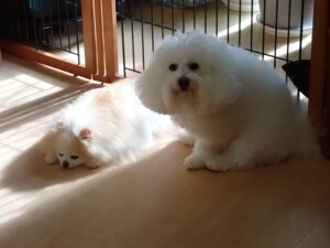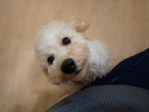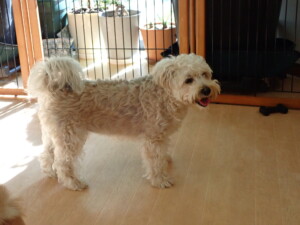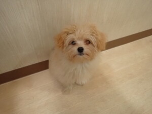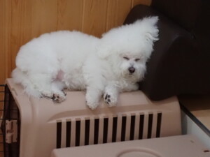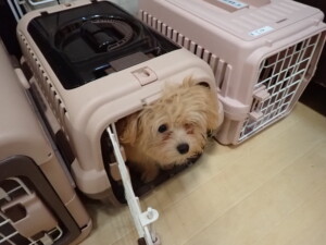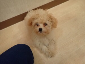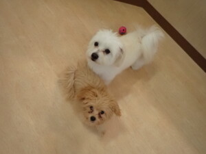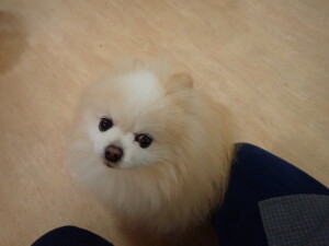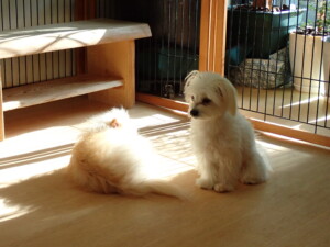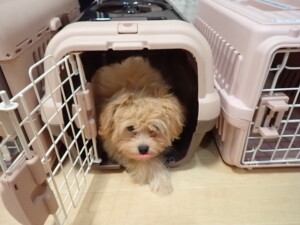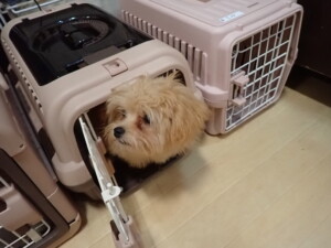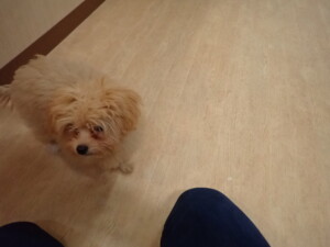 まる君、昨夜はお泊まりでした。機嫌よく過ごしていました。