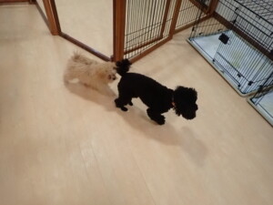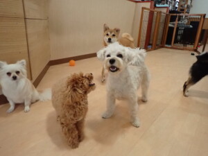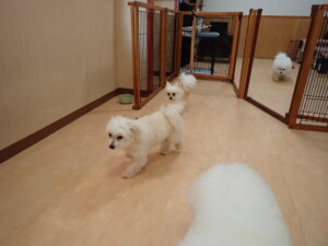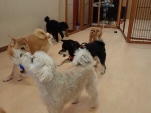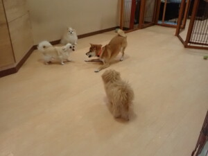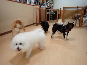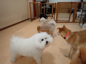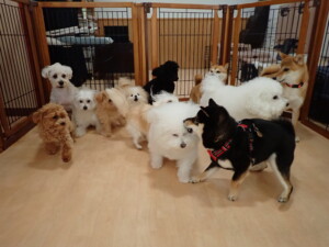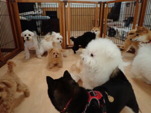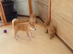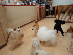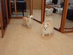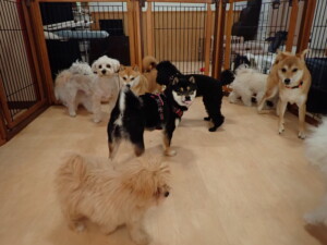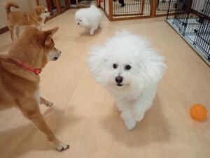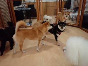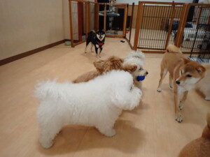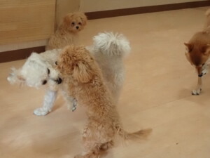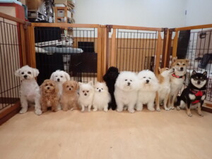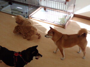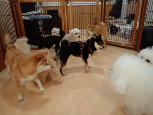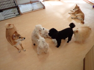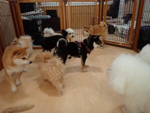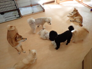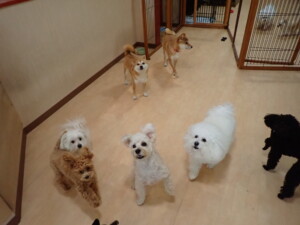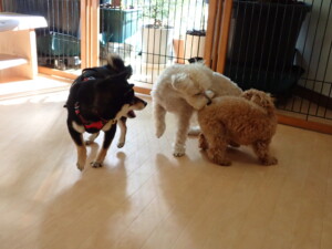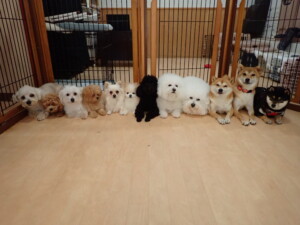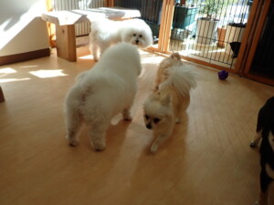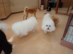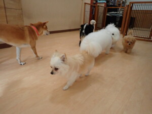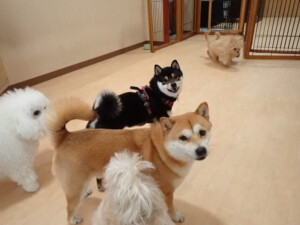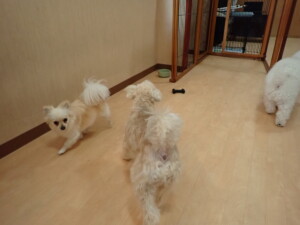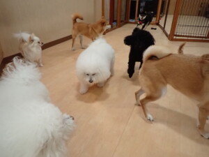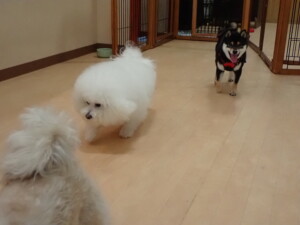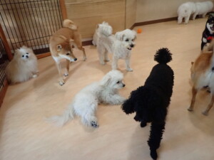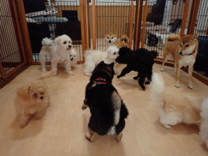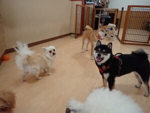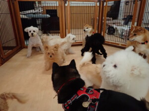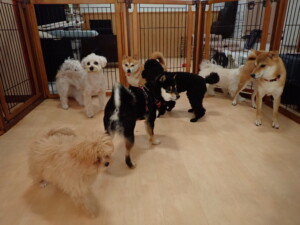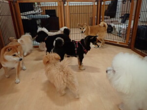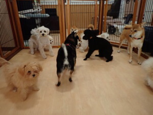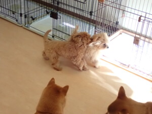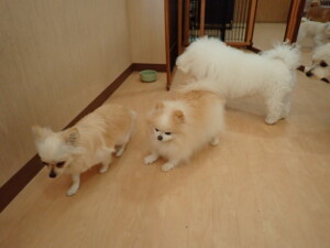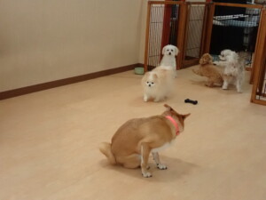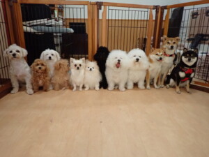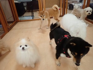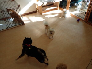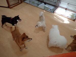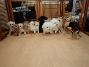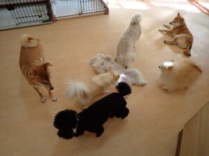 モコ君、アメリちゃん、ハルちゃん、ミルちゃん、ブブ君、ポコ君、こげ茶君、だんご君、スズちゃんぴのちゃん、元気に遊んでいました。ポーちゃん、落ち着いて過ごしていました。ぴのちゃん、「お座り・「フセ」・「マテ」・「オイデ」の練習をしました。