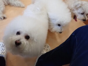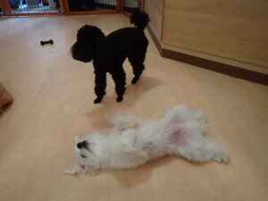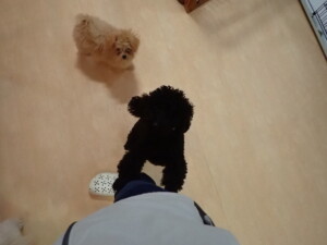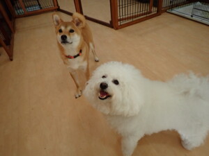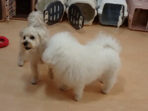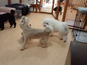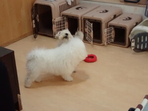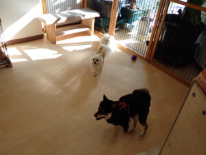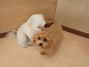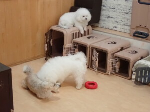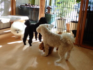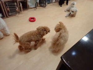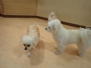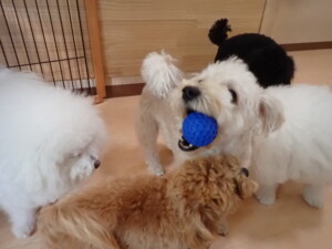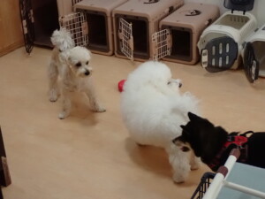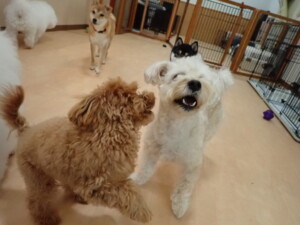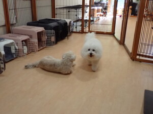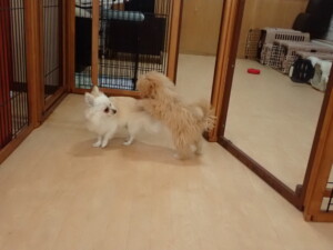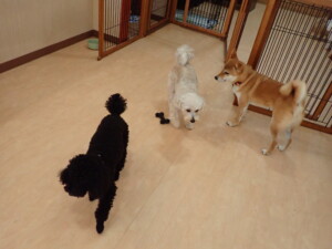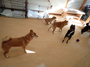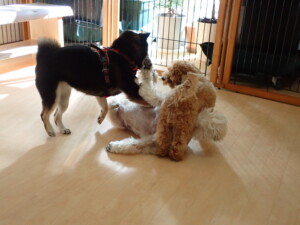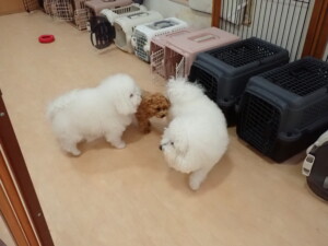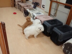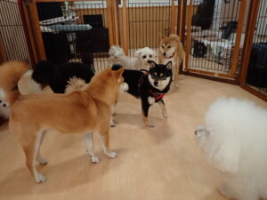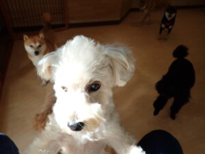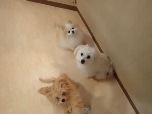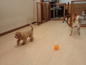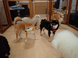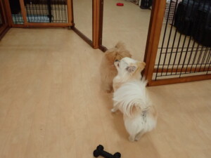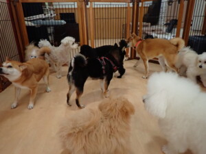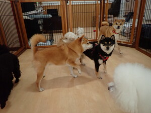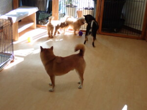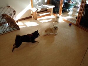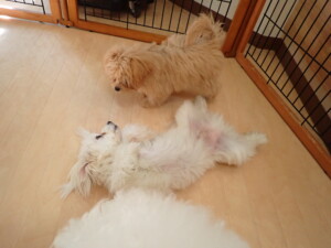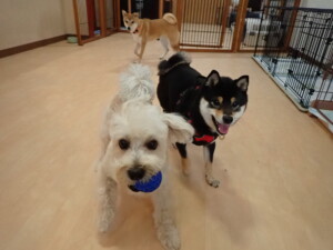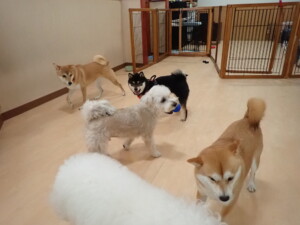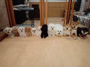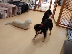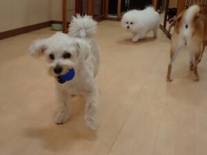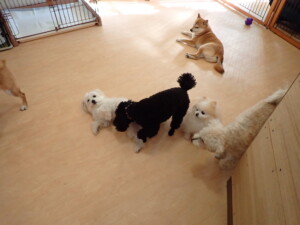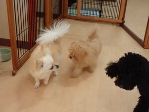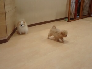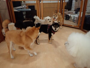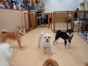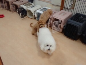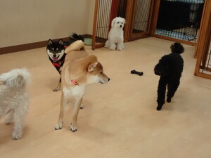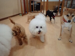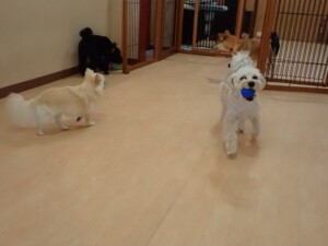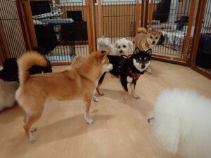モコ君、アメリちゃん、ハルちゃん、ミルちゃん、ブブ君、ポコ君、こげ茶君、だんご君、スズちゃんぴのちゃん、元気に遊んでいました。ポーちゃん、落ち着いて過ごしていました。ぴのちゃん、「お座り・「フセ」・「マテ」・「オイデ」の練習をしました。