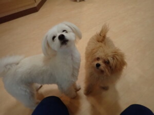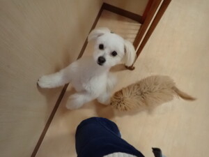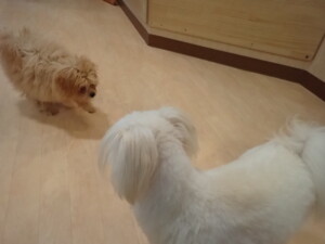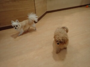 今日はモコ君、ミルちゃん、卯月ちゃんが遊びに来てくれました。そして、ぴのちゃんとアントニー君がトレーニングに来てくれました。