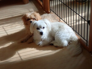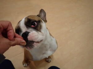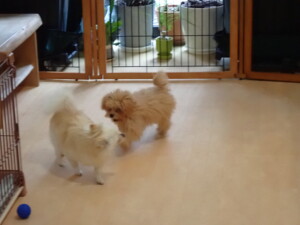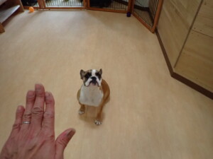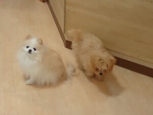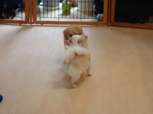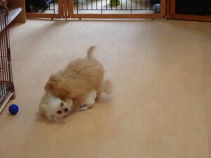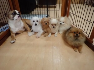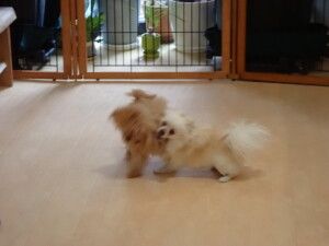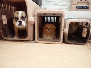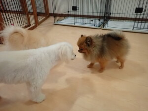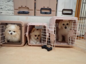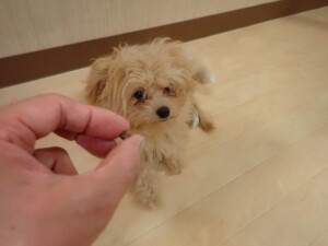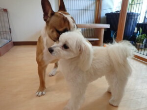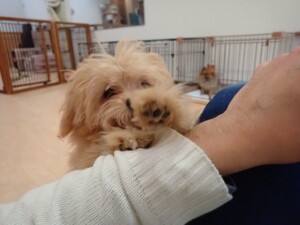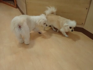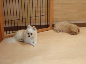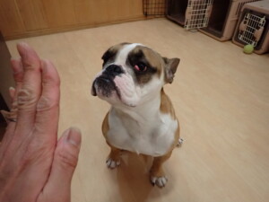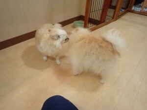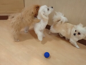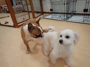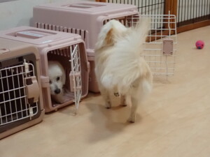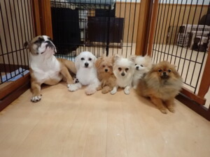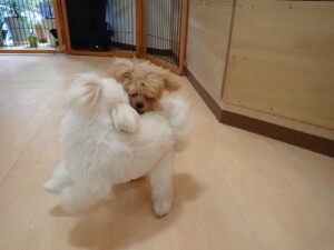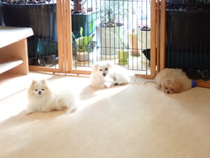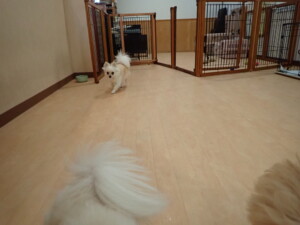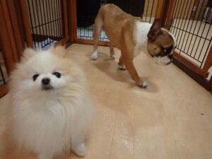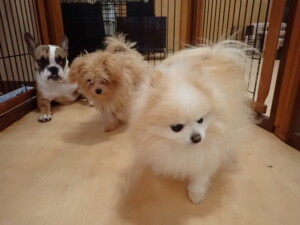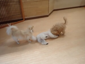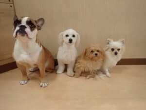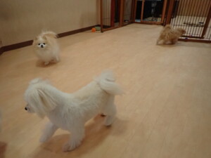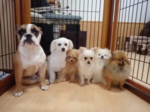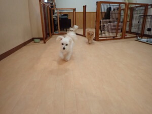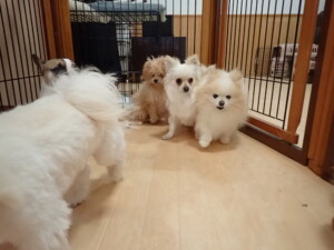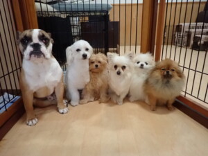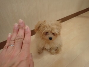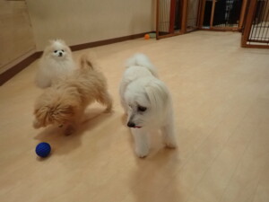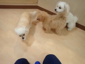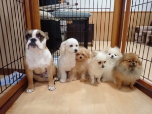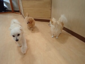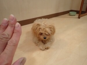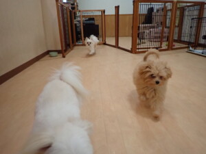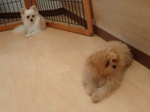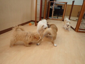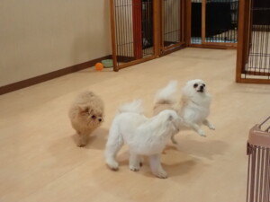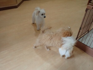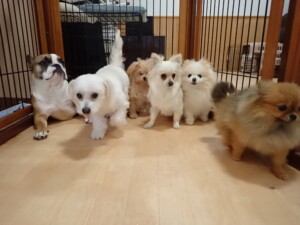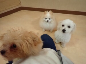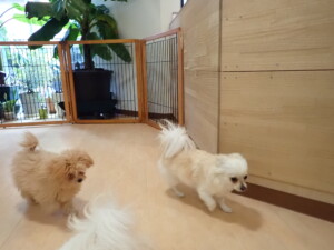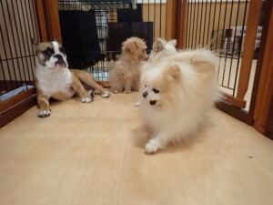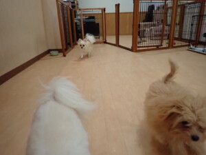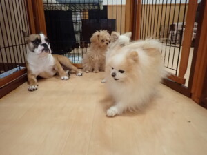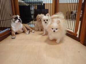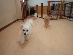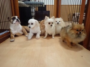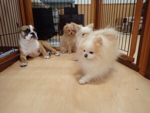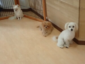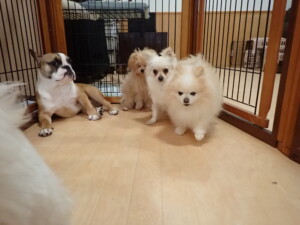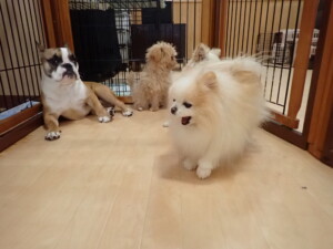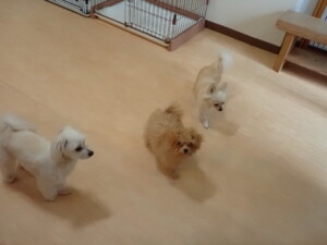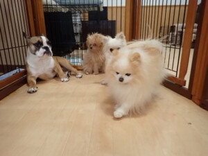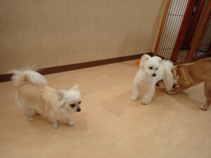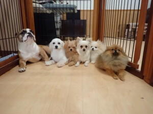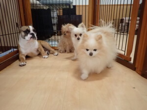 モコ君、ミルちゃん、ぴのちゃん、アントニー君、元気に遊んでいました。卯月ちゃん、落ち着いて過ごしていました。ぴのちゃん、「お座り・「フセ」・「マテ」・「オイデ」の練習をしました。アントニー君、「お座り・「フセ」・「マテ」の練習をしました。