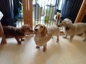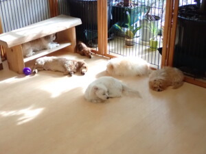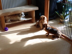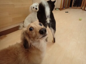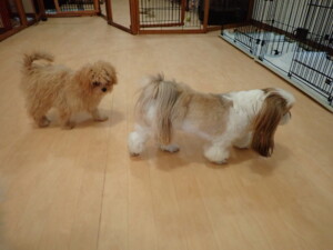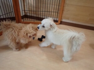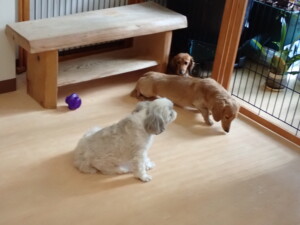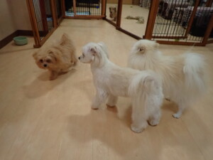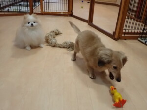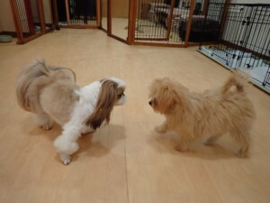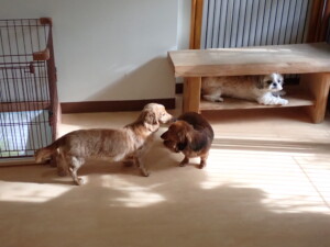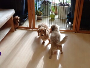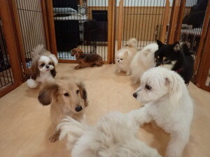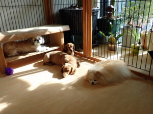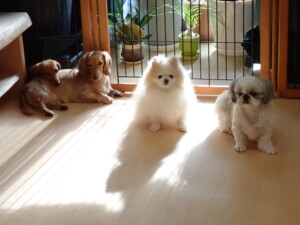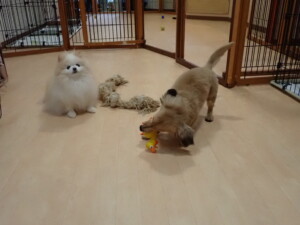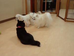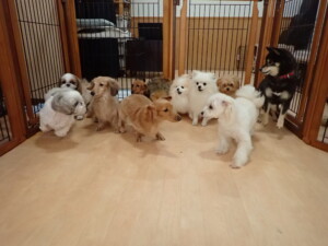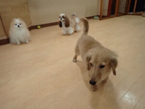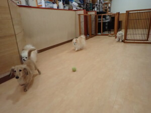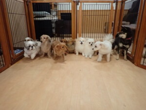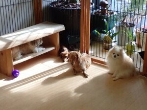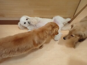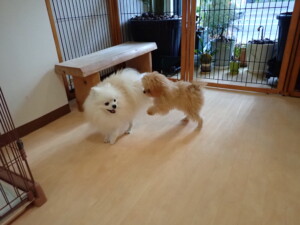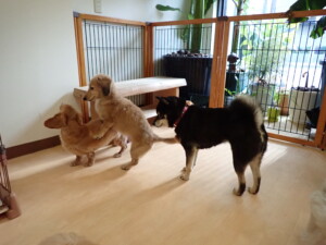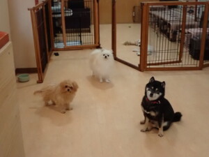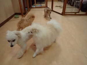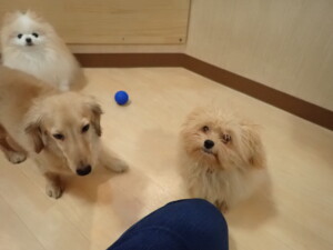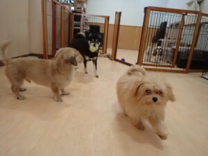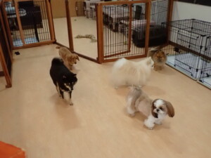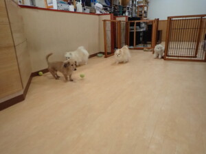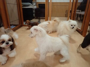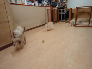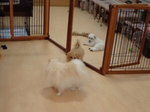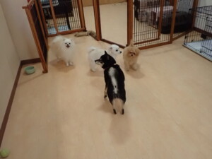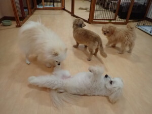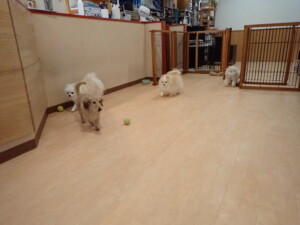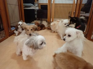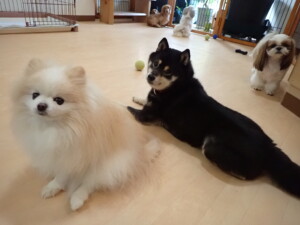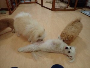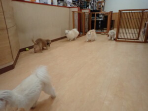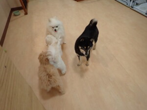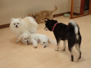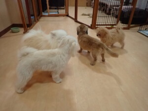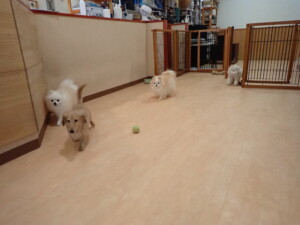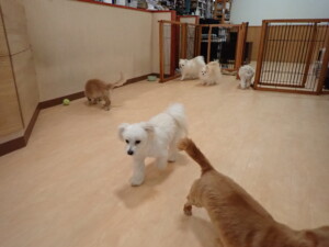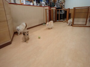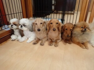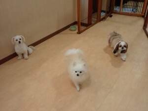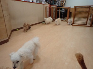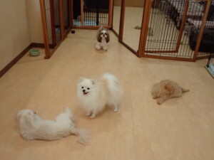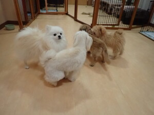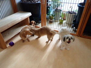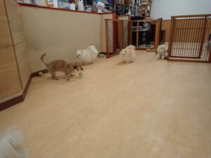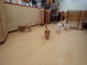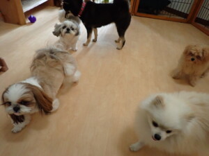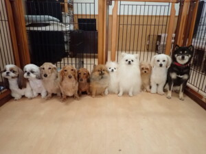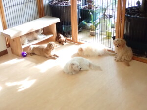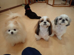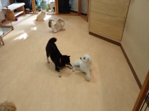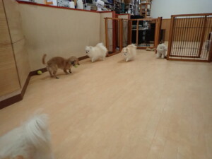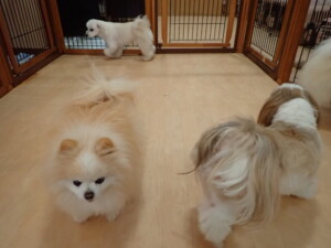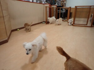 テンダー君、りん君、モコ君、三瑚君、こまちゃん、ぴのちゃん、元気に遊んでいました。あさがおちゃん、ひまわりちゃん、二瑚ちゃん、卯月ちゃん、落ち着いて過ごしていました。ぴのちゃん、「お座り・「フセ」・「マテ」・「オイデ」の練習をしました。