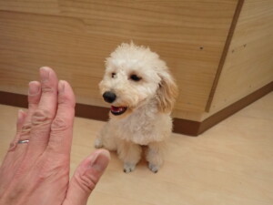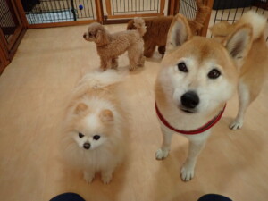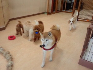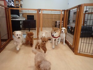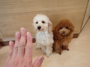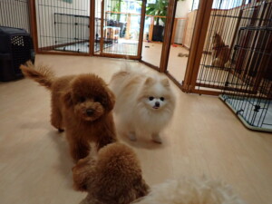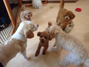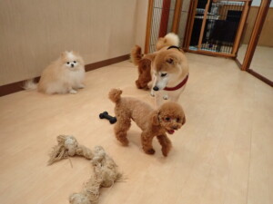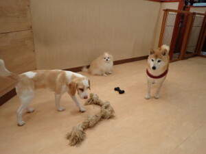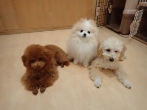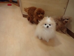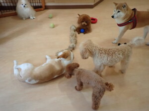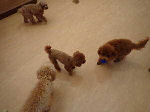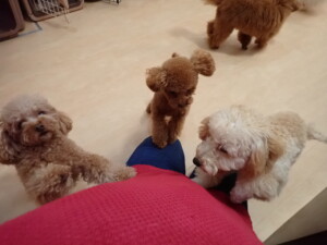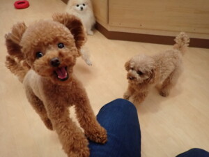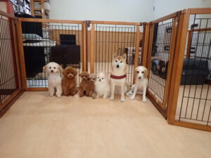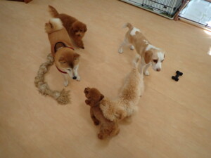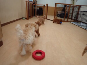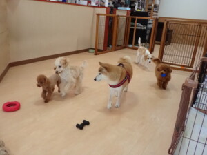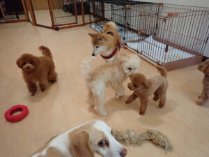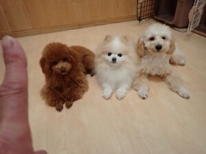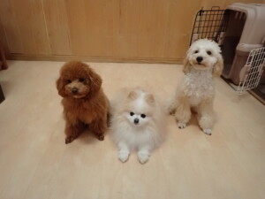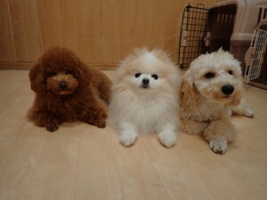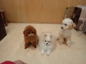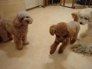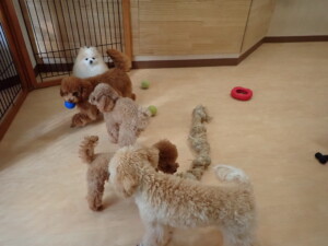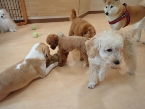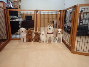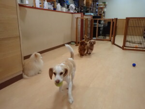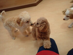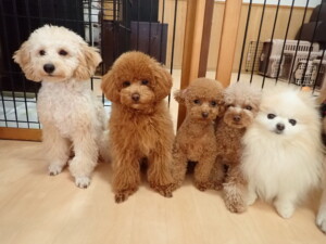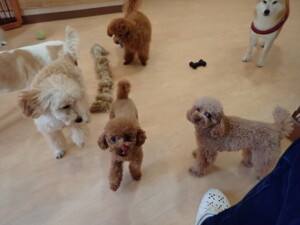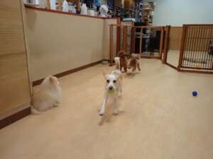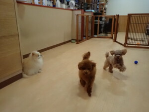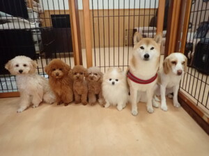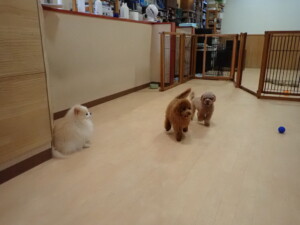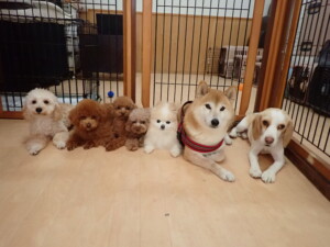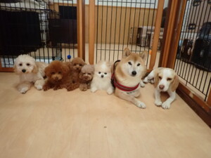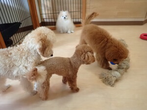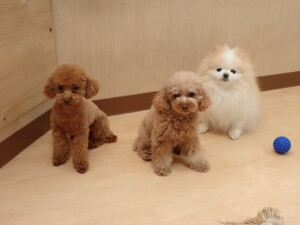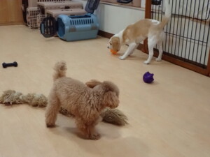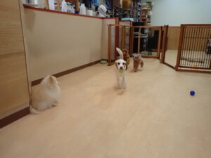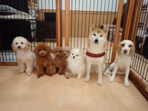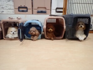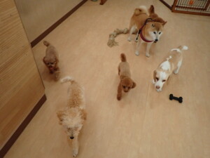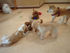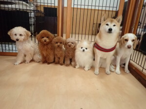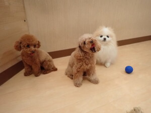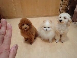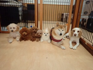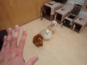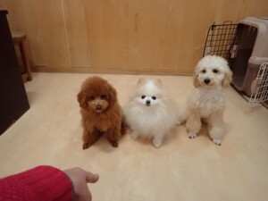 チャロちゃん、グーちゃん、たっくす君、モコ君、ひまわり君、元気に遊んでいました。こころちゃん、落ち着いて過ごしていました。モコ君とひまわり君、「お座り・「フセ」・「マテ」の練習をしました。