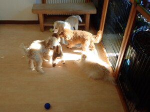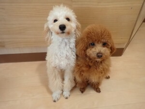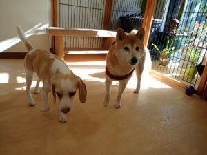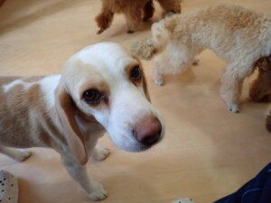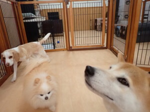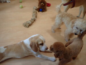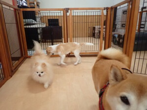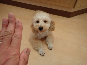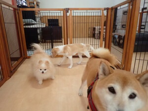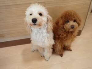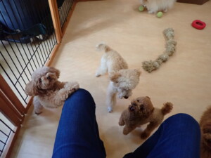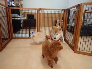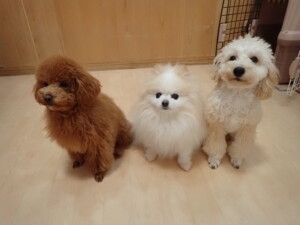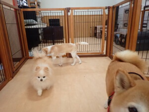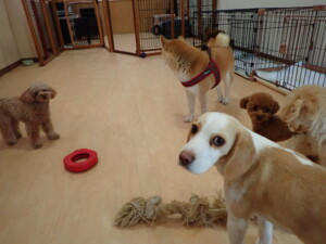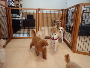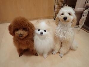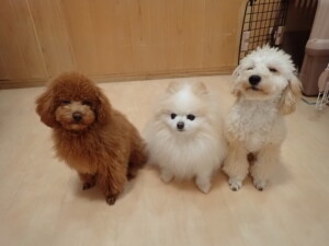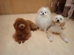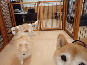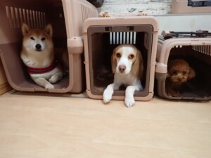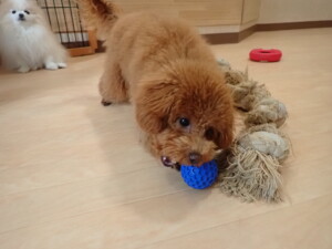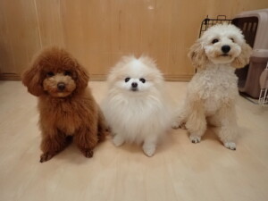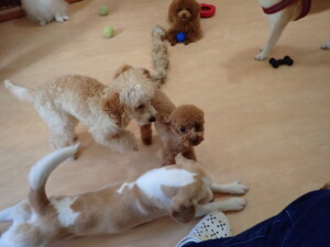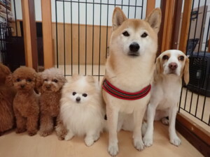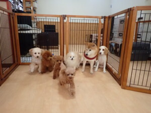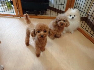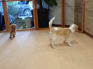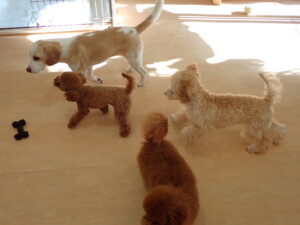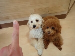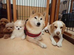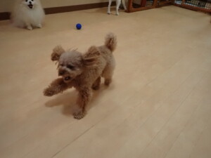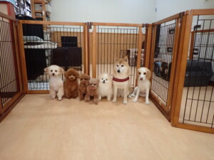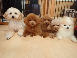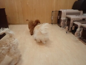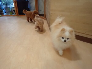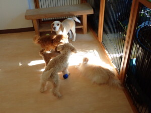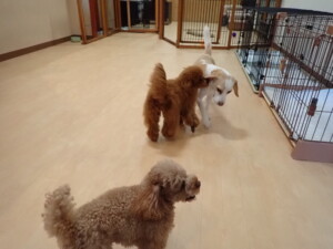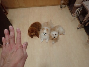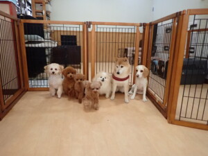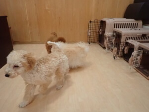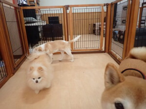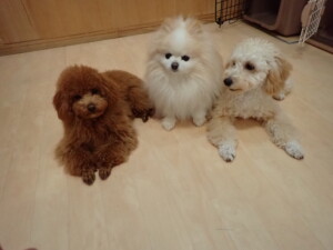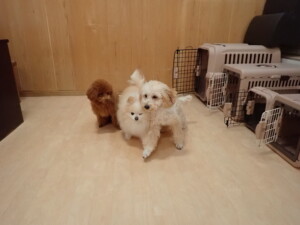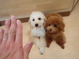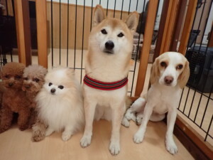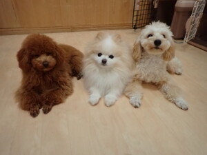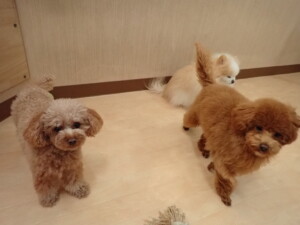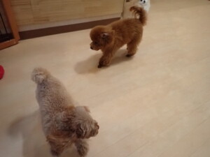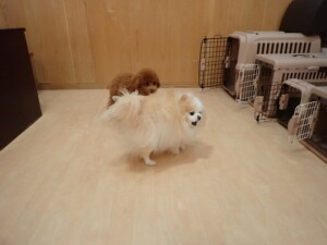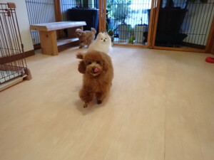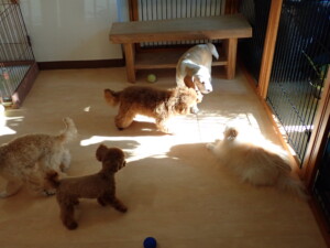 チャロちゃん、グーちゃん、たっくす君、モコ君、ひまわり君、元気に遊んでいました。こころちゃん、落ち着いて過ごしていました。モコ君とひまわり君、「お座り・「フセ」・「マテ」の練習をしました。