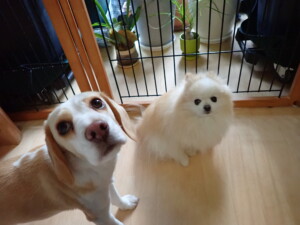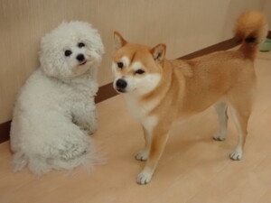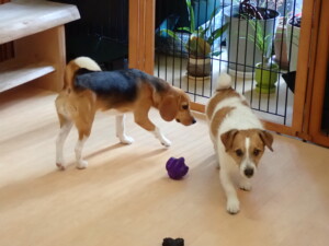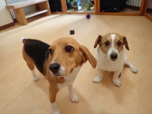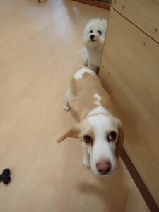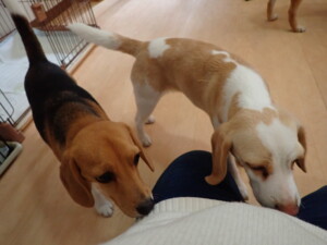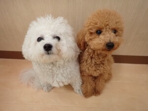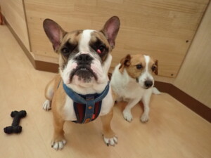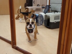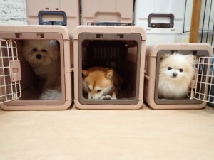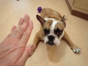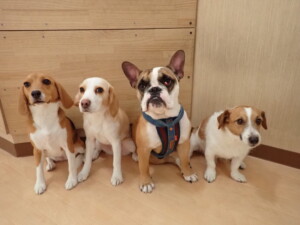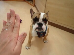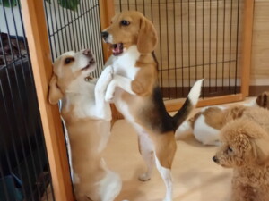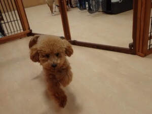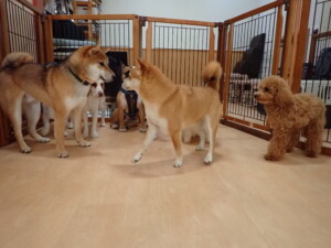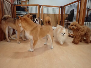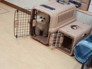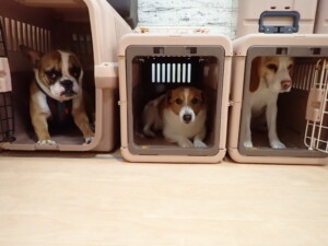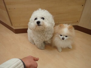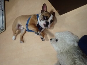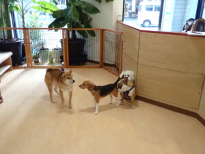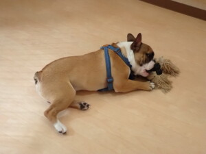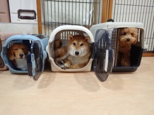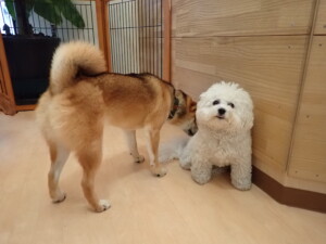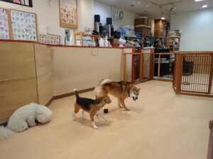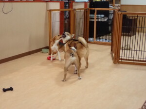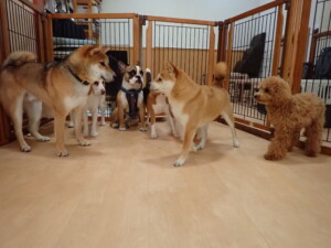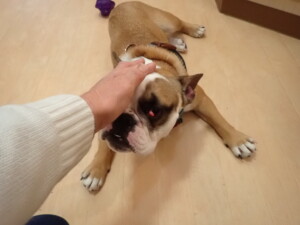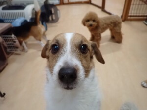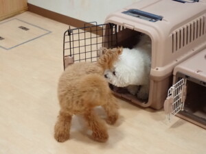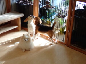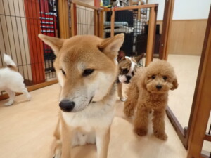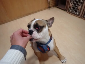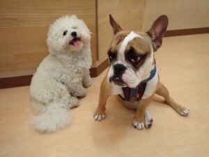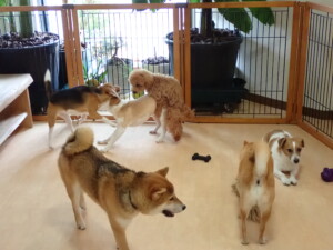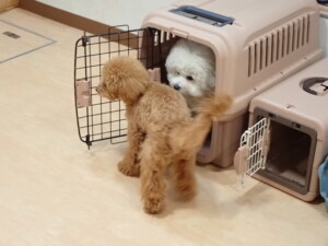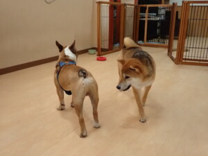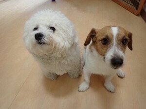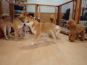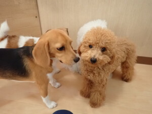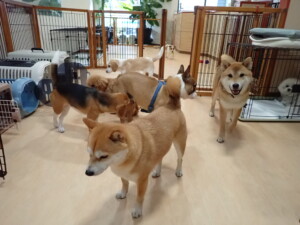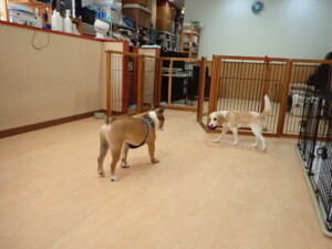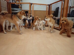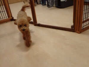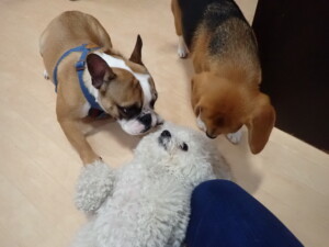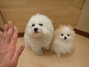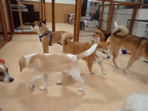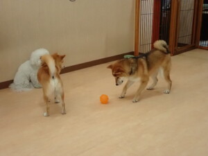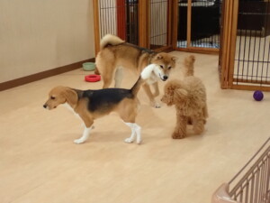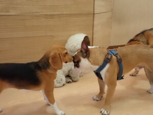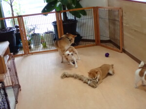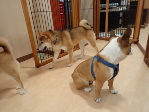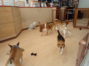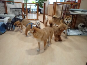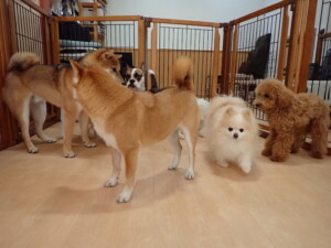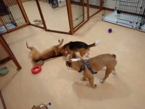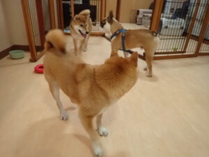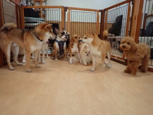 むぎ君、グーちゃん、寛大君、はな子ちゃん、だんご君、メリィちゃん、アントニー君、元気に遊んでいました。ボヌ君、落ち着いて過ごしていました。アントニー君とボヌ君、「お座り・「フセ」・「マテ」の練習をしました。
