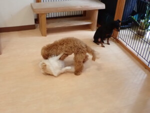 チャロちゃん、りん君、もっち君、ミルちゃん、メリィちゃん、まる君、元気に遊んでいました。ピピリーニちゃんと卯月ちゃん、落ち着いて過ごしていました。
