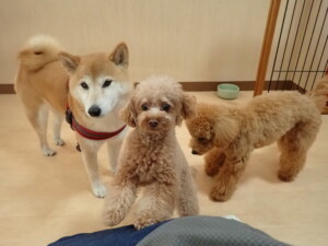 今日はチャロちゃん、グーちゃん、こころちゃん、メリィちゃんが遊びに来てくれました。そして、トイ君がトレーニングに来てくれました。