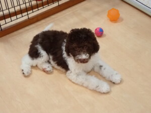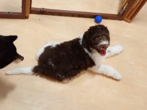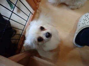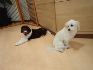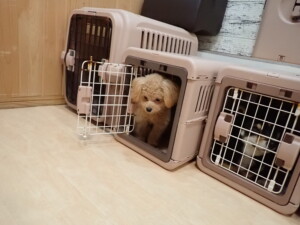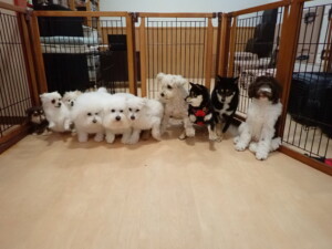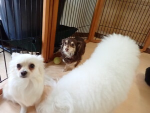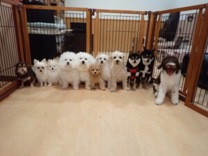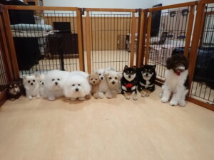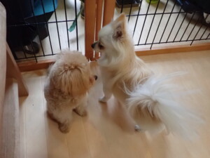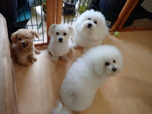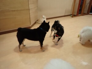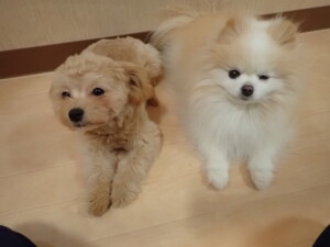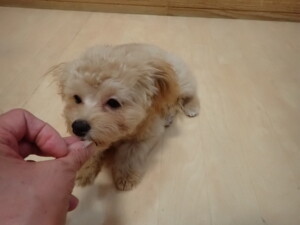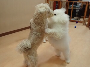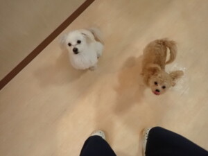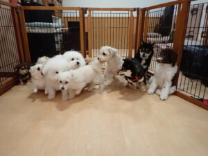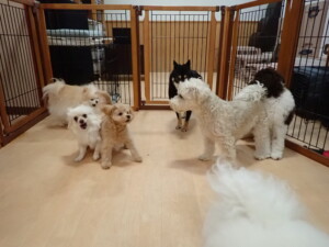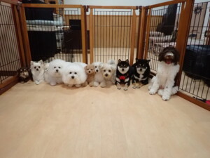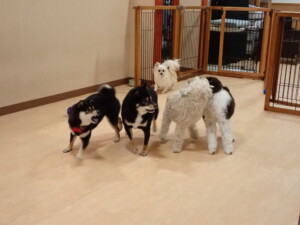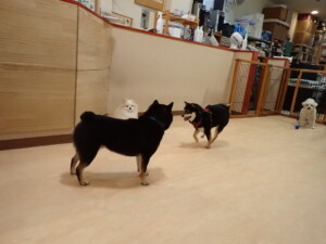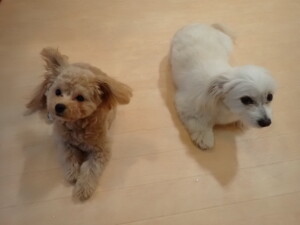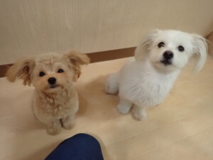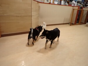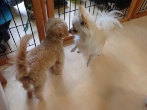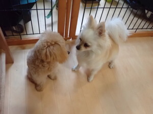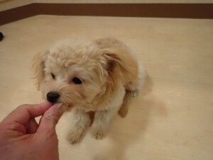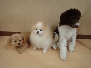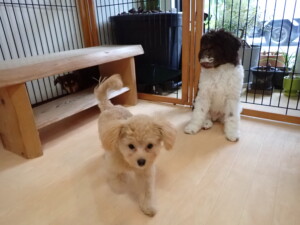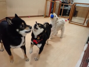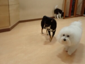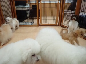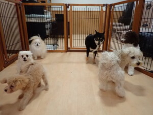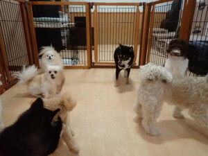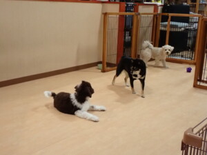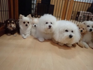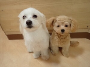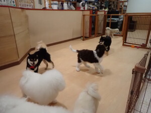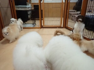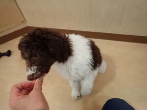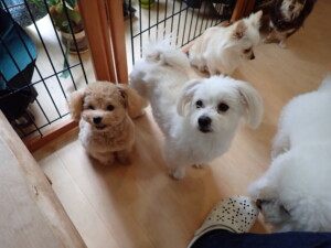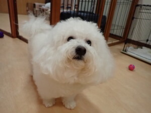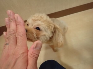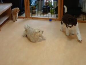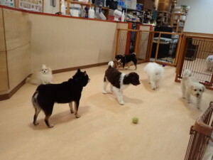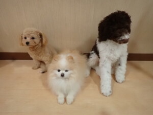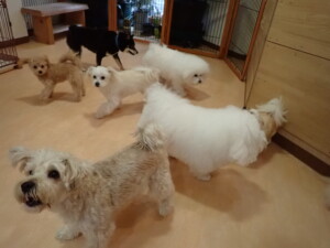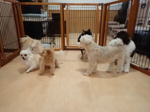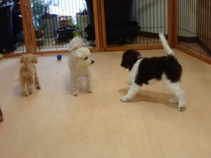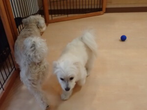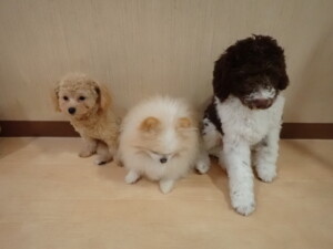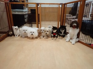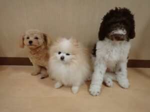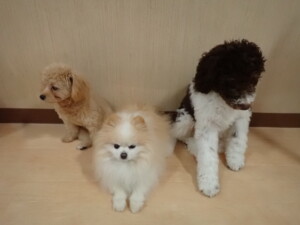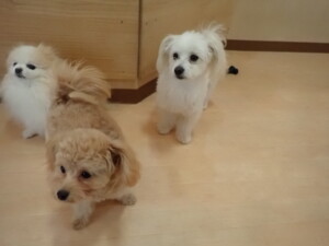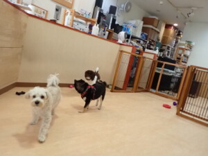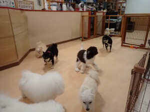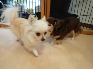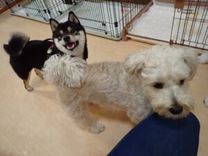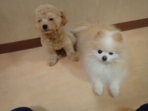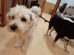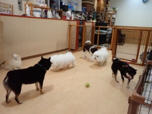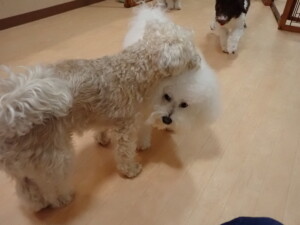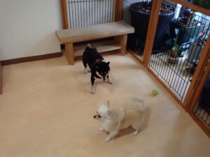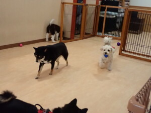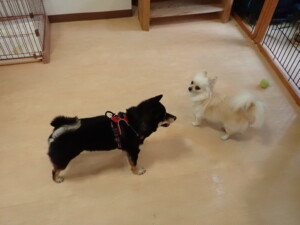 モコ君、ブブ君、ミルちゃん、こげ茶君、もっち君、スズちゃん、ぴのちゃん、トイ君、元気に遊んでいました。ポーちゃんと紅ちゃん、落ち着いて過ごしていました。ぴのちゃん、「お座り・「フセ」・「マテ」・「オイデ」の練習をしました。トイ君、「お座り」・「マテ」の練習をしました。ぴのちゃん、今日でトレーニング卒業です。