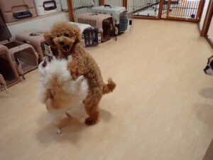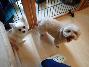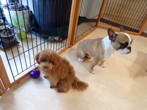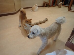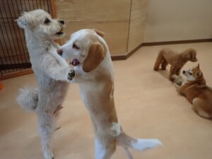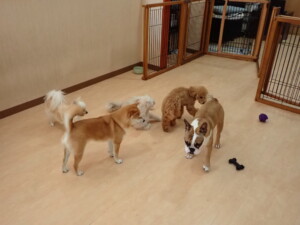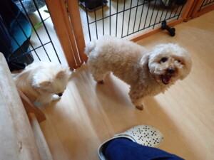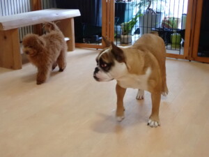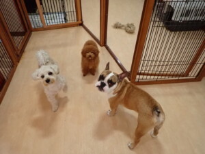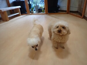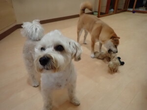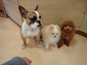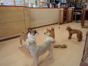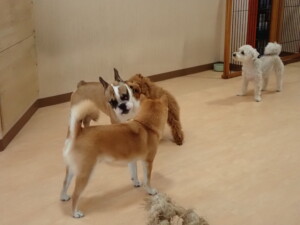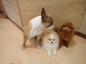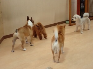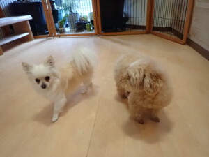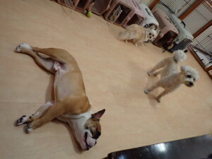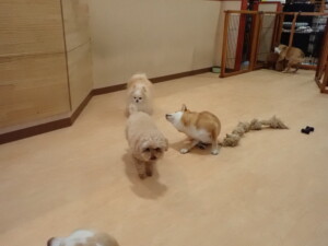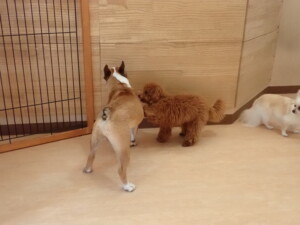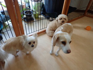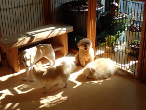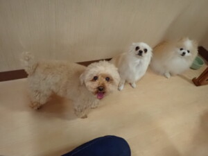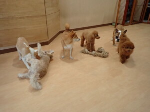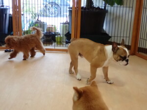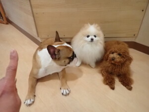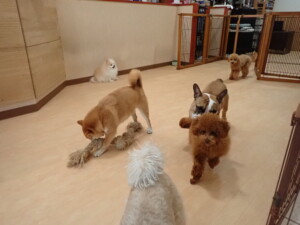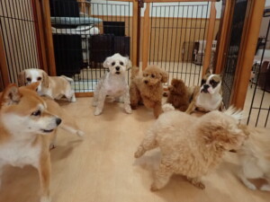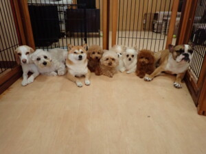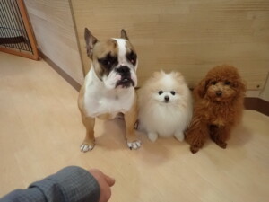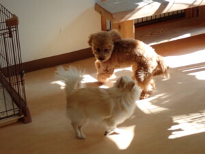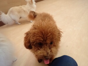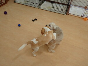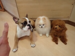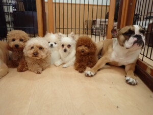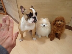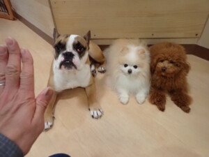 さくらこちゃん、落ち着いて過ごしていました。グーちゃん、ミルちゃん、だんご君、メリィちゃん、こげ茶君、アントニー君、モコ君、元気に遊んでいました。アントニー君、「お座り・「フセ」・「マテ」・「オイデ」の練習をしました。モコ君、「お座り・「フセ」・「マテ」の練習をしました。