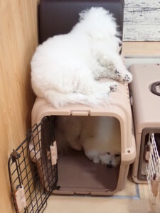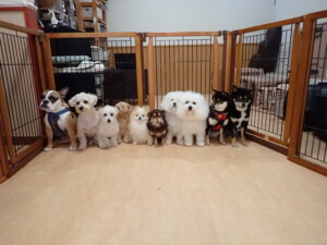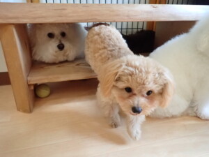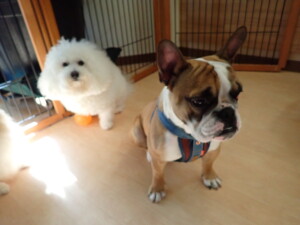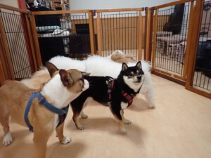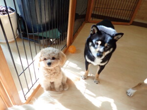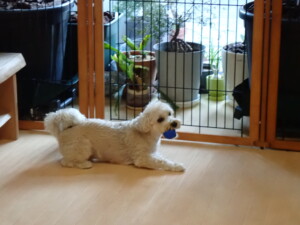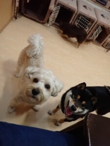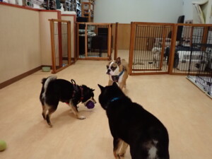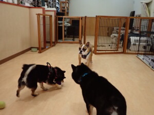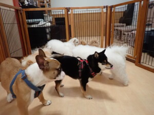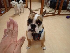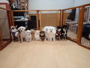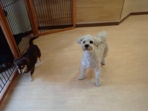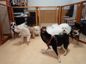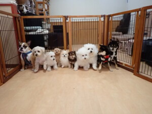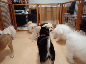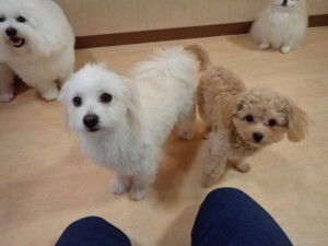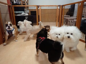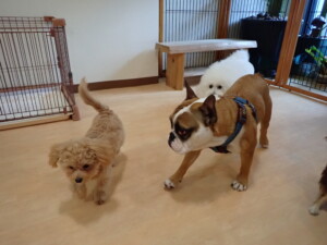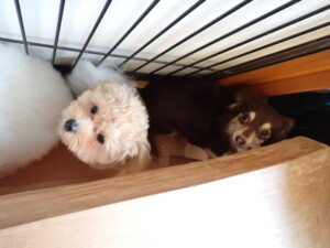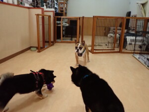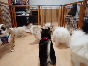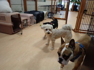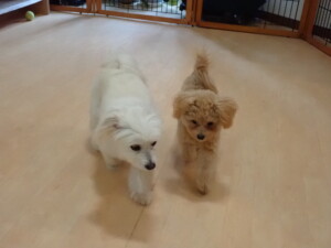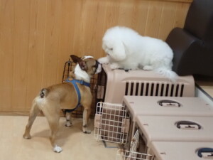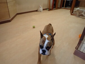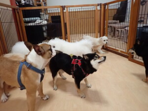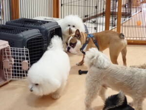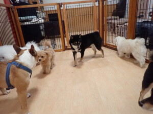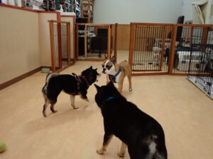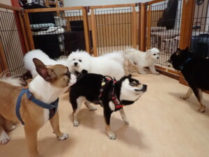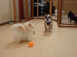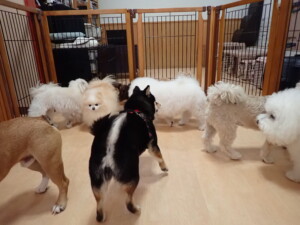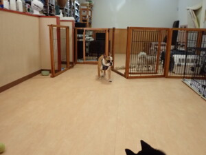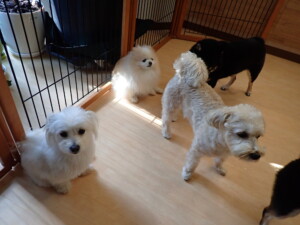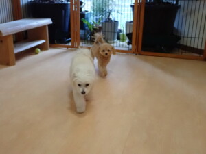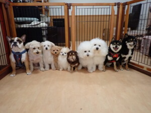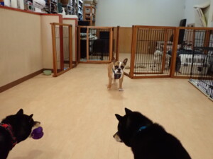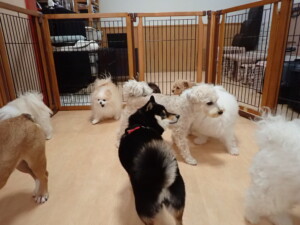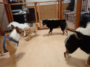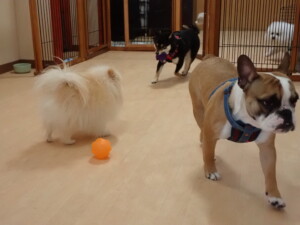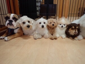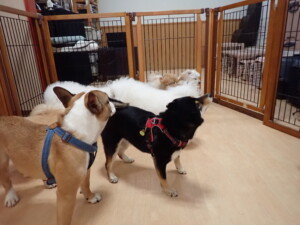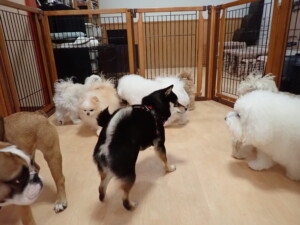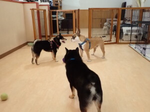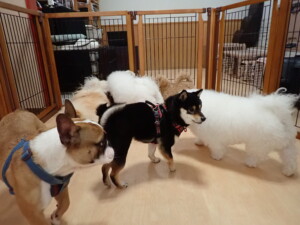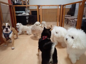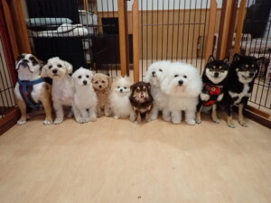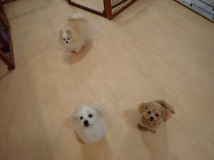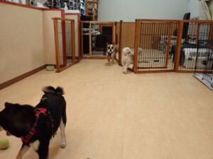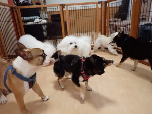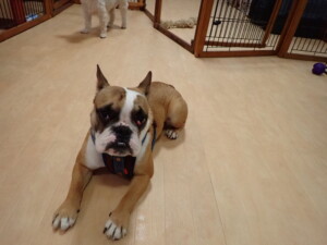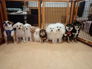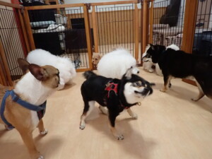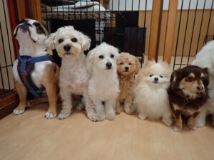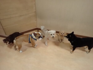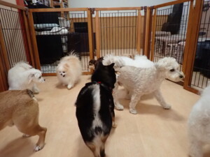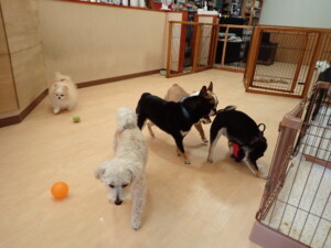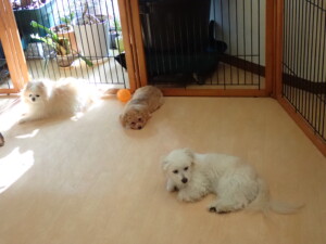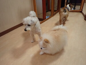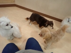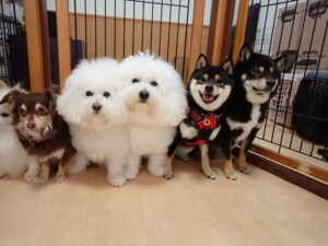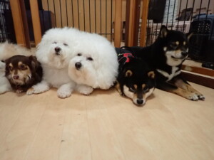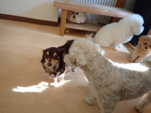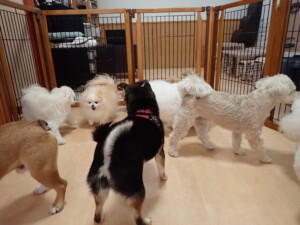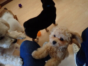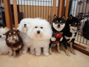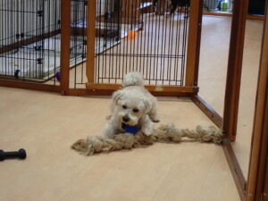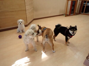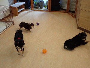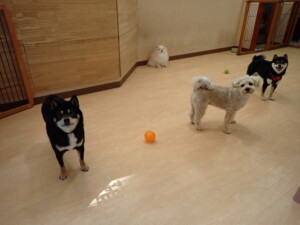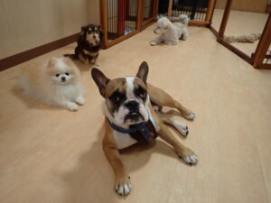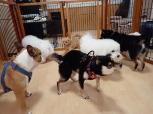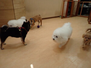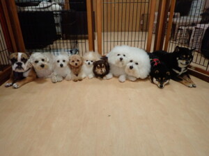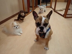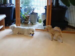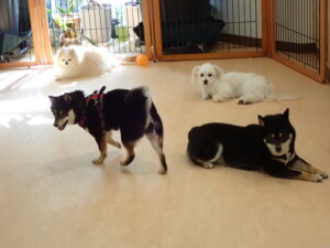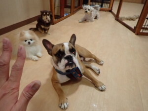 モコ君、ぴのちゃん、こげ茶君、ブブ君、もっち君、スズちゃん、アントニー君、元気に遊んでいました。紅ちゃん、ポーちゃん、落ち着いて過ごしていました。アントニー君、「お座り・「フセ」・「マテ」・「オイデ」の練習をしました。