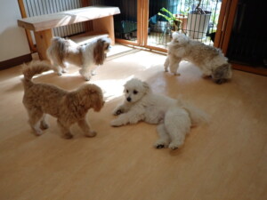 モコ君、ぴのちゃん、ふじまる君、ミルちゃん、寛大君、元気に遊んでいました。あさがおちゃん、ひまわりちゃん、卯月ちゃん落ち着いて過ごしていました。