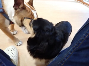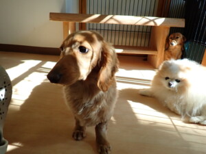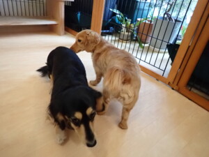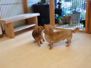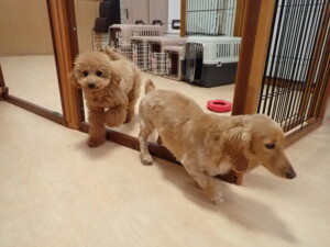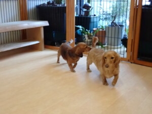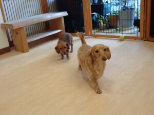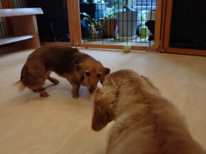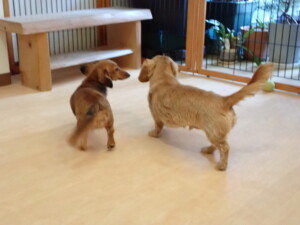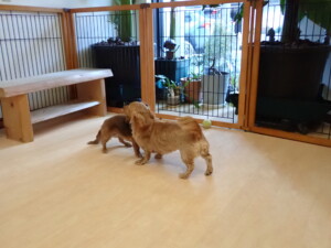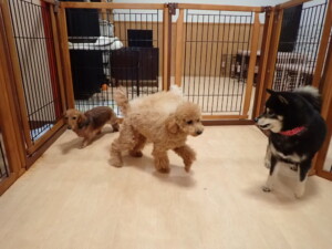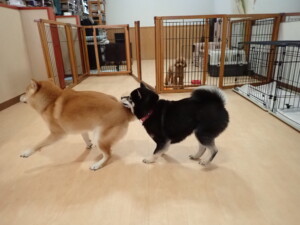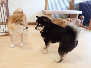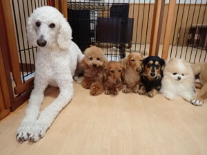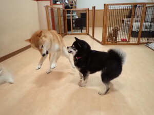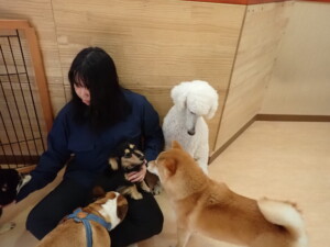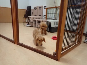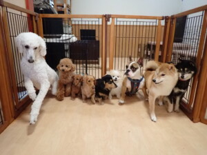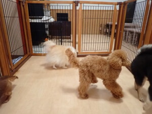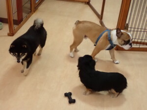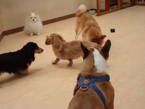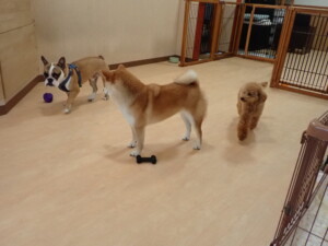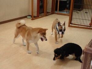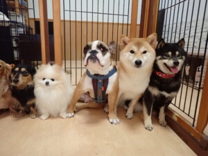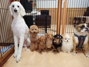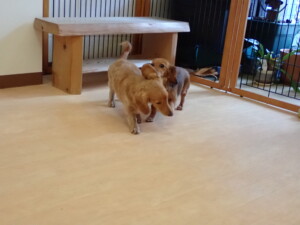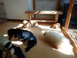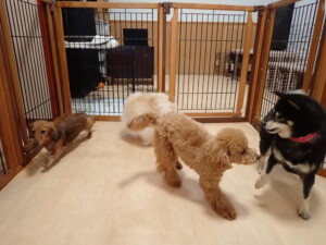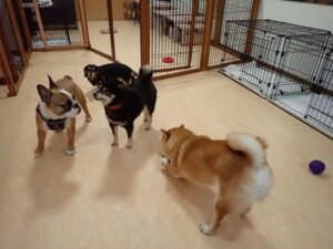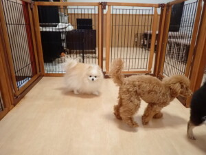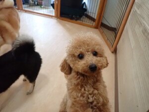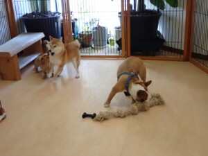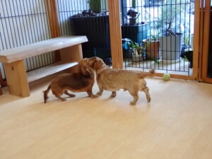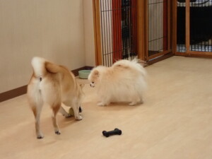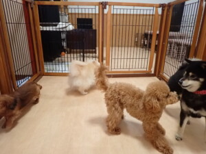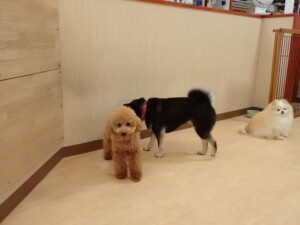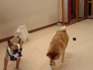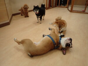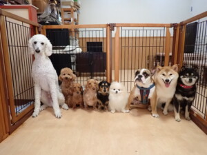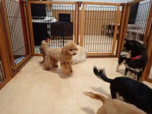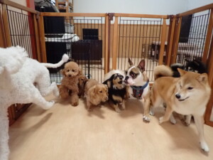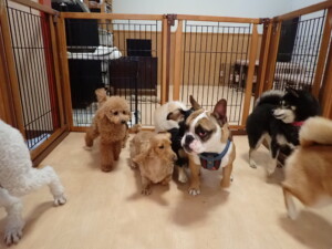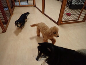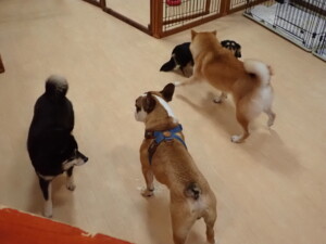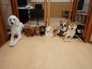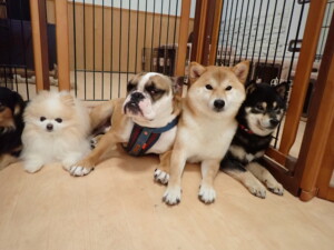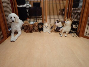 ふじまる君、三瑚君、こまちゃん、まる君、あずきちゃん、メリィちゃん、アントニー君、元気に遊んでいました。二瑚ちゃん、落ち着いて過ごしていました。アントニー君、「お座り・「フセ」・「マテ」・「オイデ」と「フセ」→「お座り」の練習をしました。